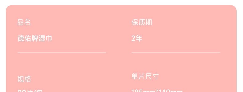 商品名称:德佑(Deeyeo)桃叶款婴幼儿手口湿巾 80抽*5包