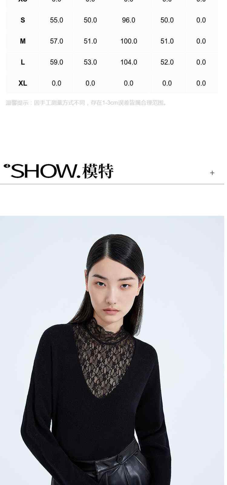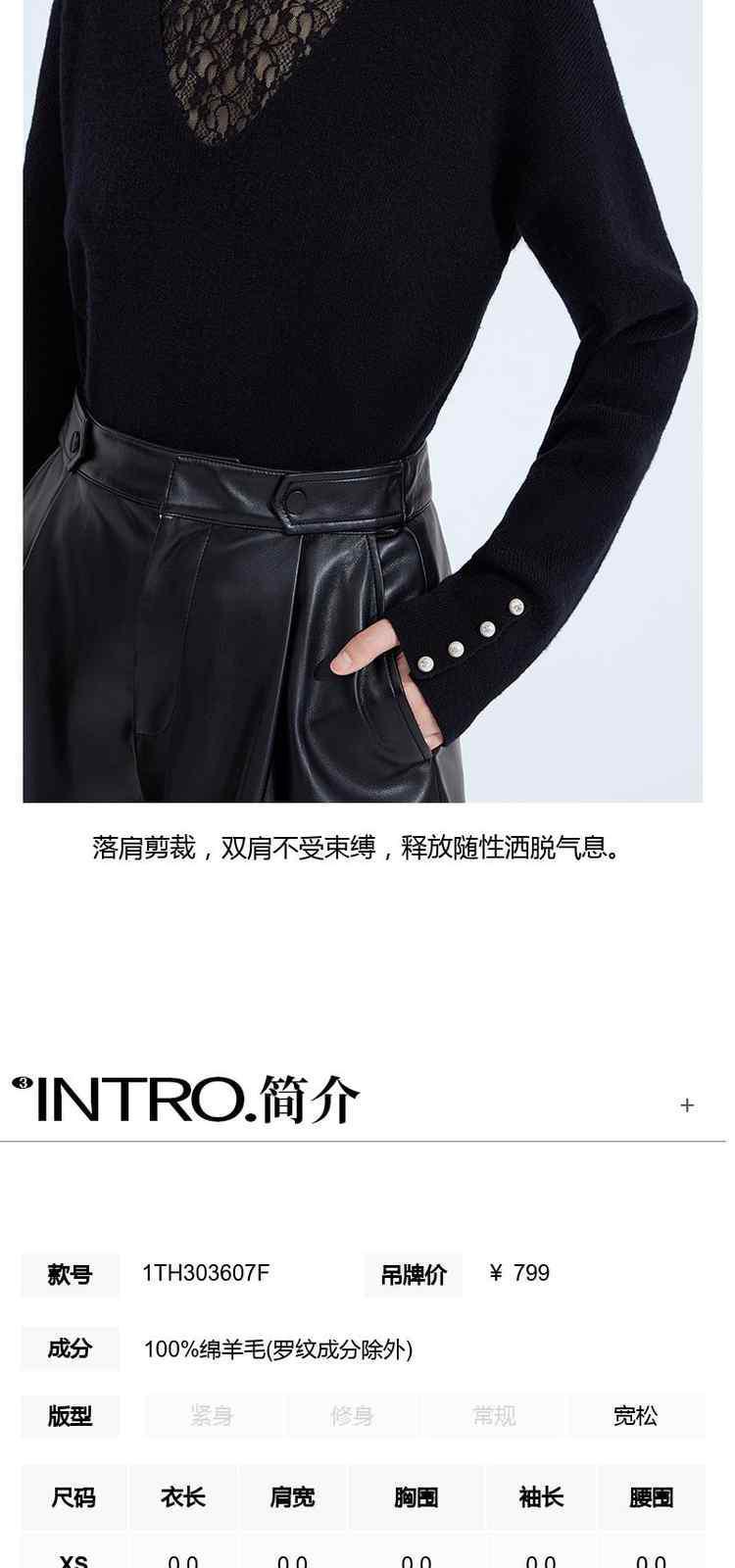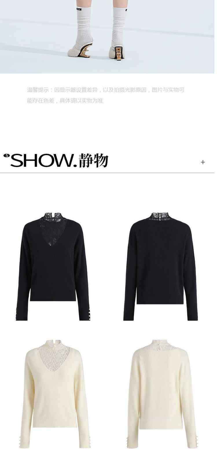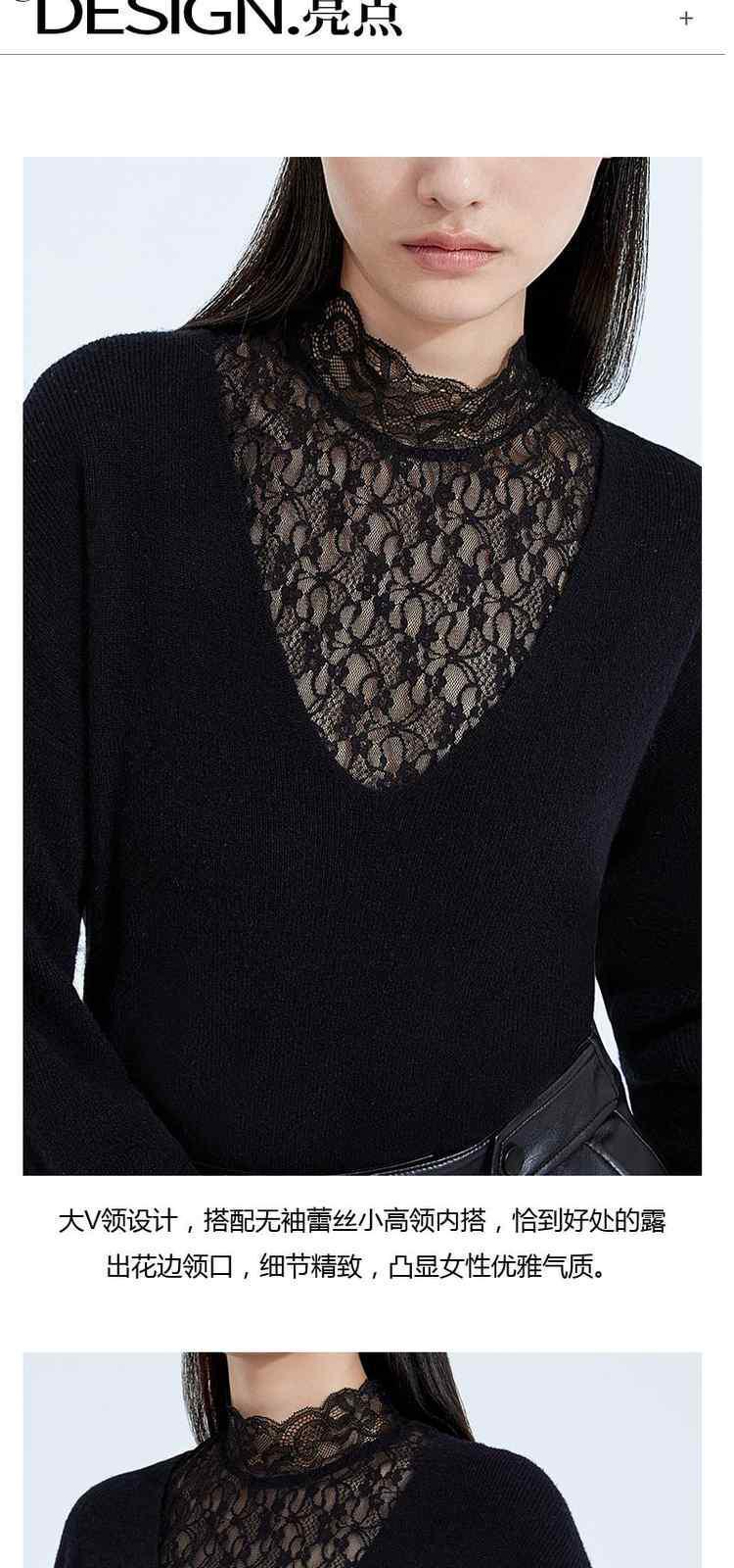 商品名称:黑标系列 春装蕾丝内搭慵懒风100%纯羊毛毛衣女 167503
