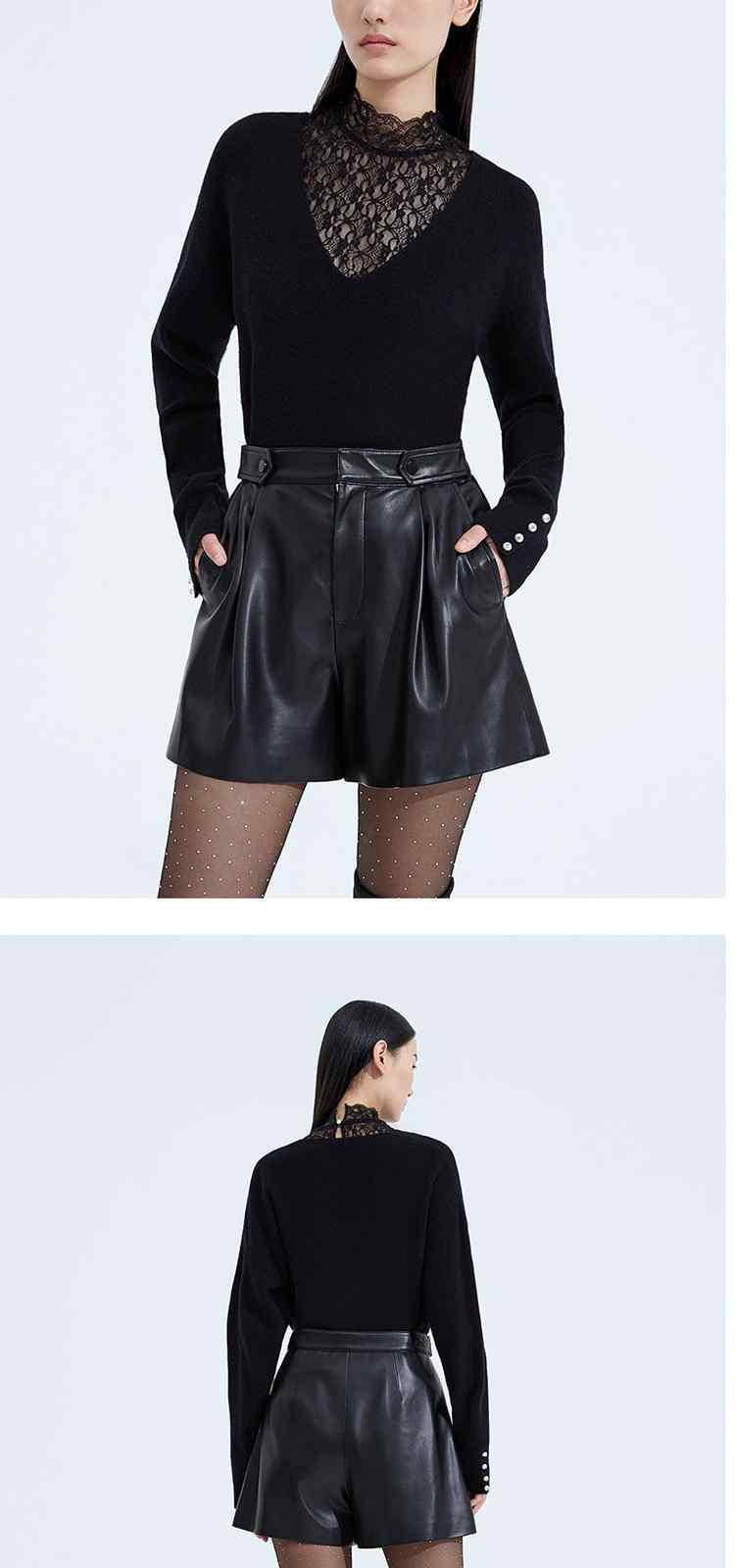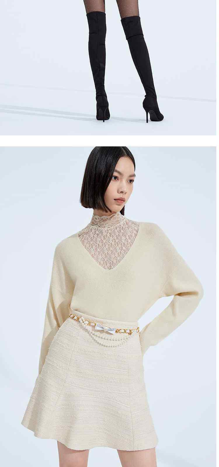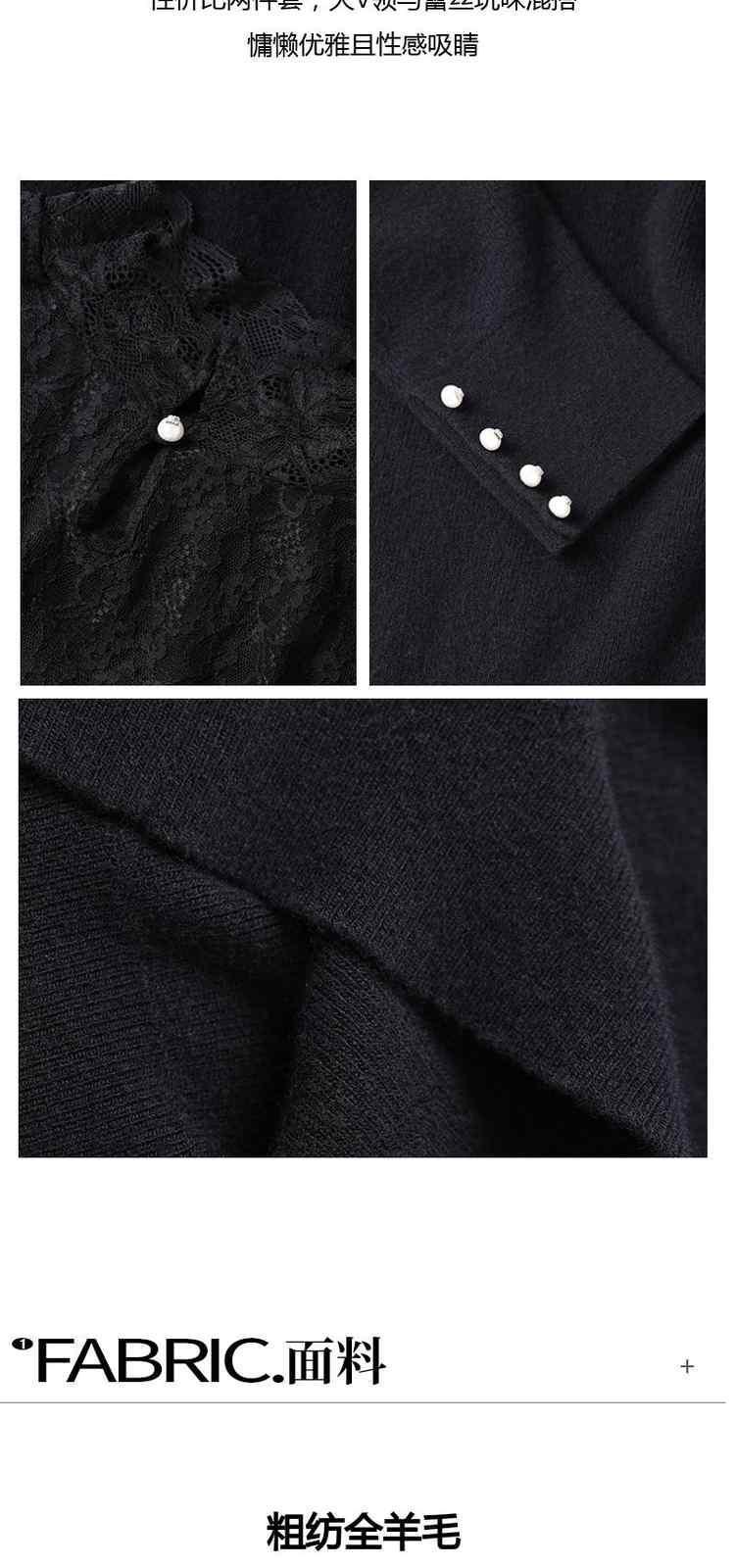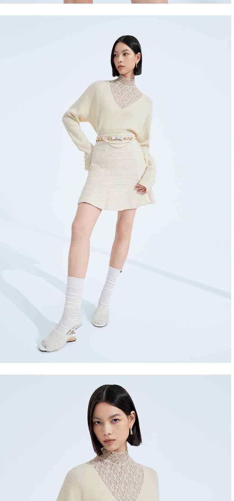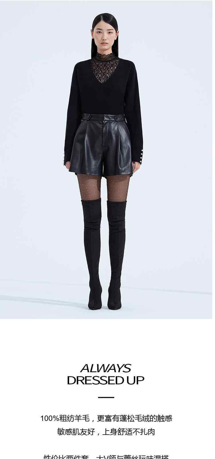 商品名称:黑标系列 春装蕾丝内搭慵懒风100%纯羊毛毛衣女 167503