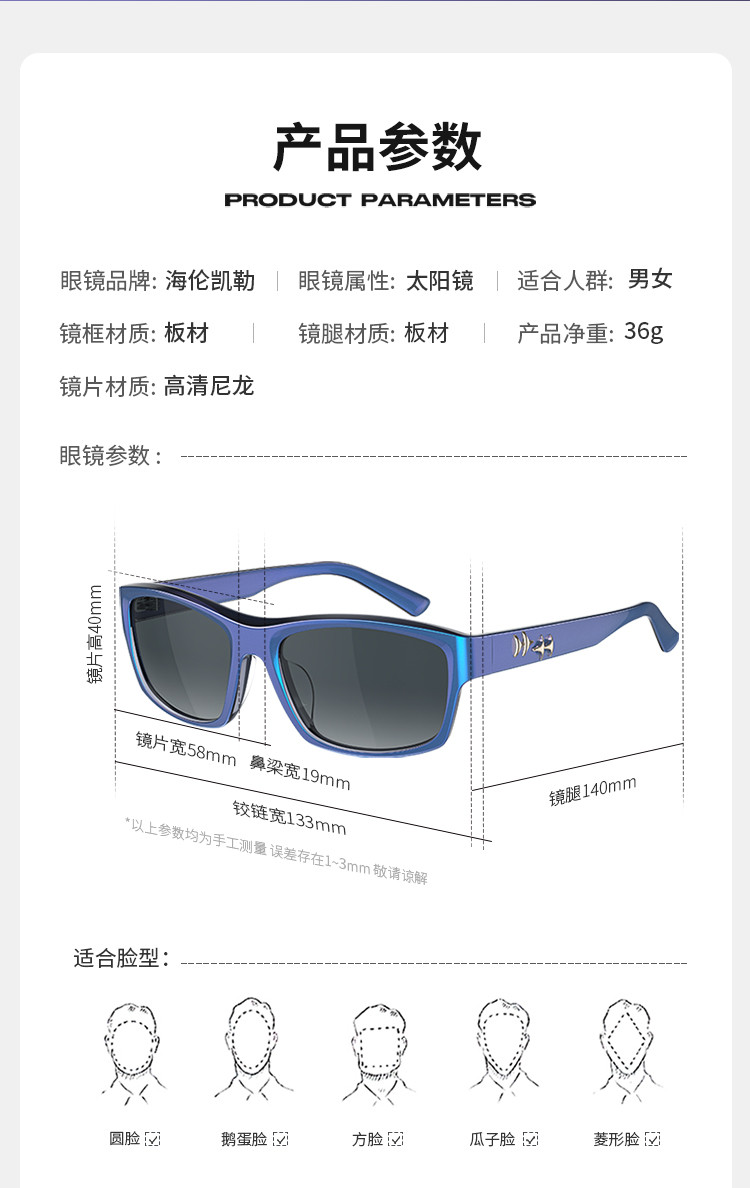 镜面宽度:133mm;镜片高度:40mm;鼻距:19mm;