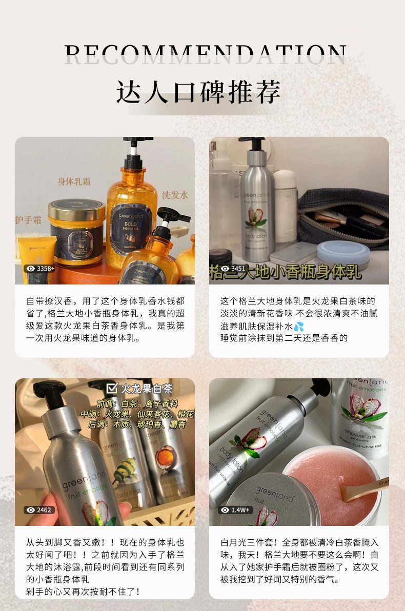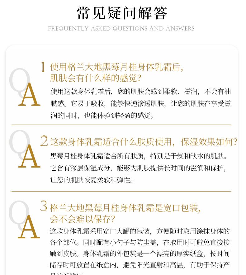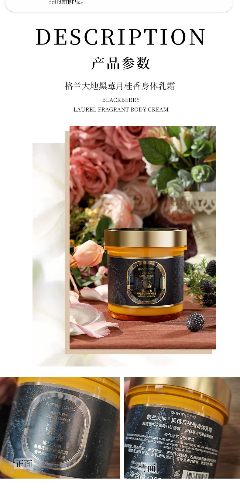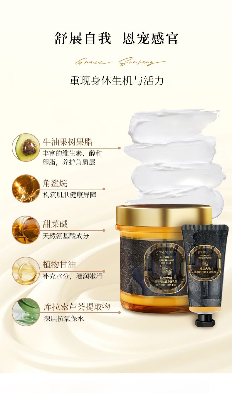 商品名称:Greenland/格兰大地黑莓月桂香身体乳霜250g