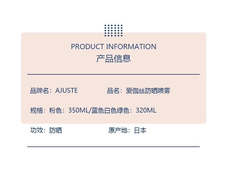 商品名称:Ajuste/爱伽丝防晒喷雾大瓶装