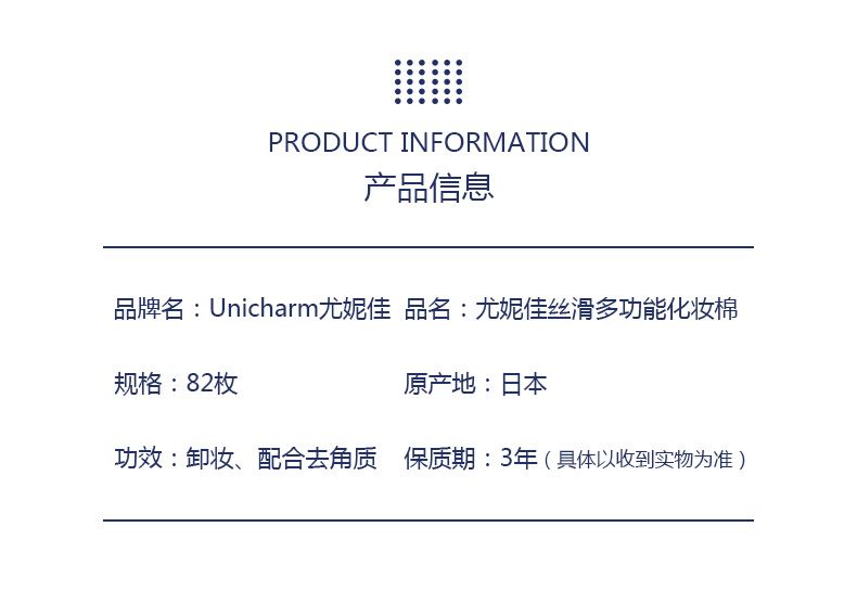 商品名称:UNICHARM/尤妮佳天然保湿化妆棉 82枚