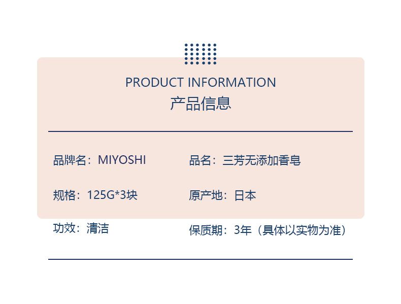 商品名称:Miyoshi/三芳 无添加香皂1包装(125g×3)