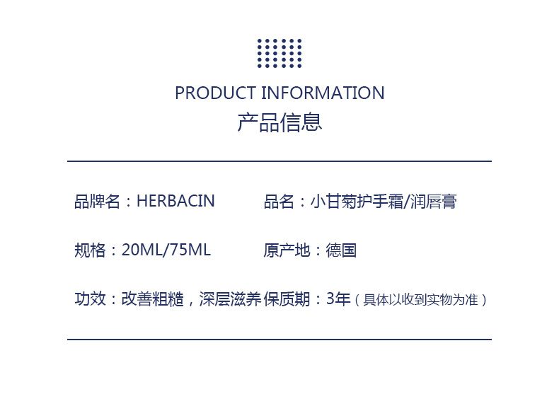 商品名称:Herbacin/贺本清小甘菊清爽护手霜20ml