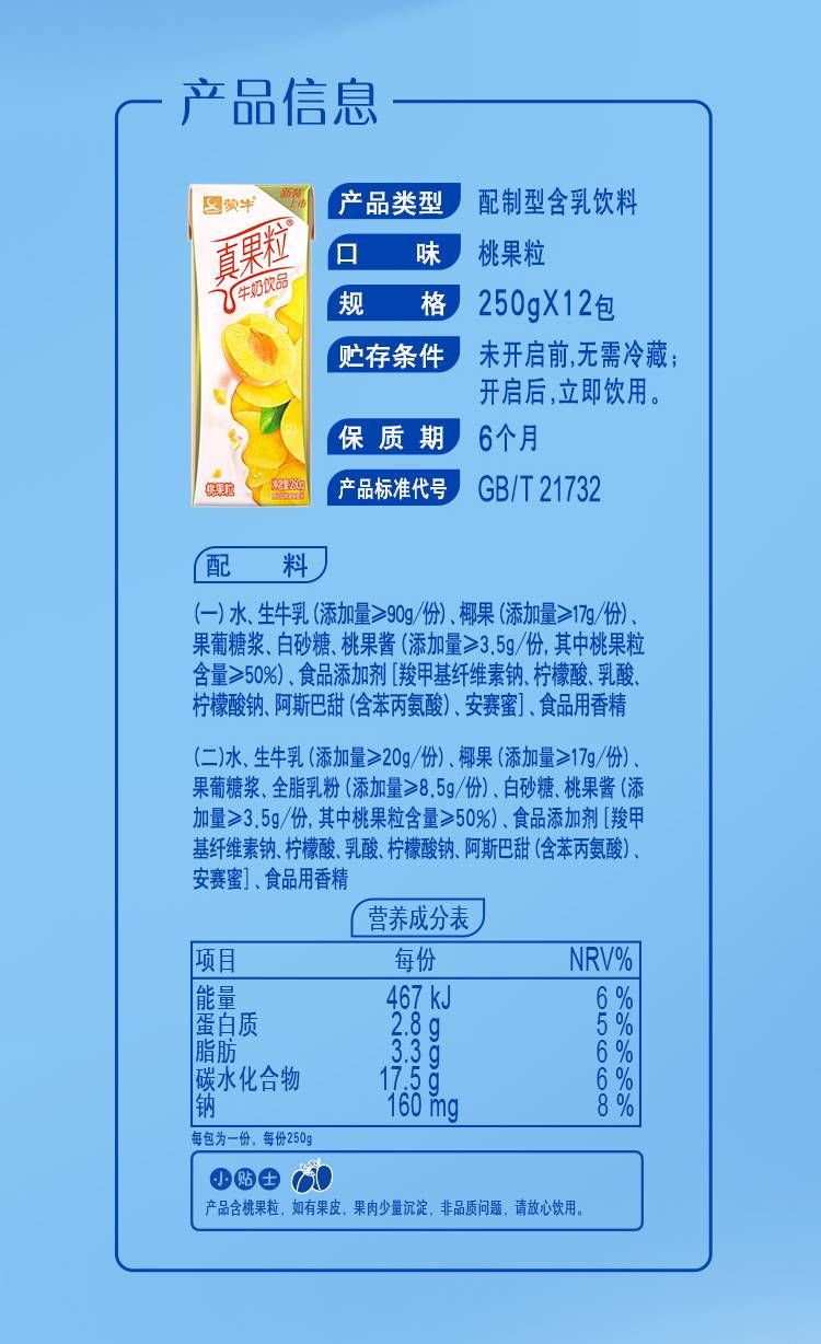 250ml*12/箱(黄桃味)