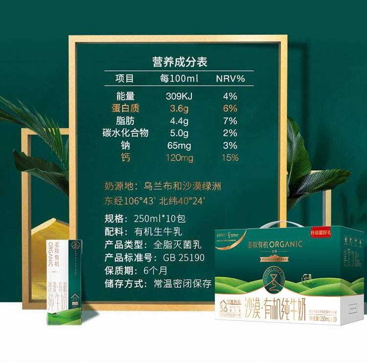 商品名称:圣牧有纯牛奶(优醇)250ml*10包