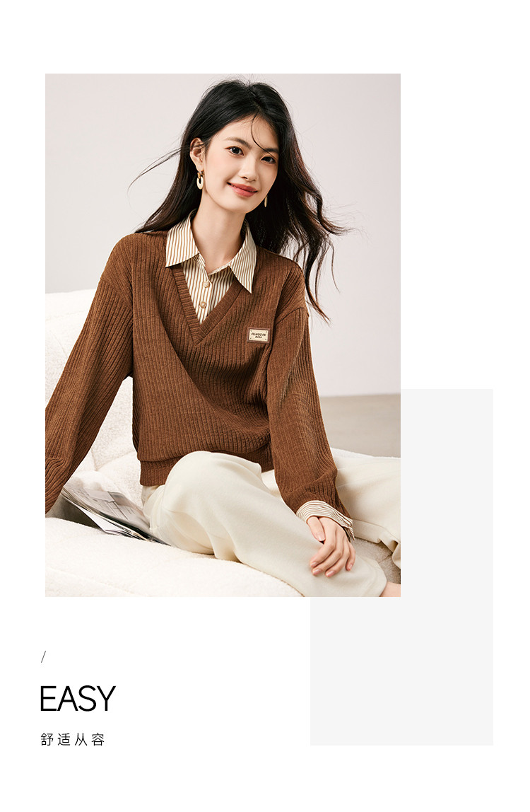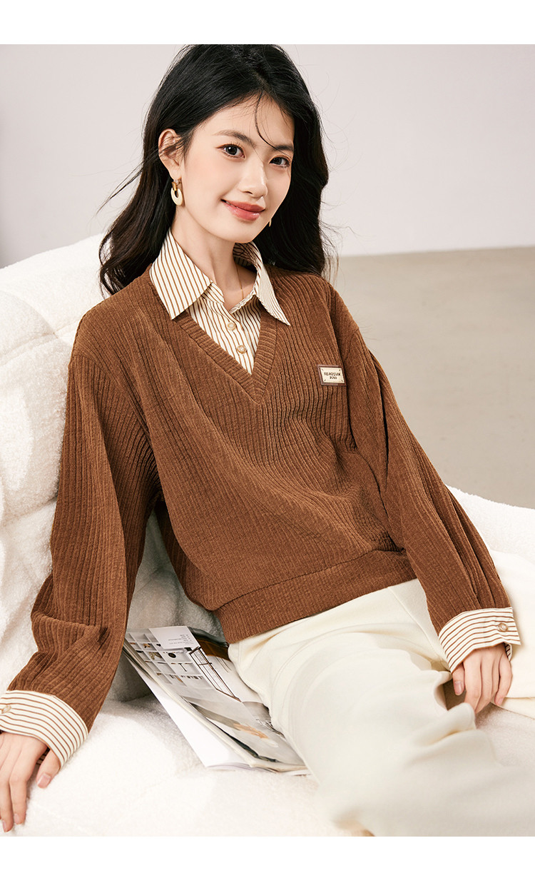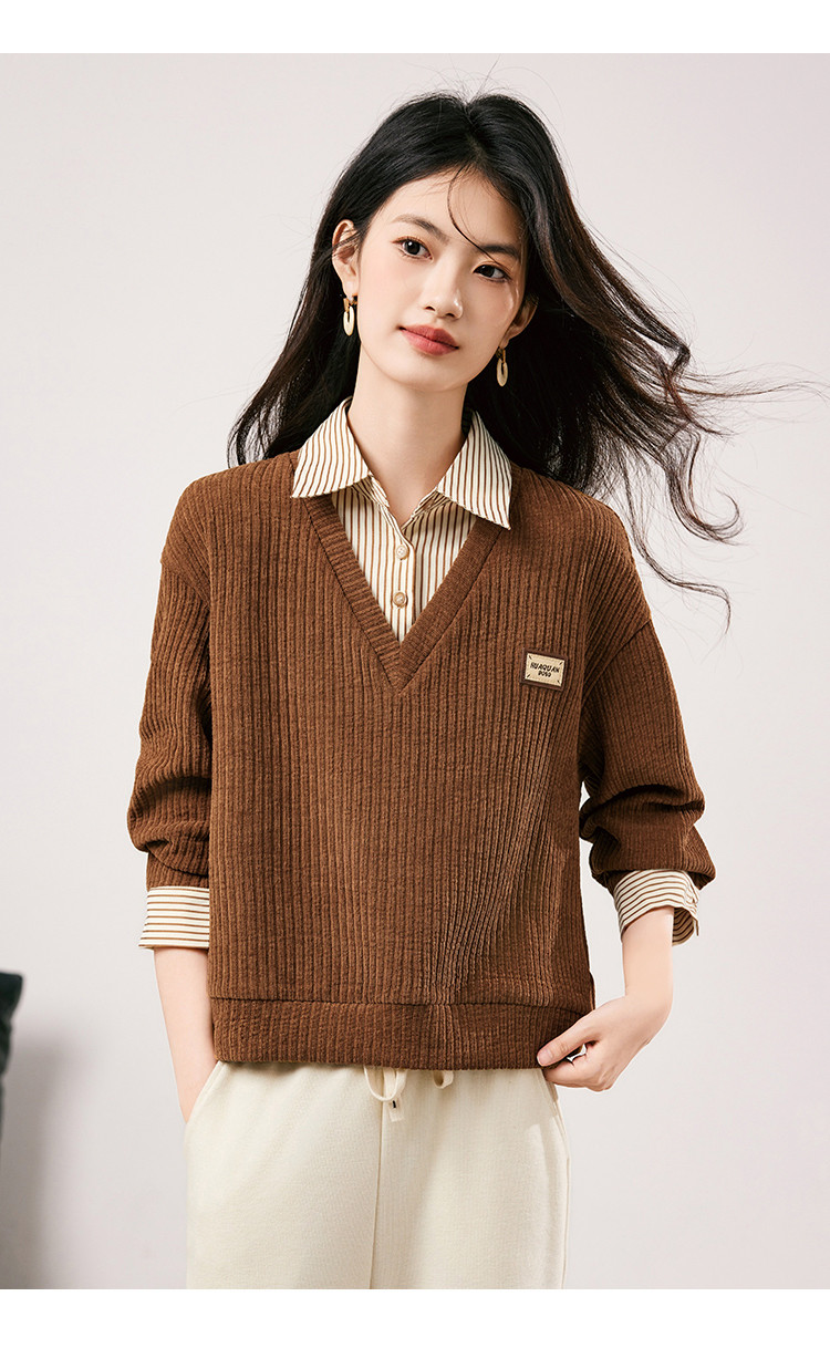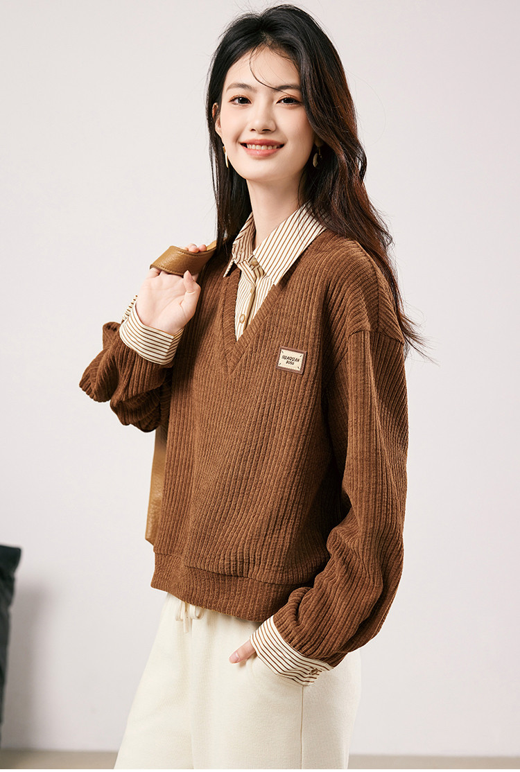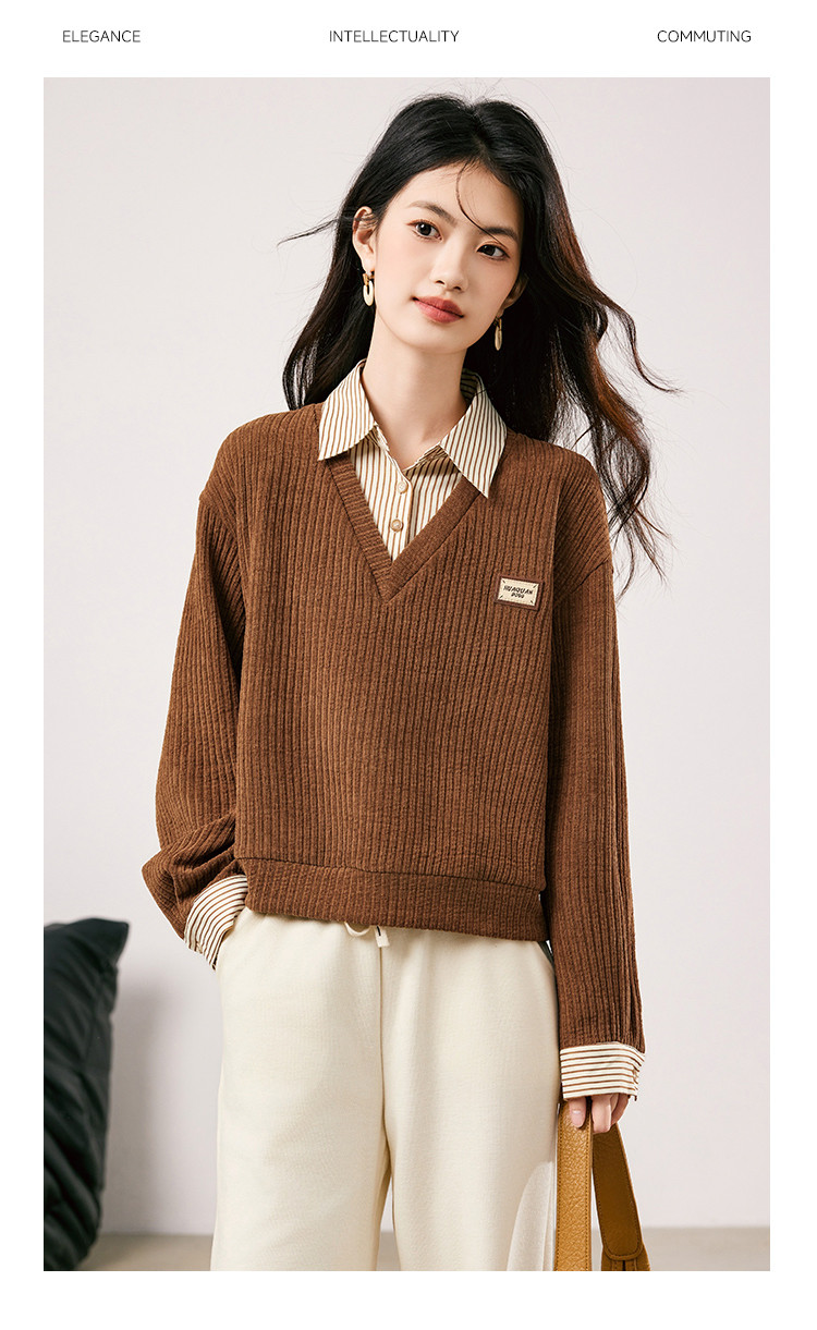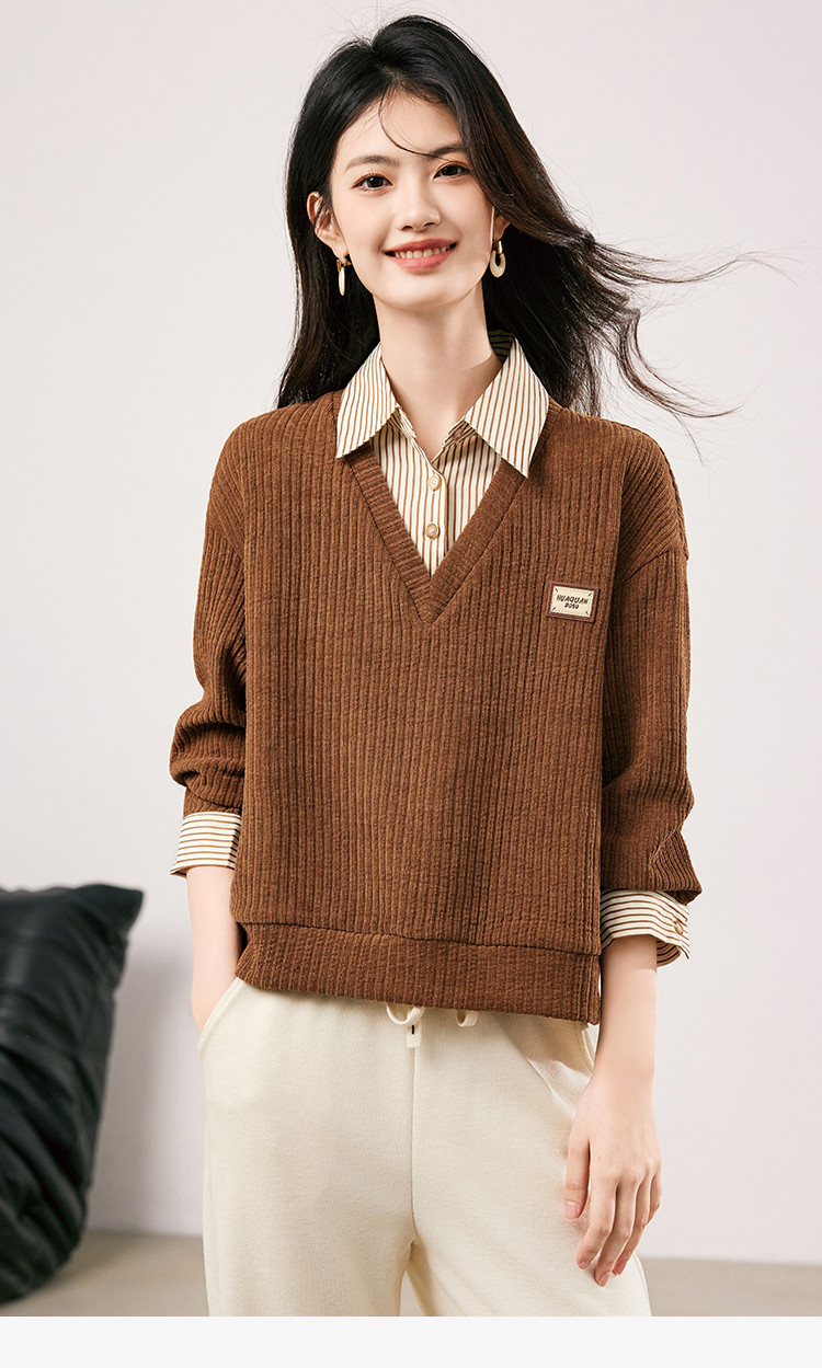 商品名称:【条纹拼接假两件通勤上衣】2025春季新款时尚百搭减龄卫衣女 708056