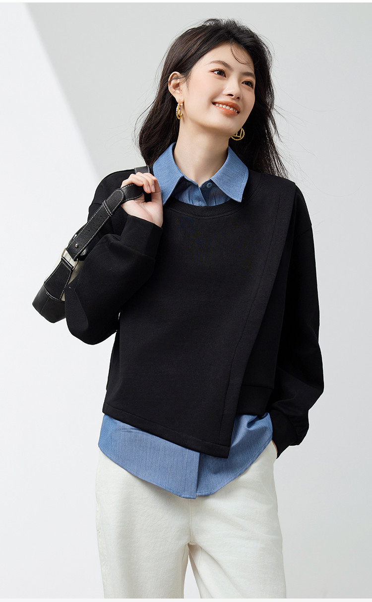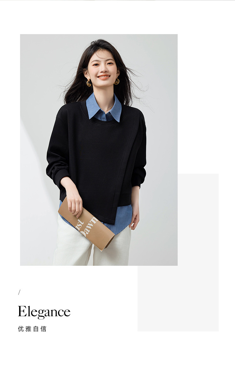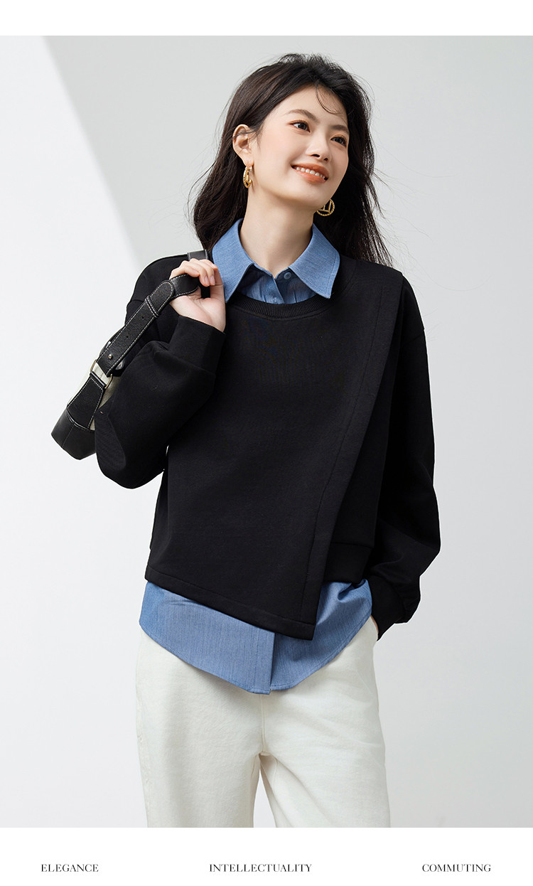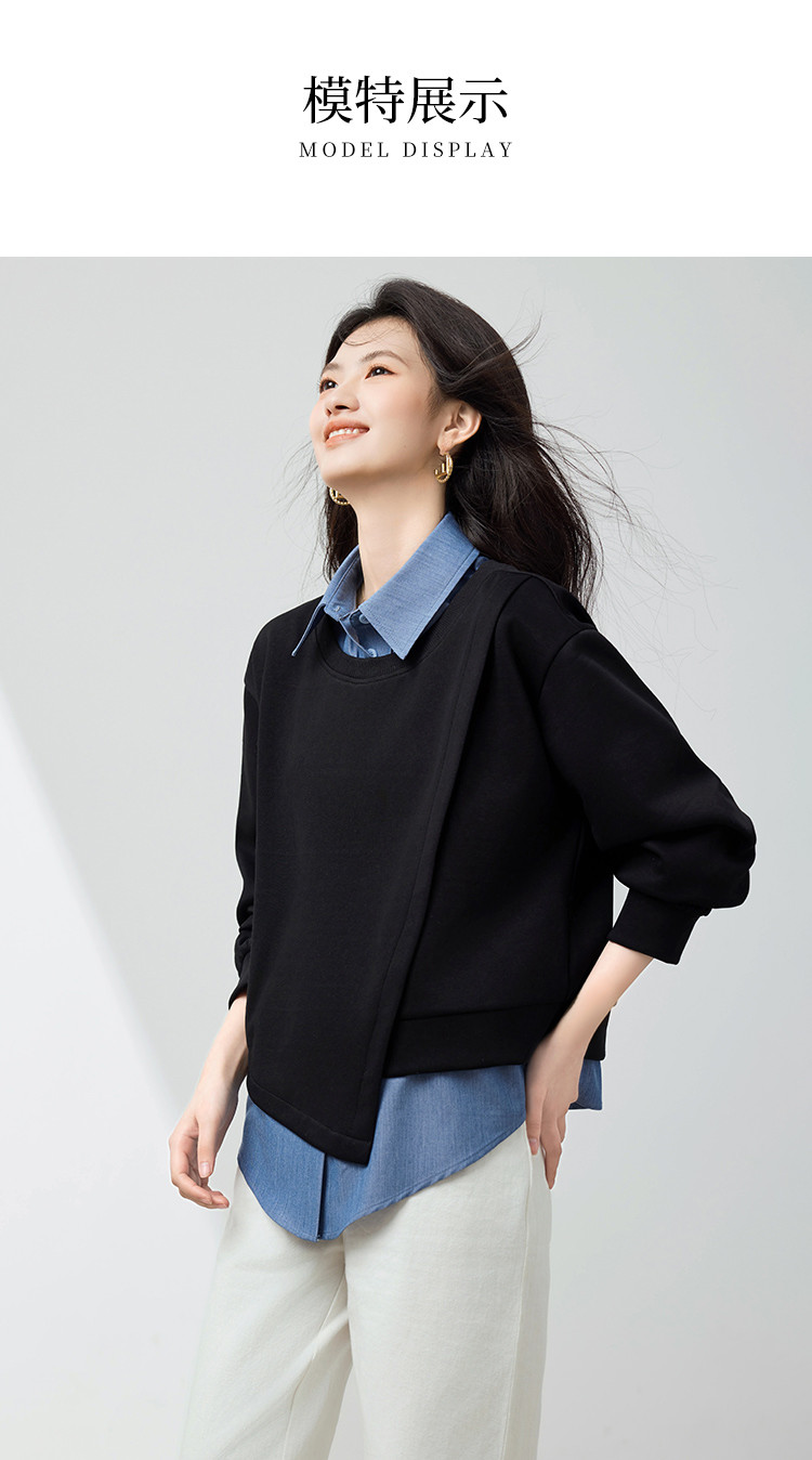 商品名称:【拼接假两件卫衣女】2025春季款时尚翻领落肩长袖休闲上衣女 359896