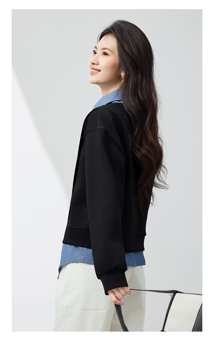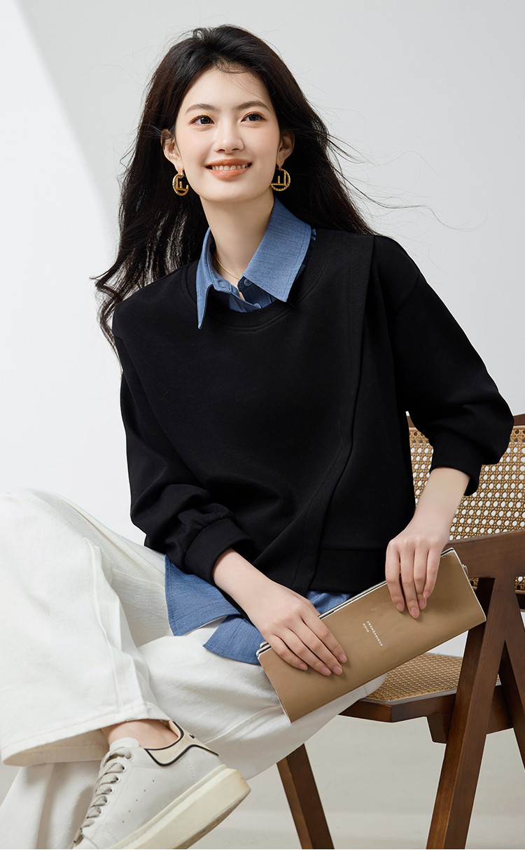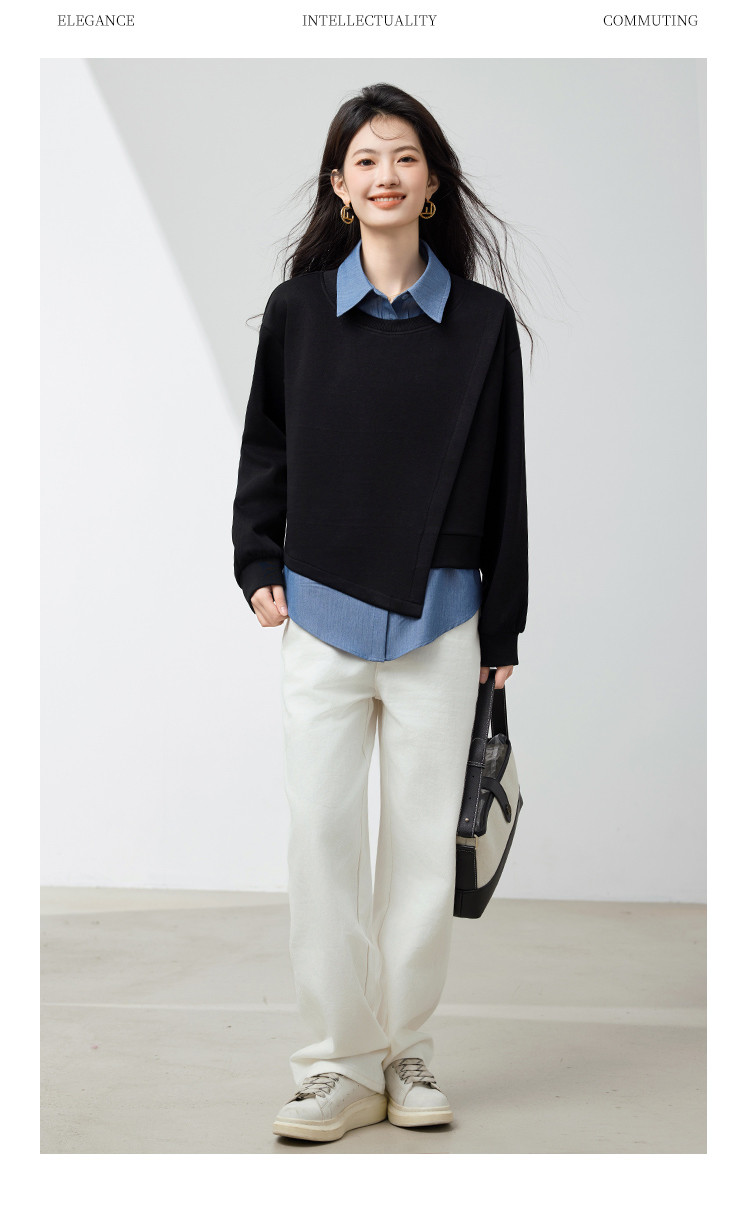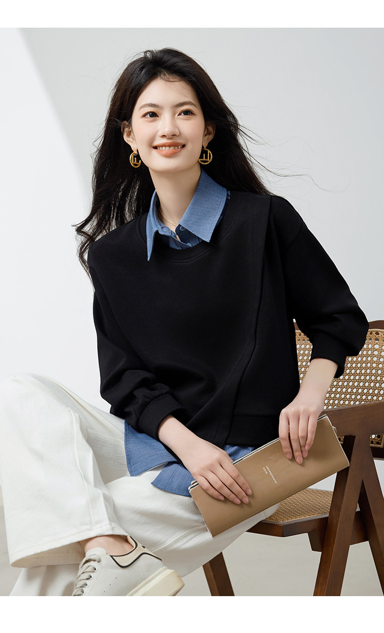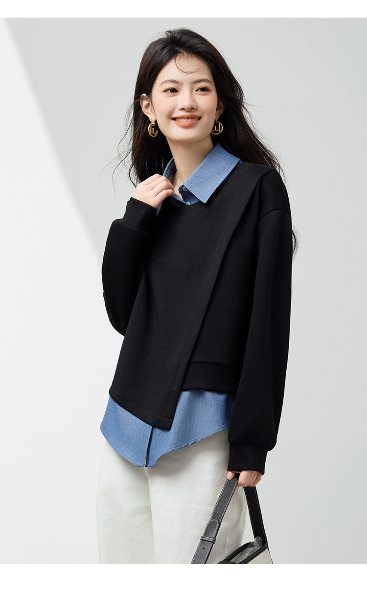 商品名称:【拼接假两件卫衣女】2025春季款时尚翻领落肩长袖休闲上衣女 359896