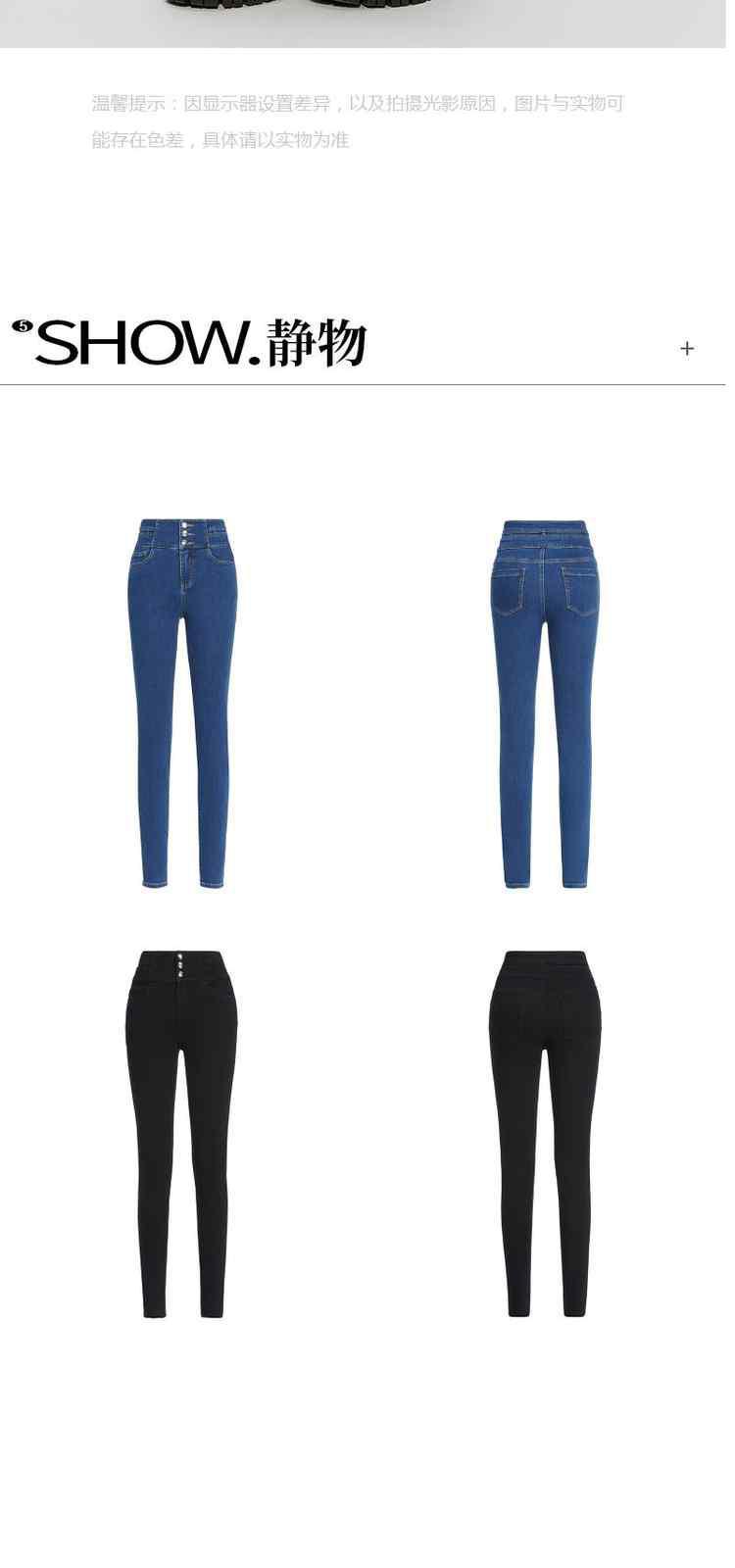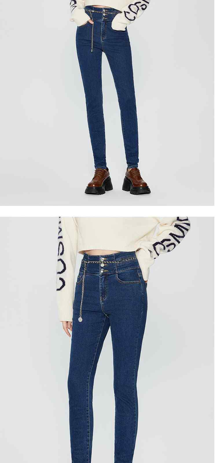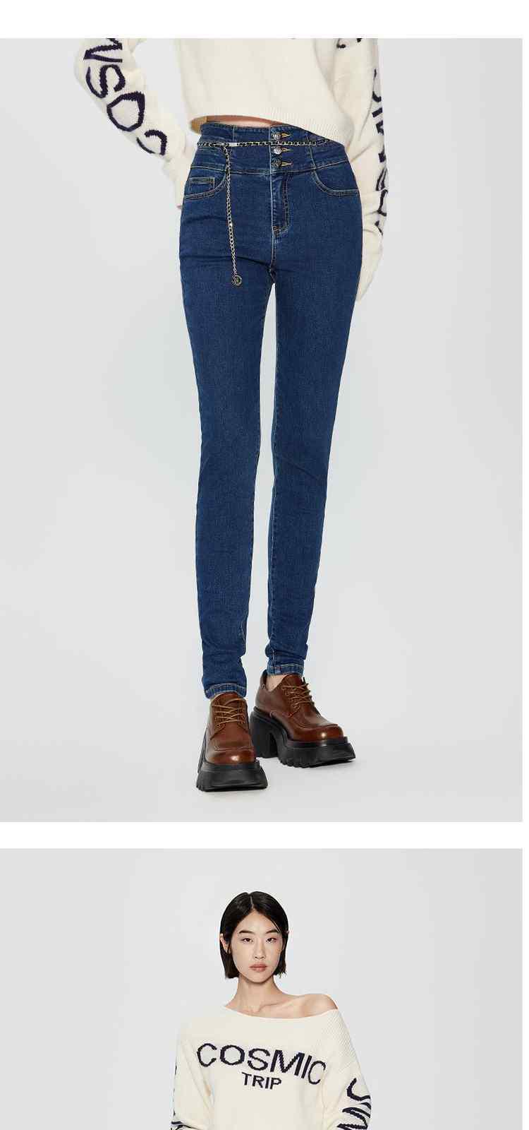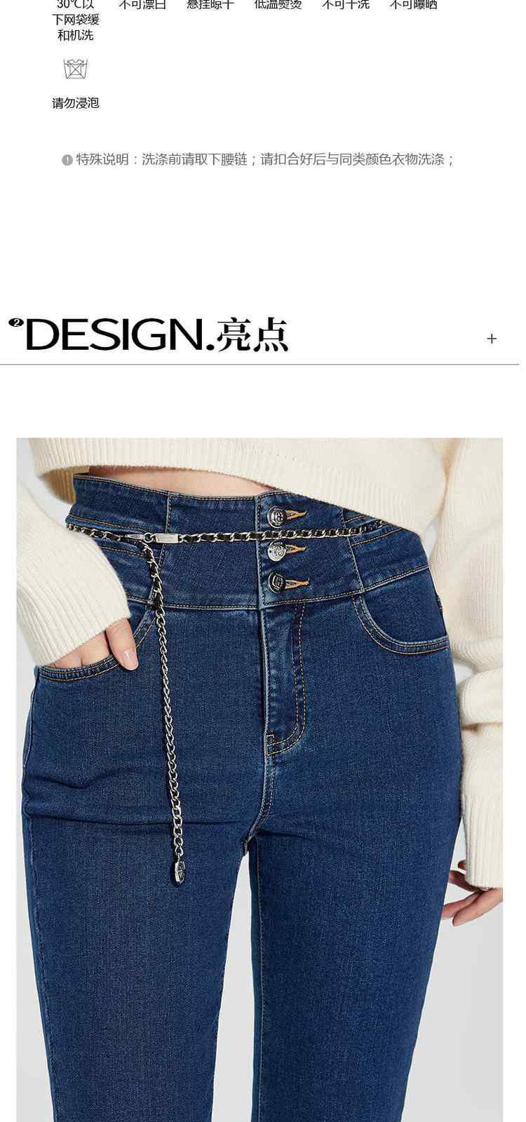 商品名称:春装高腰修身显瘦配腰链加绒小脚牛仔裤女 261263