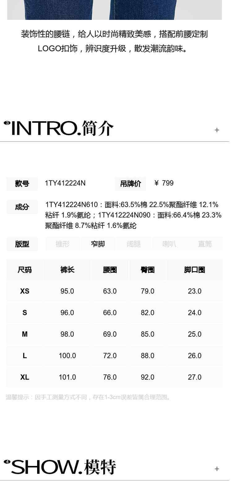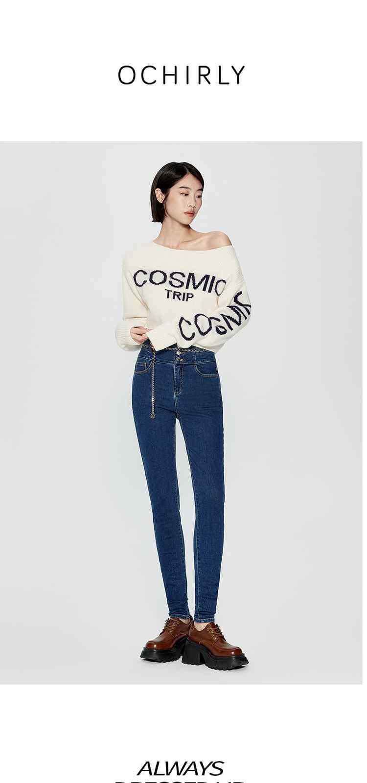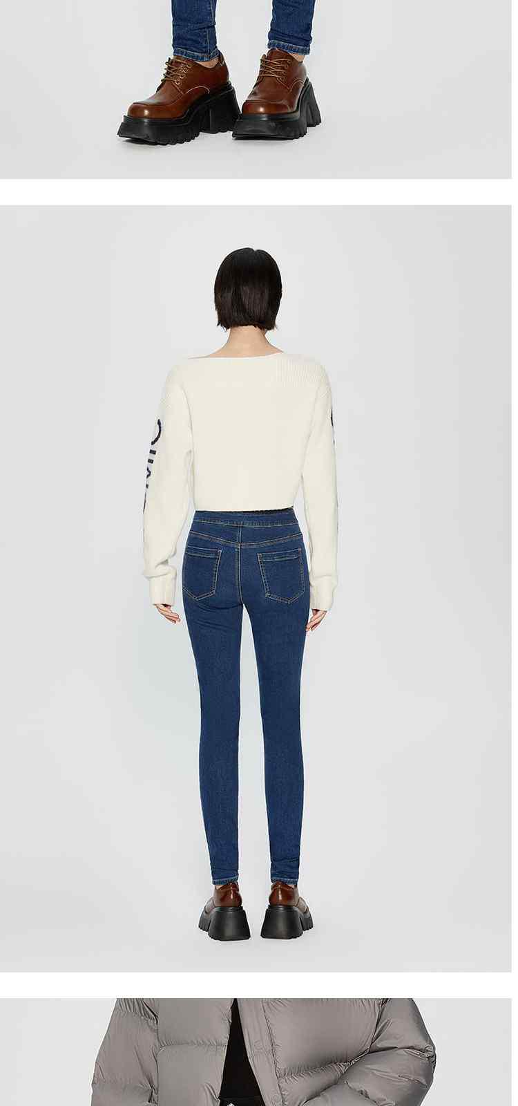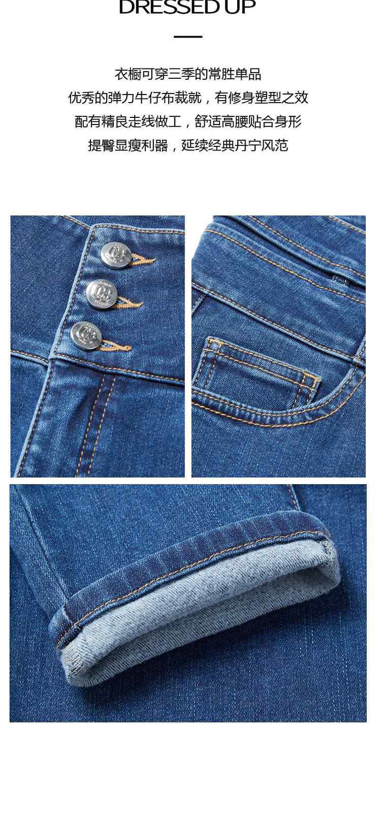 商品名称:春装高腰修身显瘦配腰链加绒小脚牛仔裤女 261263