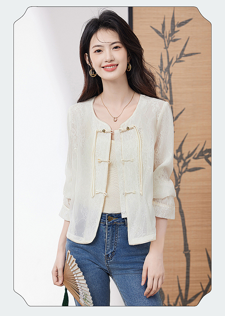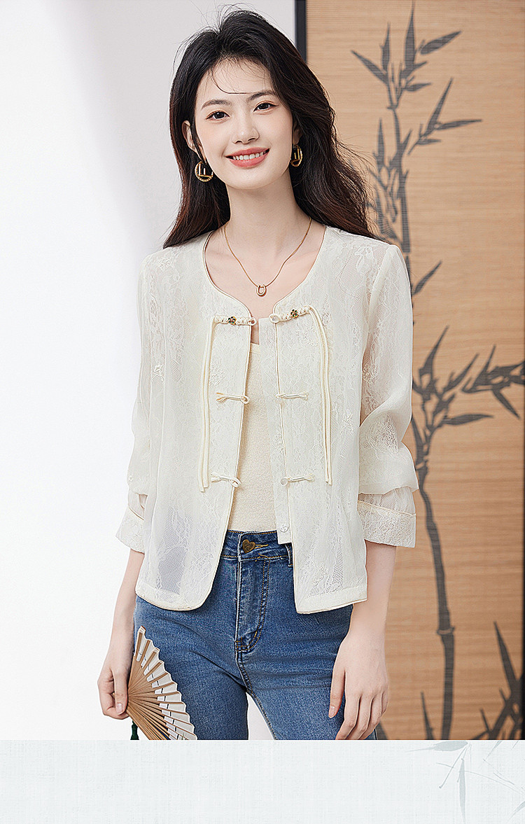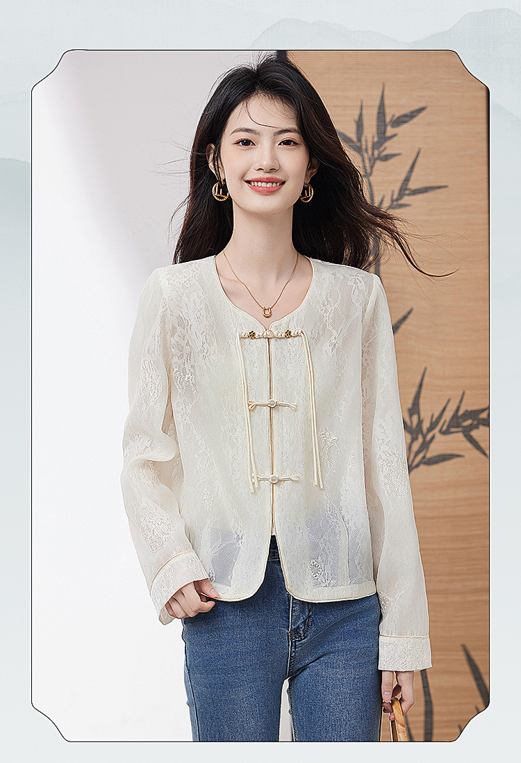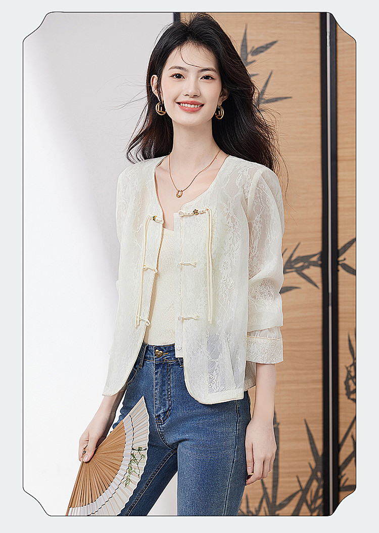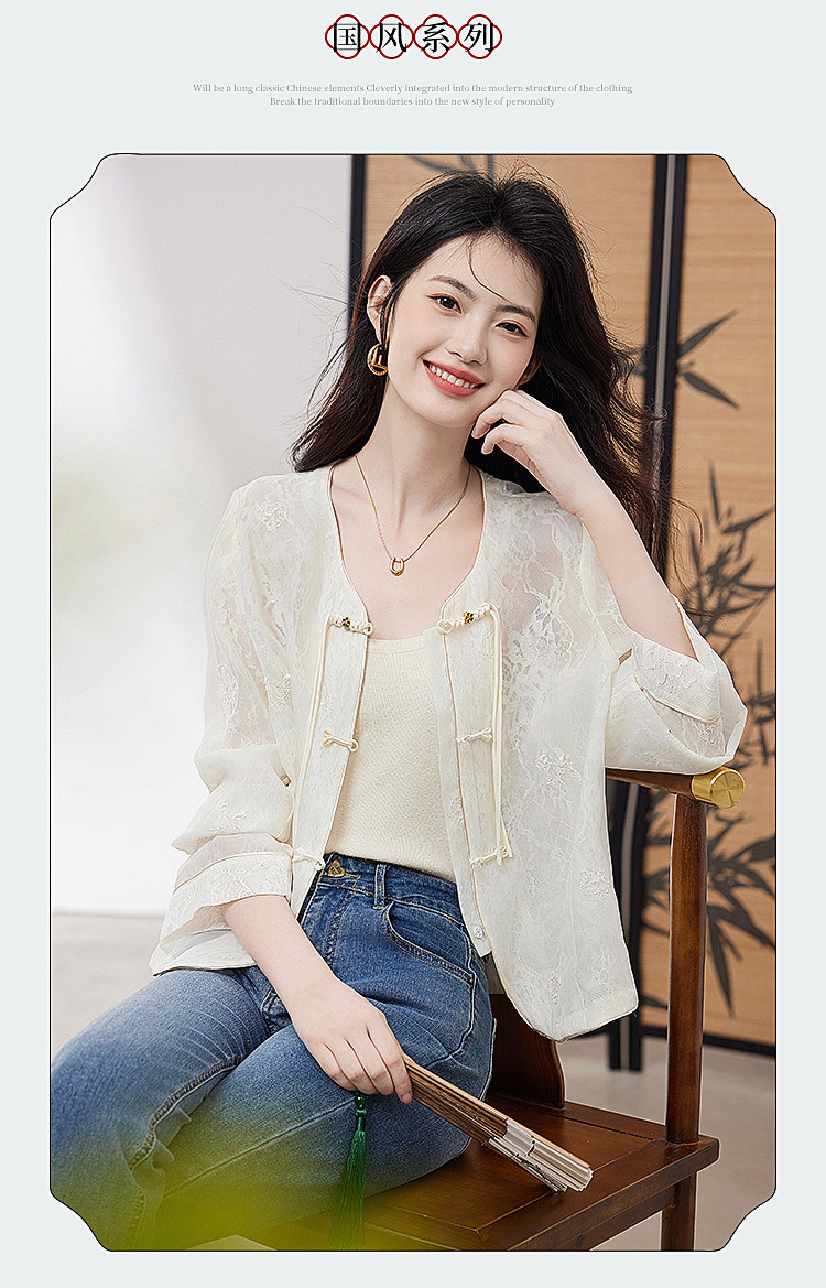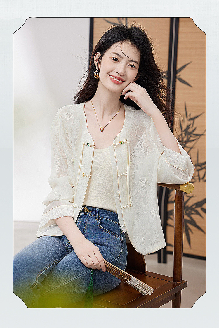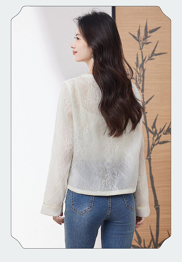商品名称:【高级感包边轻薄透视网纱外套女】25夏季新款气质遮阳外搭上衣 805016