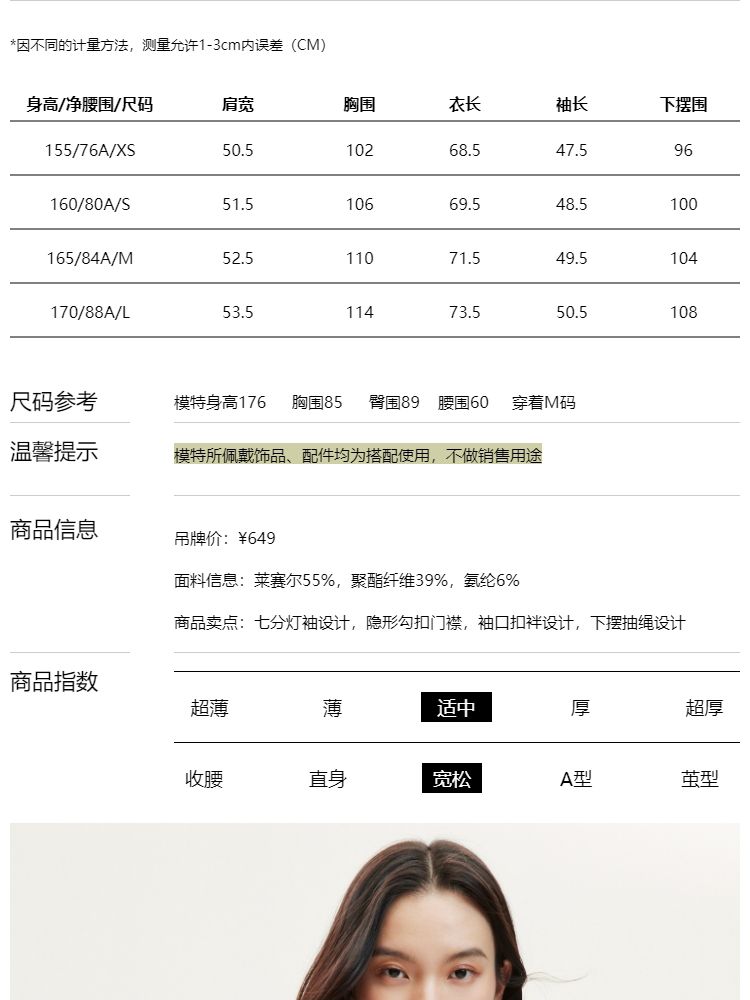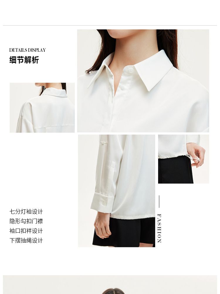 商品名称:衬衫女宽松落肩下摆抽绳七分袖衬衫休闲通勤 140945
