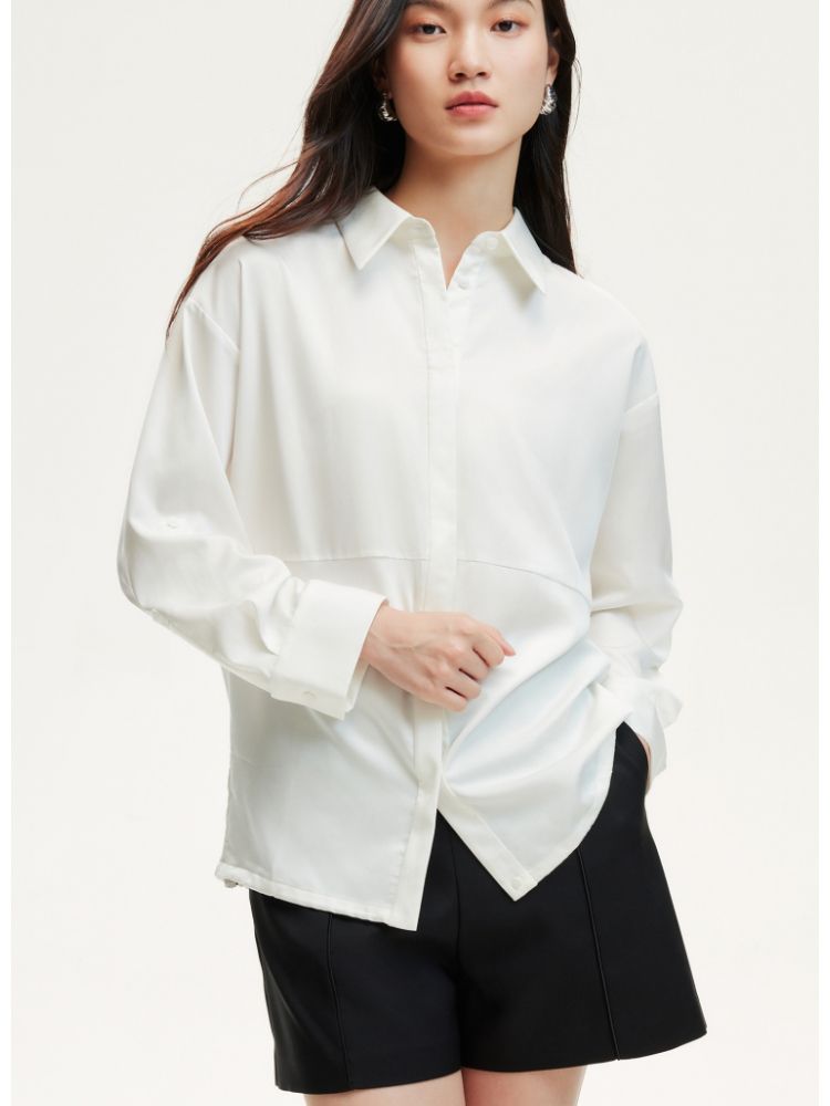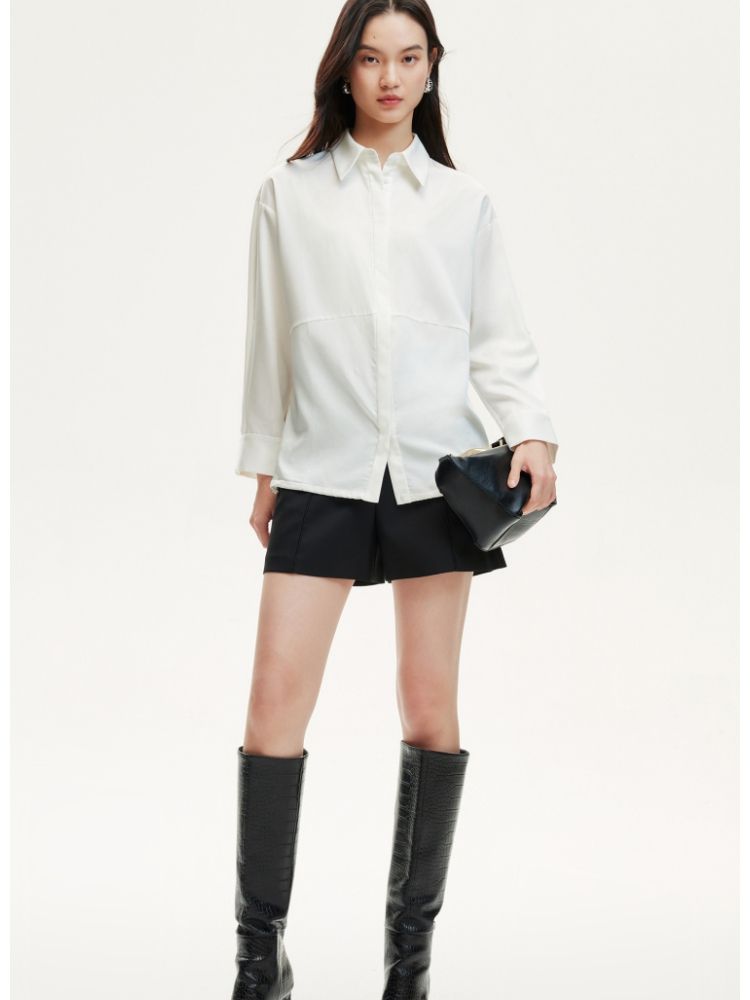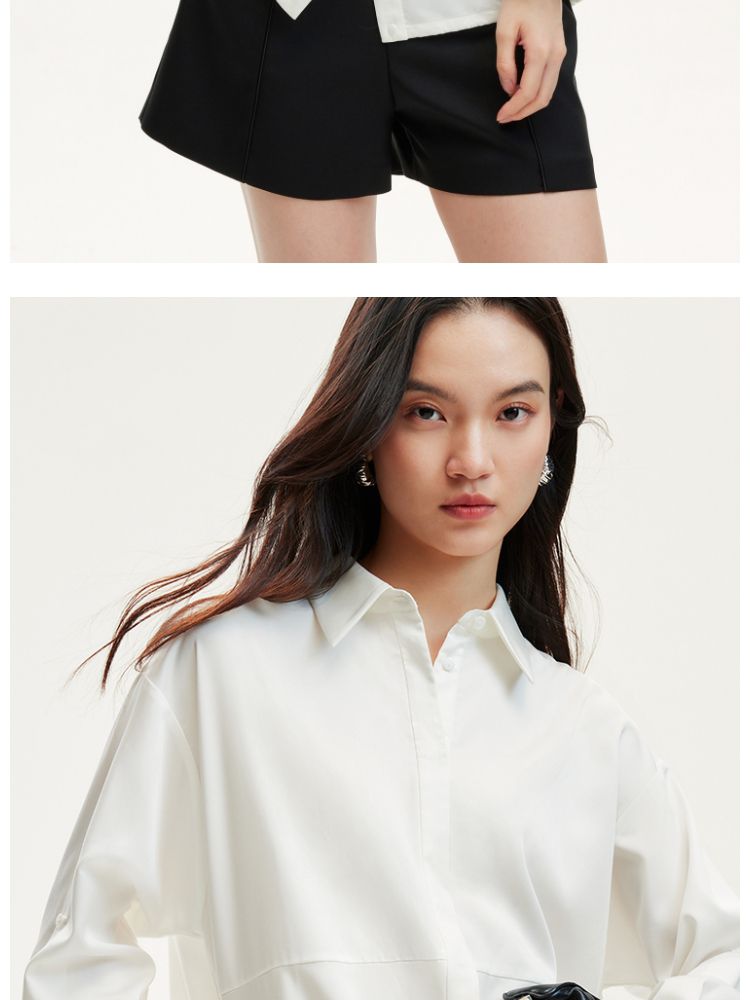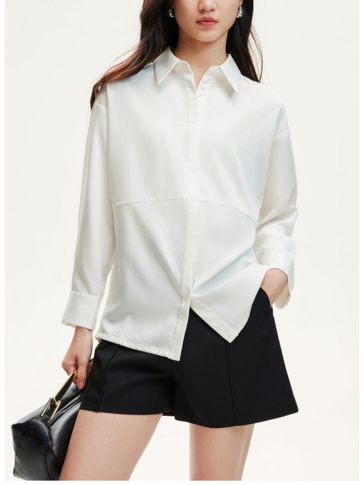 衬衫女宽松落肩下摆抽绳七分袖衬衫休闲通勤 140945
