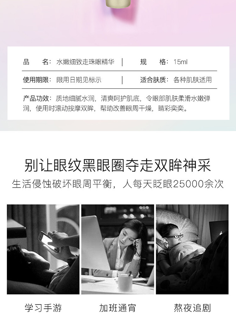 商品名称:形象美 水嫩细致走珠眼精华 15ml*2瓶