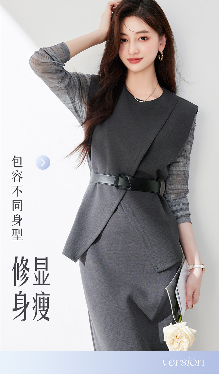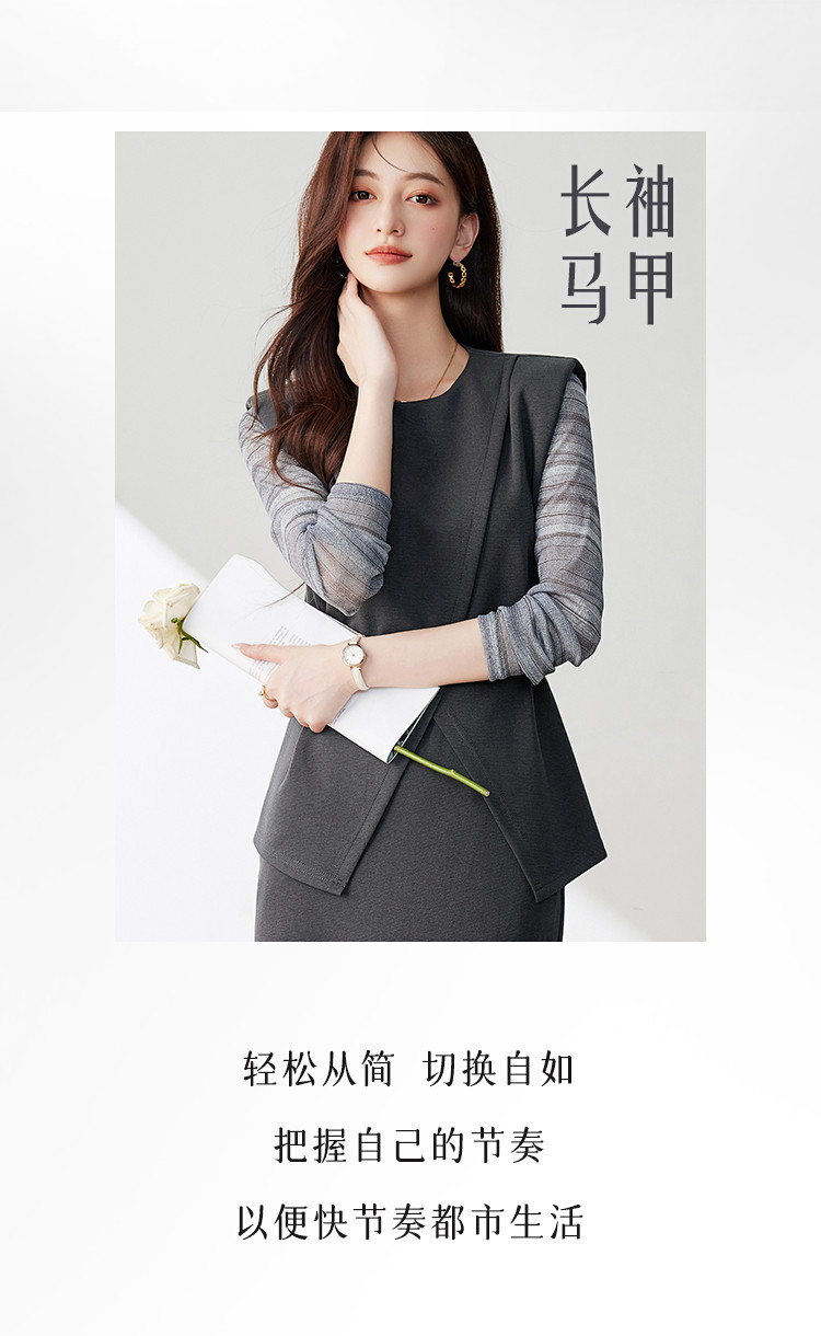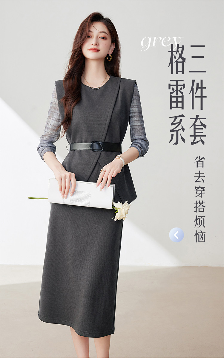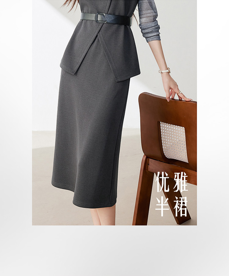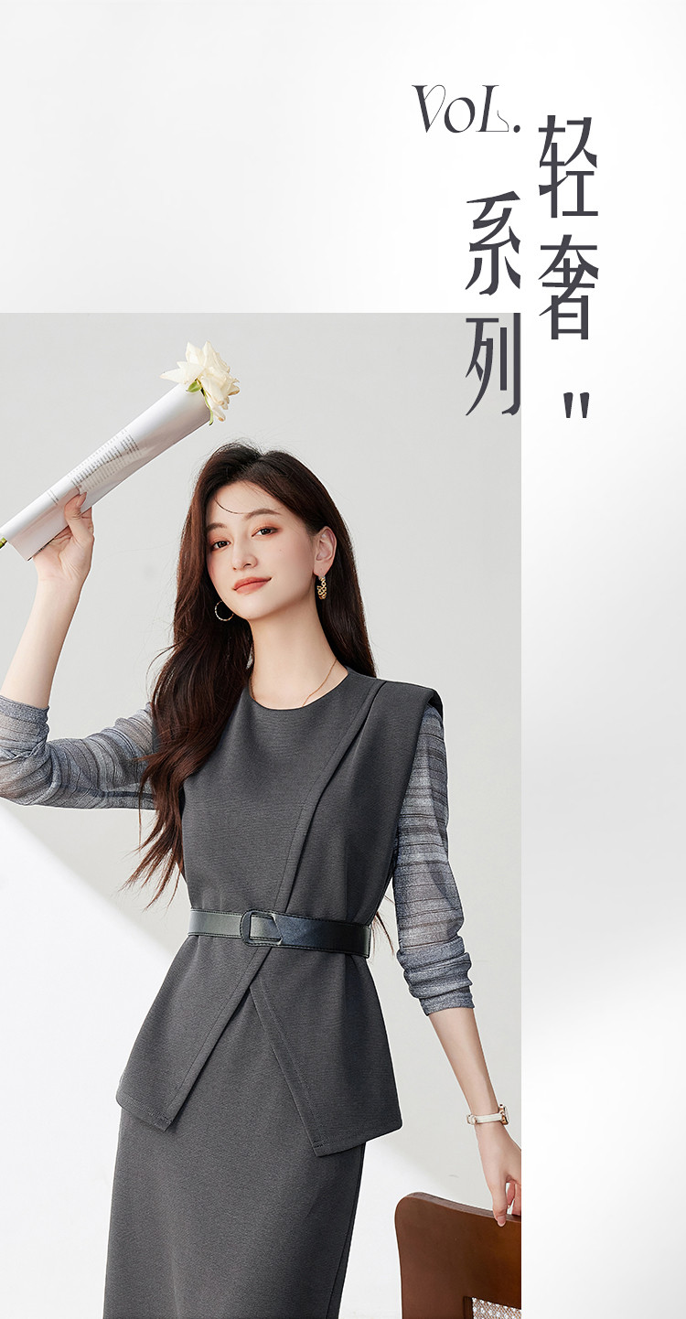 商品名称:休闲套装女春又a又飒干练气质高级感不规则上衣半身裙三件套 581016