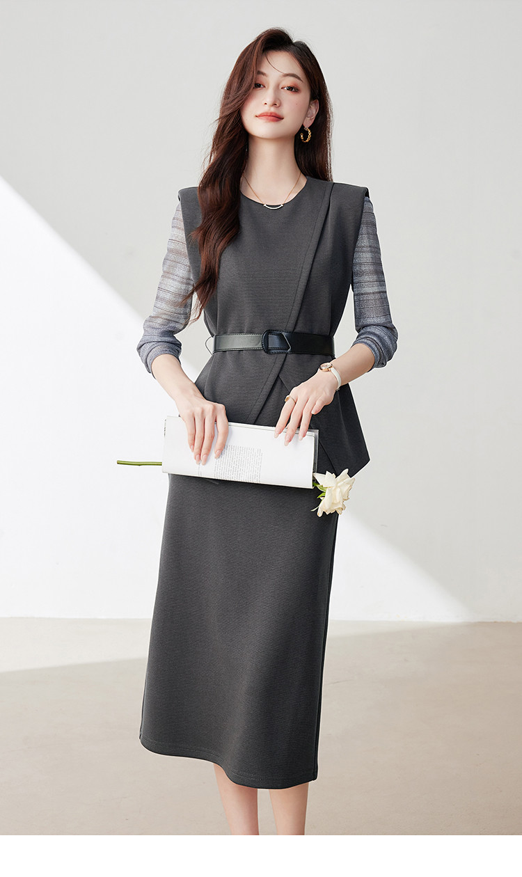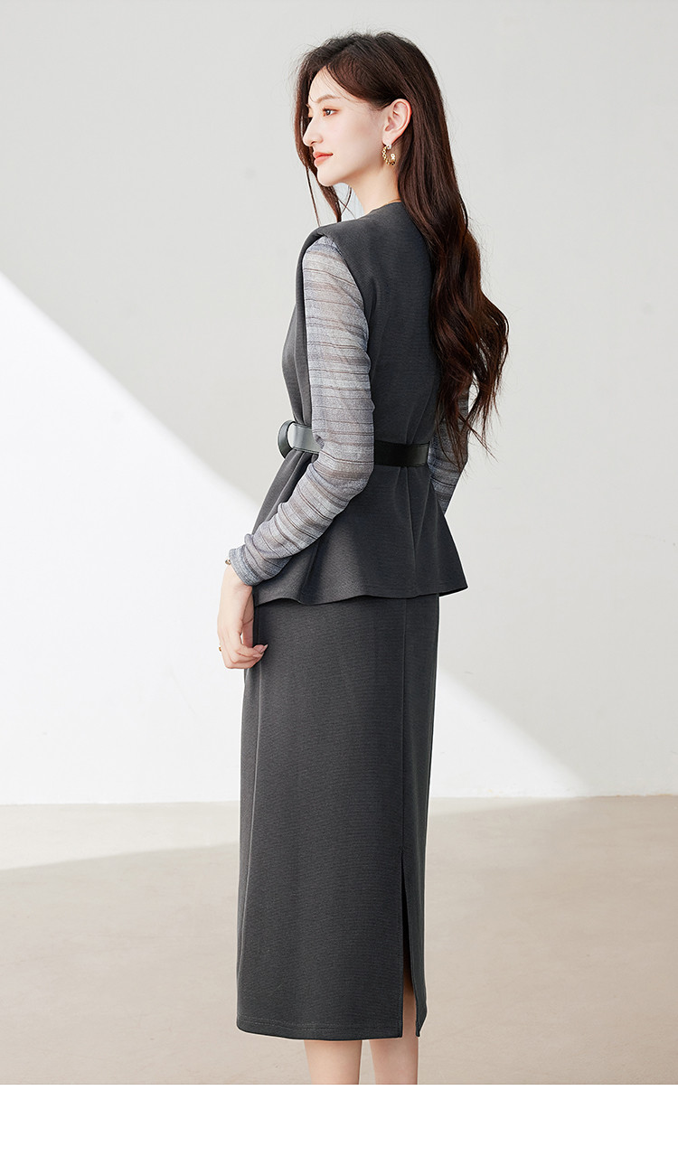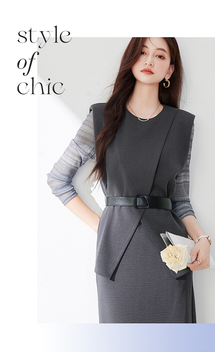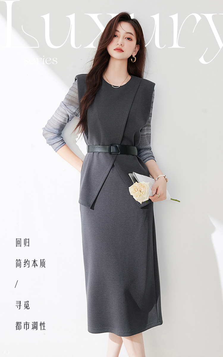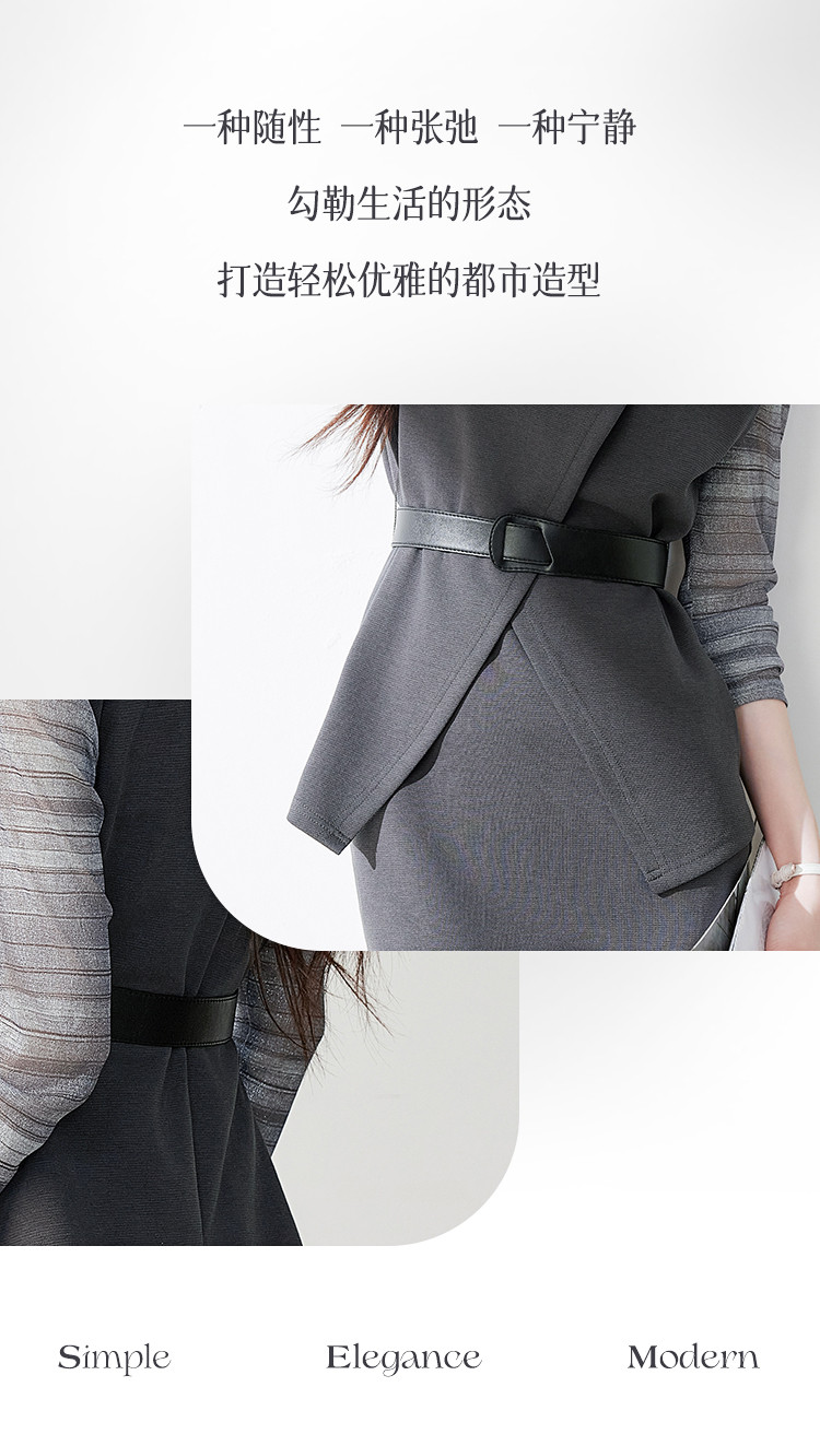 商品名称:休闲套装女春又a又飒干练气质高级感不规则上衣半身裙三件套 581016