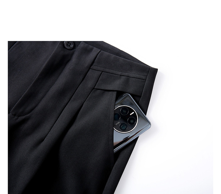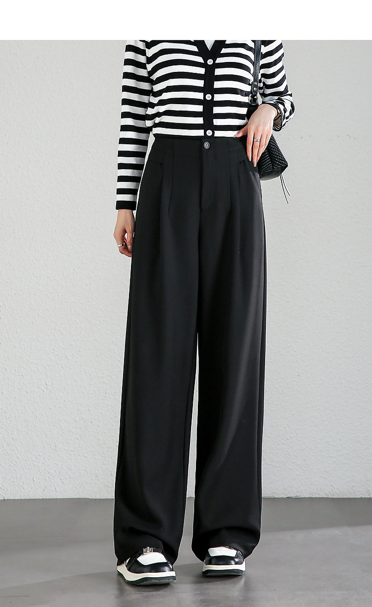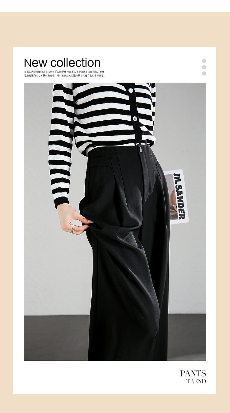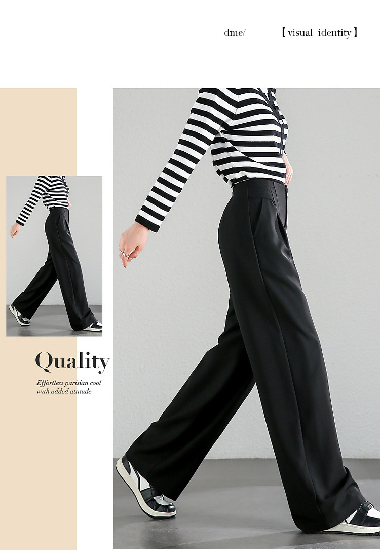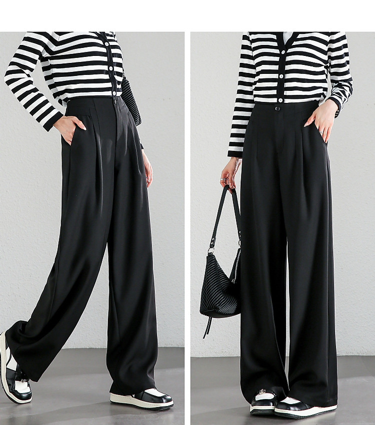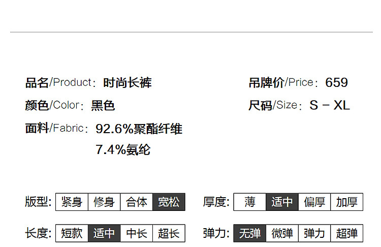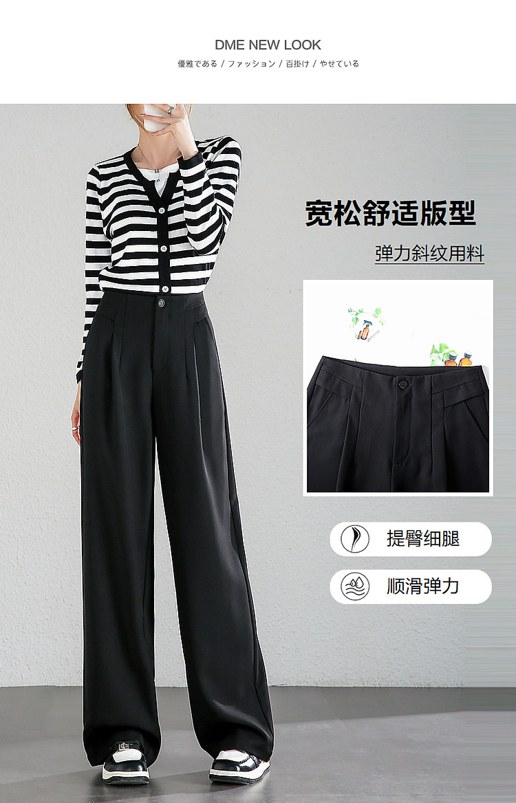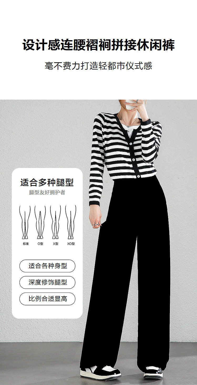 商品名称:【至醇150D弹力斜纹】秋设计感连腰褶裥拼接宽松藏肉女休闲裤 458689