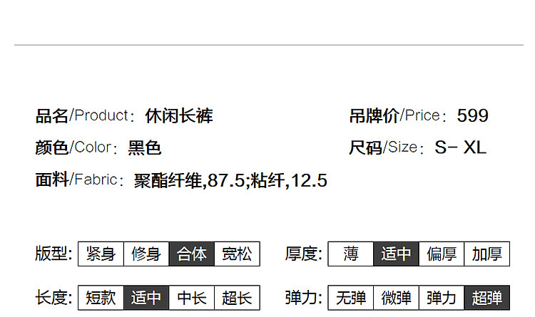 商品名称:【老钱印象】秋简约风高弹舒适长裤高腰遮肉好搭休闲裤子女 529921