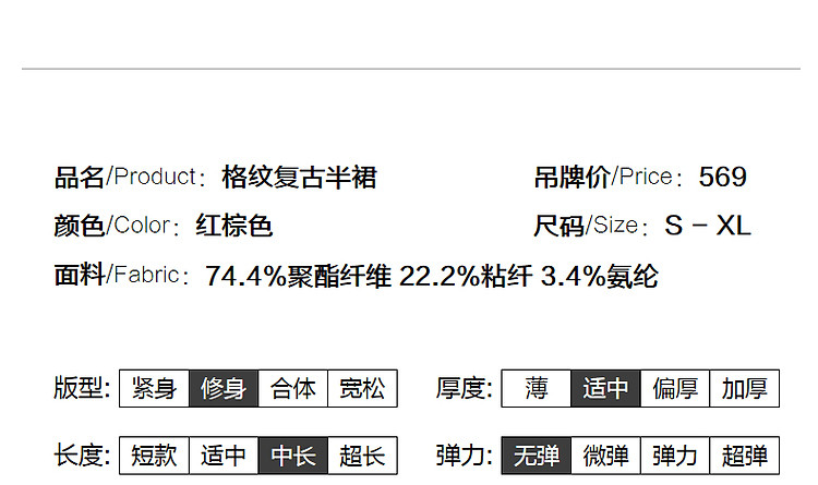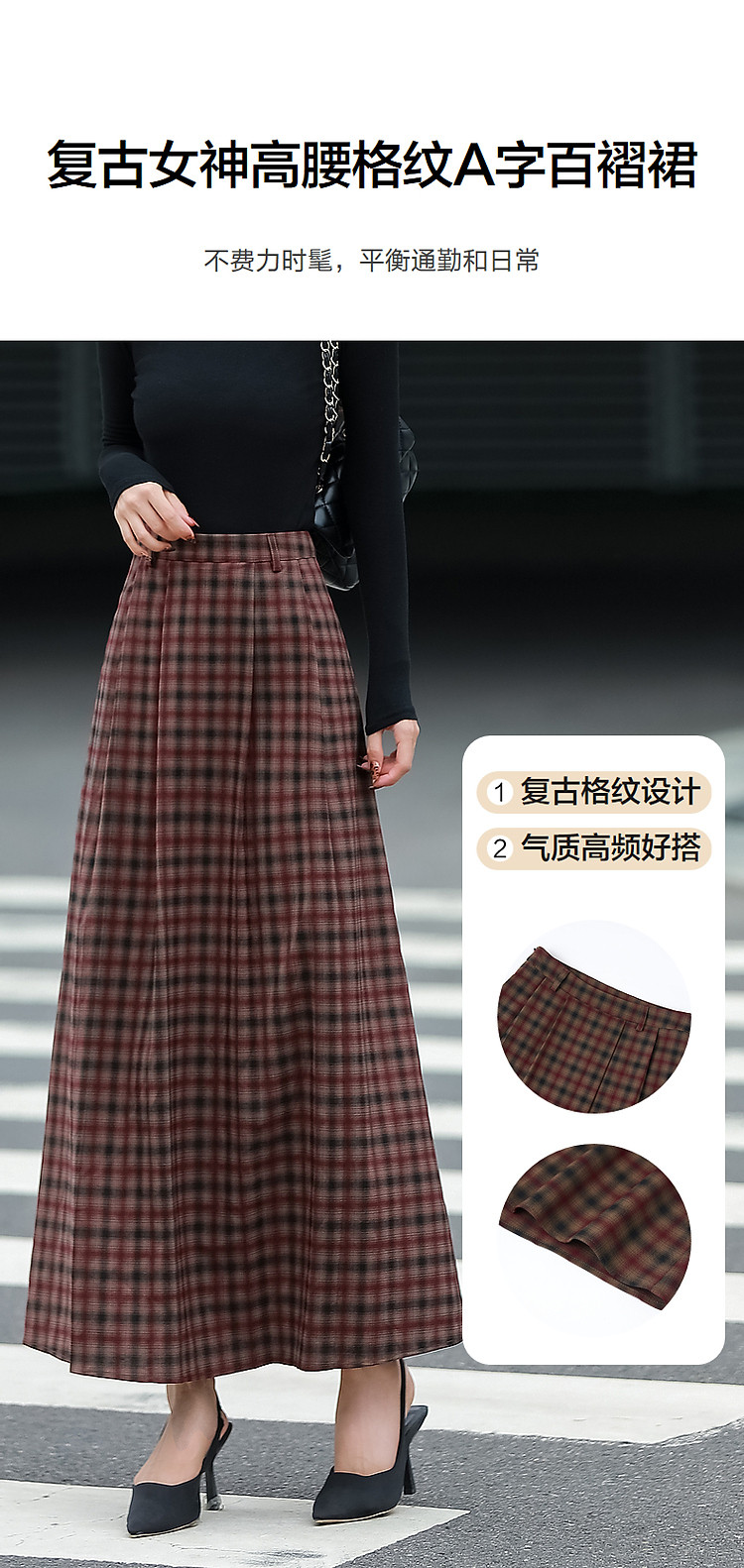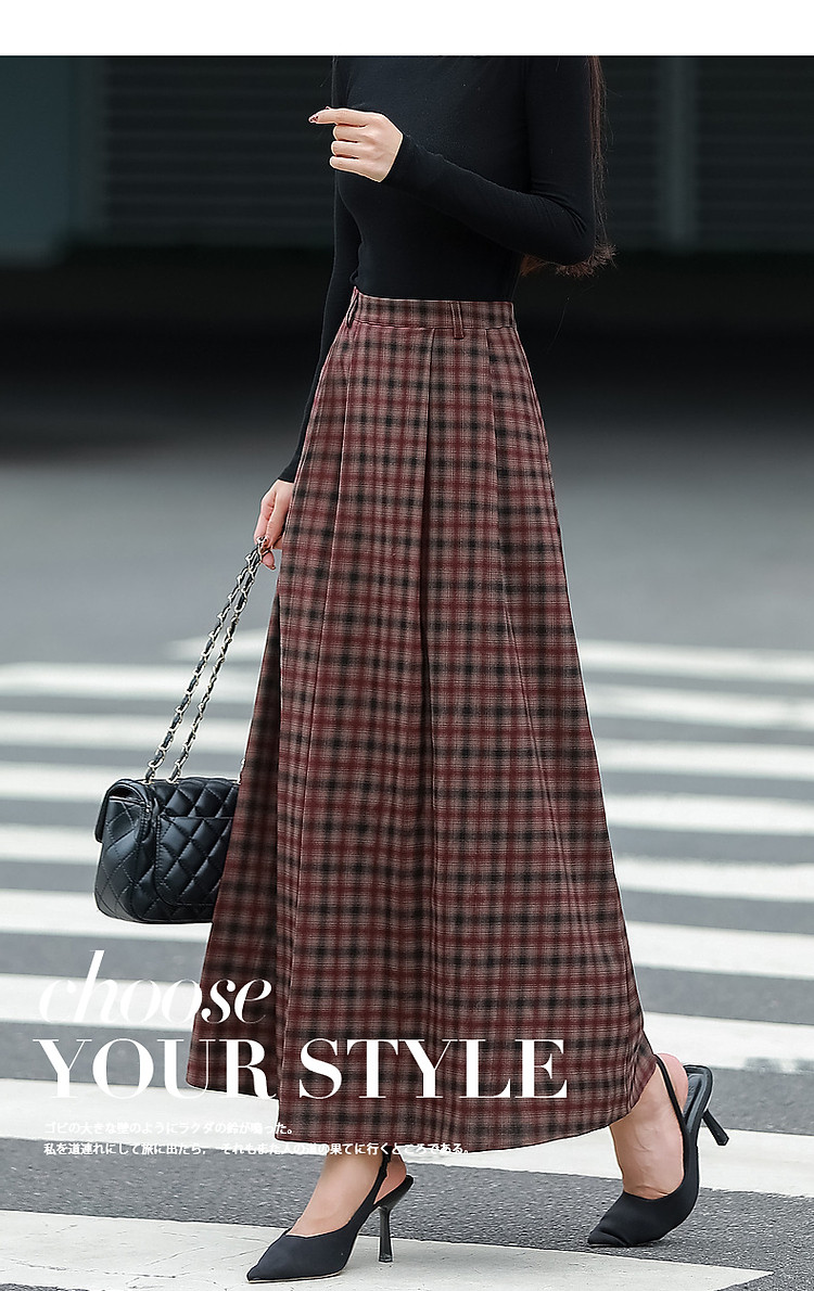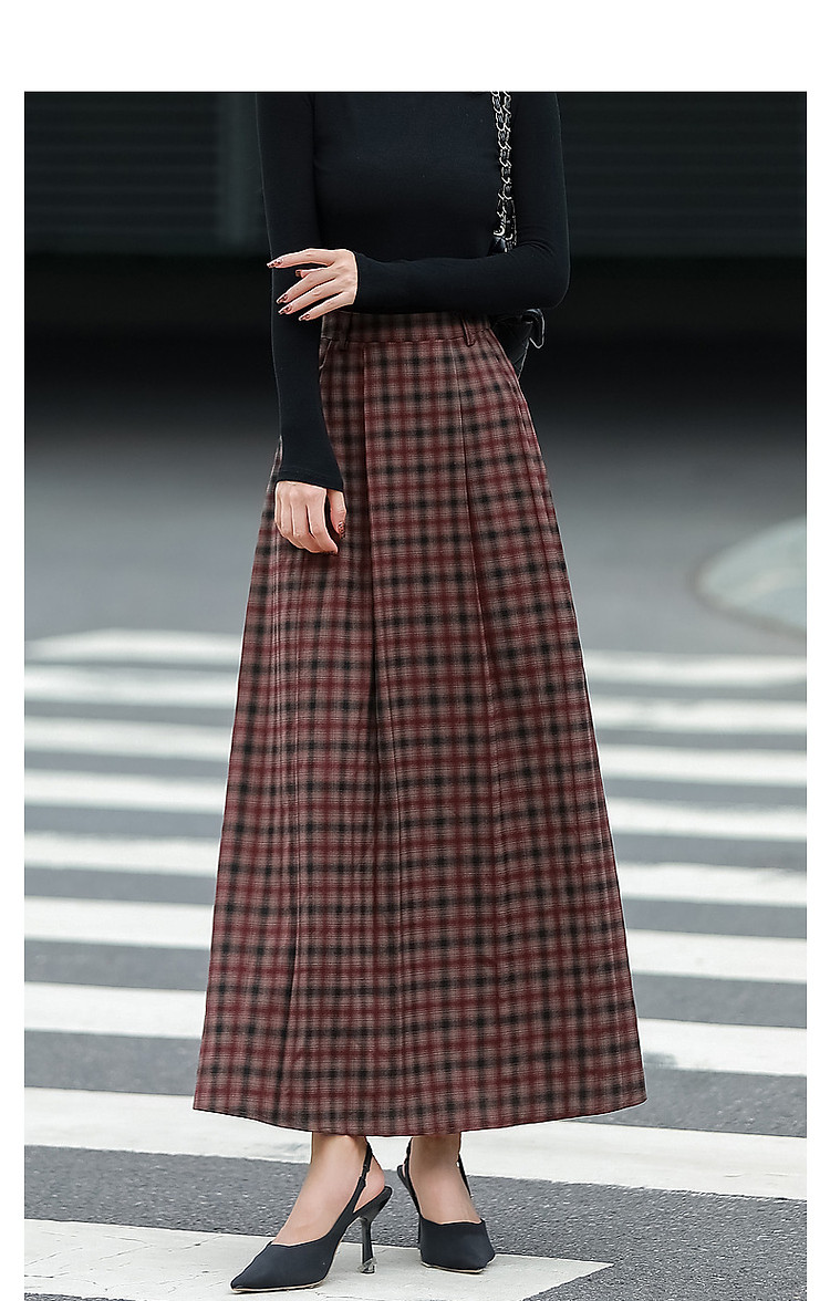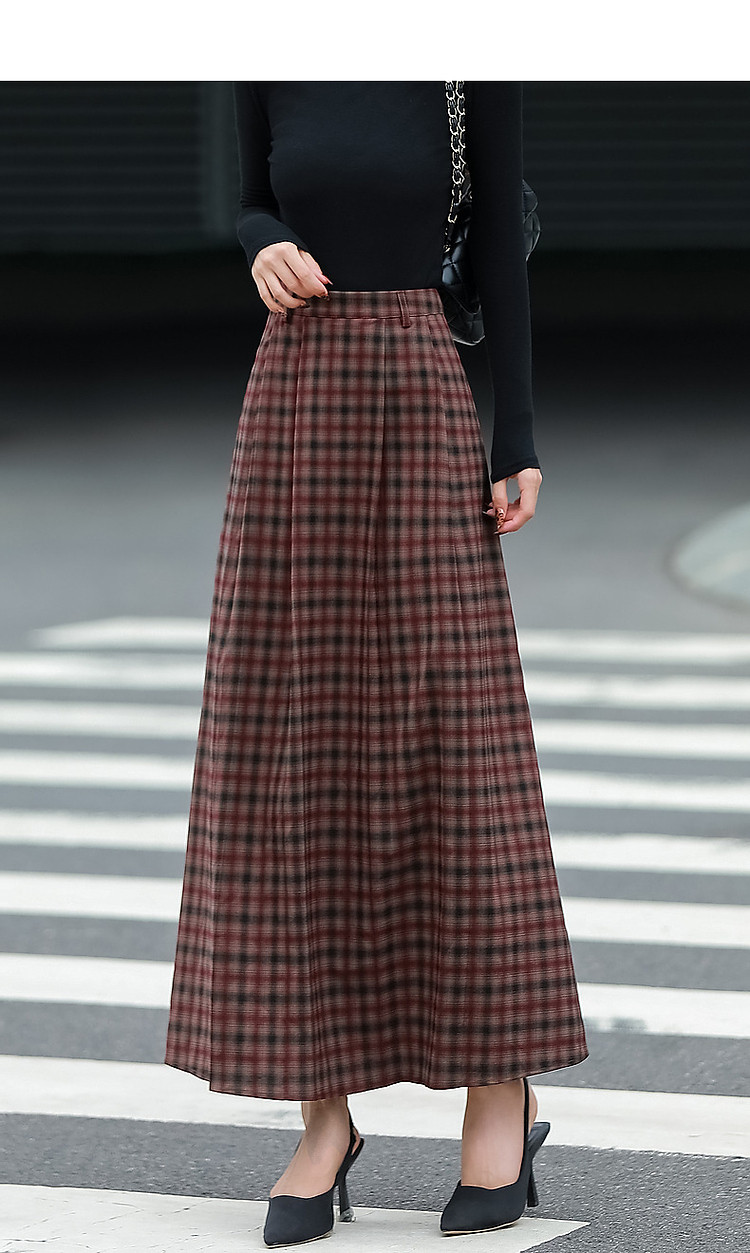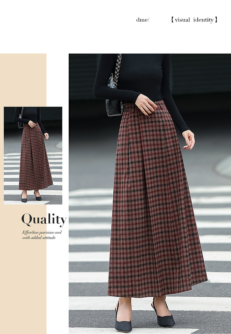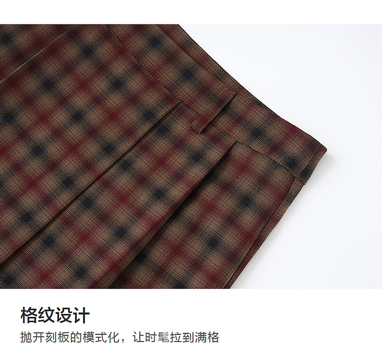 商品名称:【复古女神降临】春秋轻熟优雅高腰A字百褶裙格纹气质好搭半身裙 359809