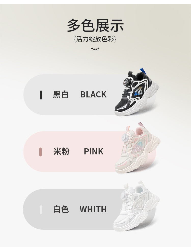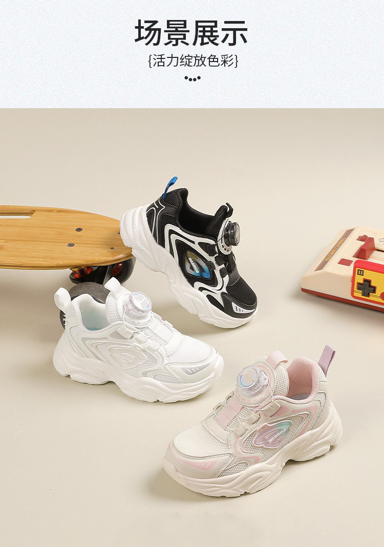 商品名称:【旋转纽扣】春季舒适软底儿童板鞋男女童轻便耐磨网面休闲跑步鞋 218909