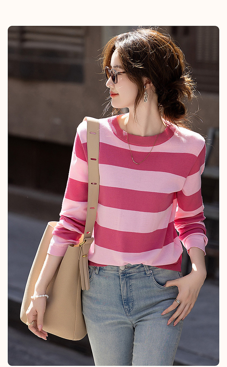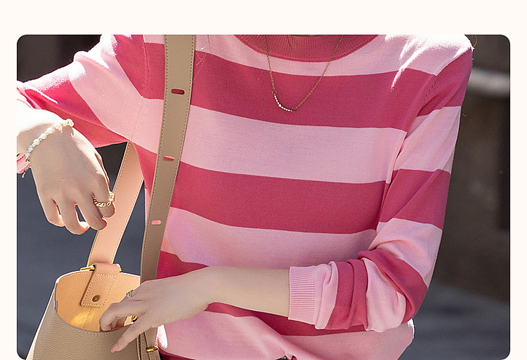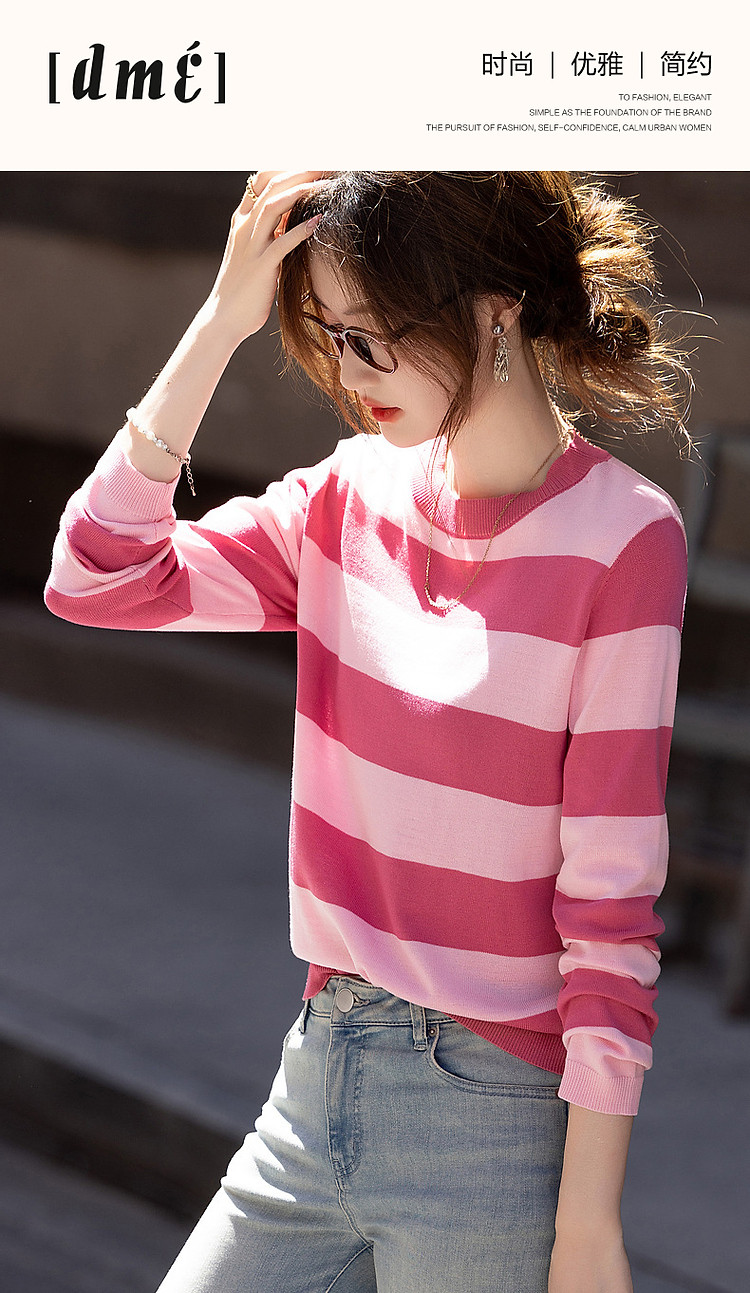 商品名称:【糖分不超标】夏多巴胺拼色线衫轻薄松弛高频好搭针织衫女上衣 982977