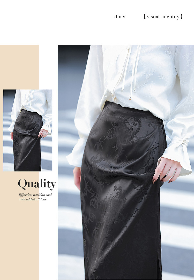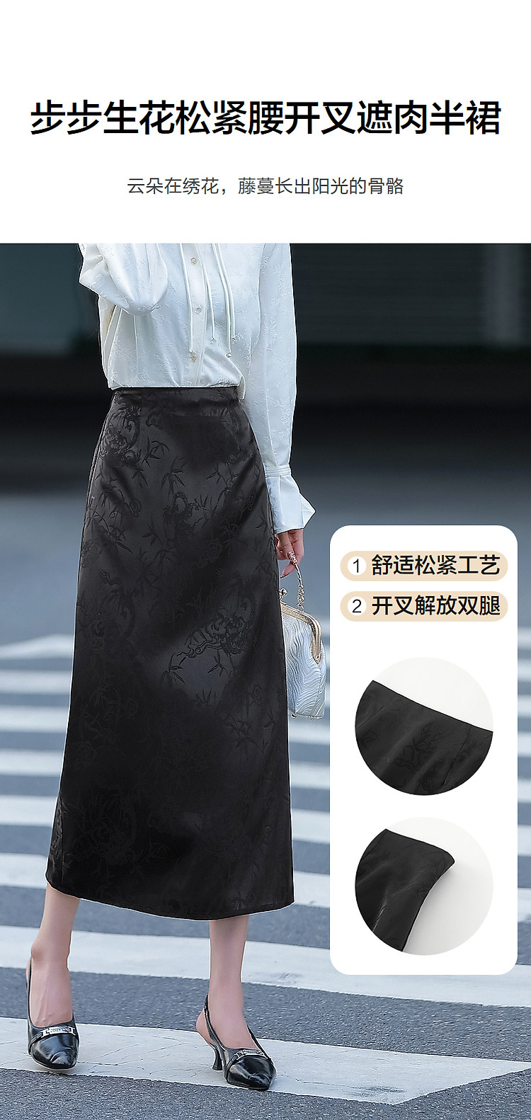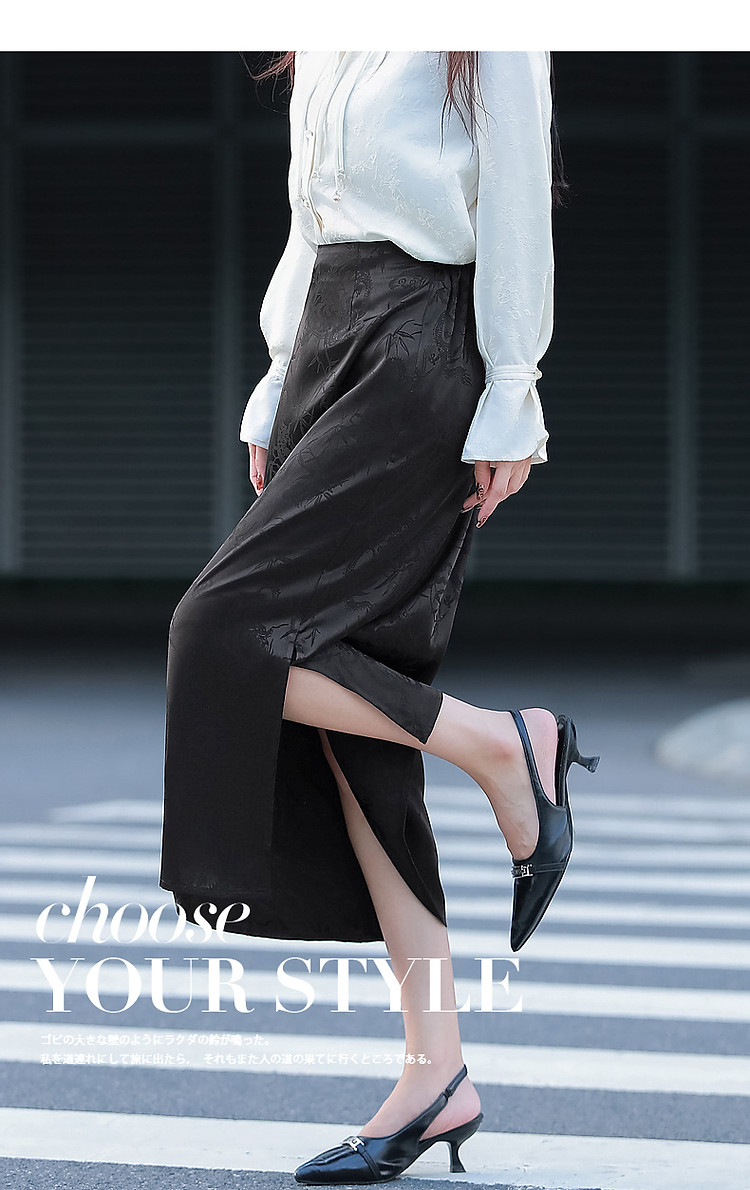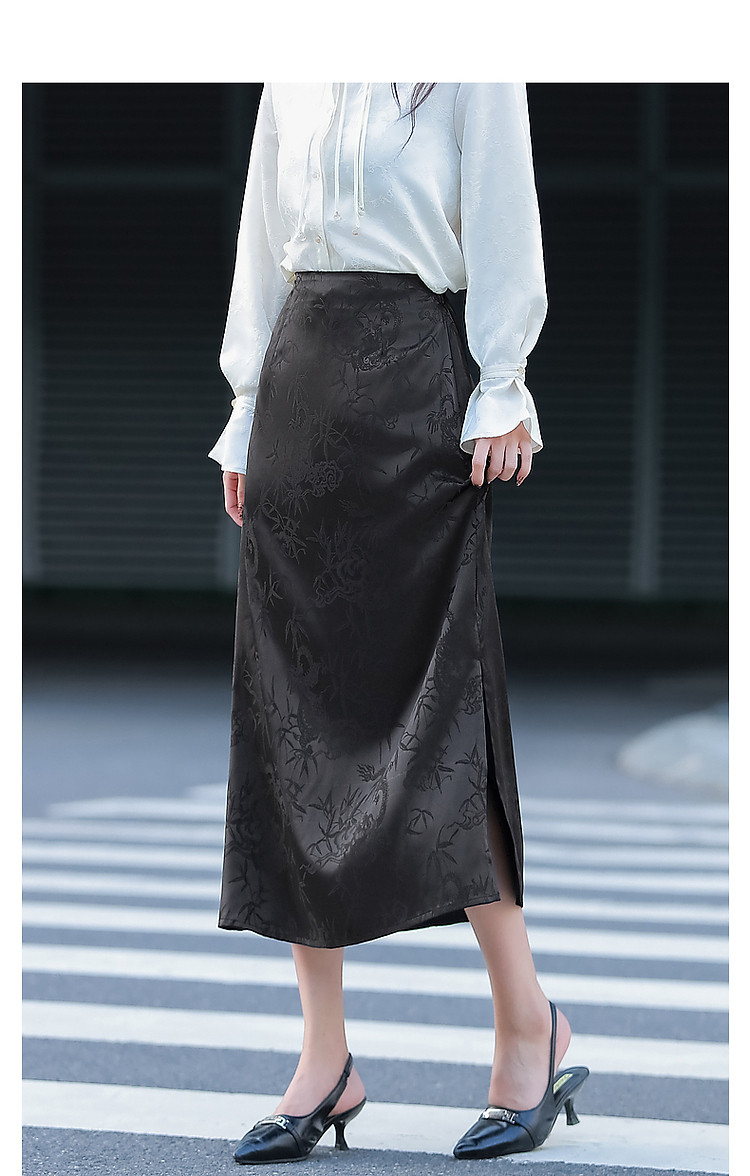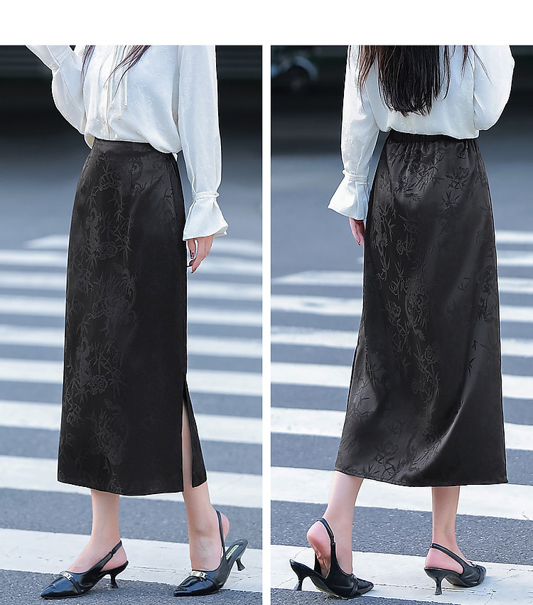 商品名称:【步步生花】秋国风新中式舒适松紧腰时髦开叉遮肉女式半身裙 402113