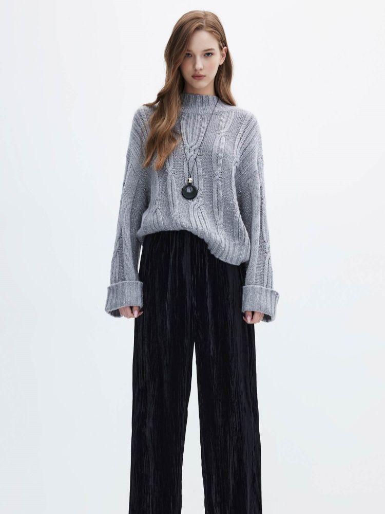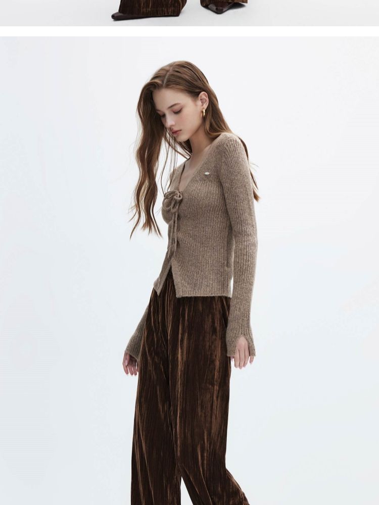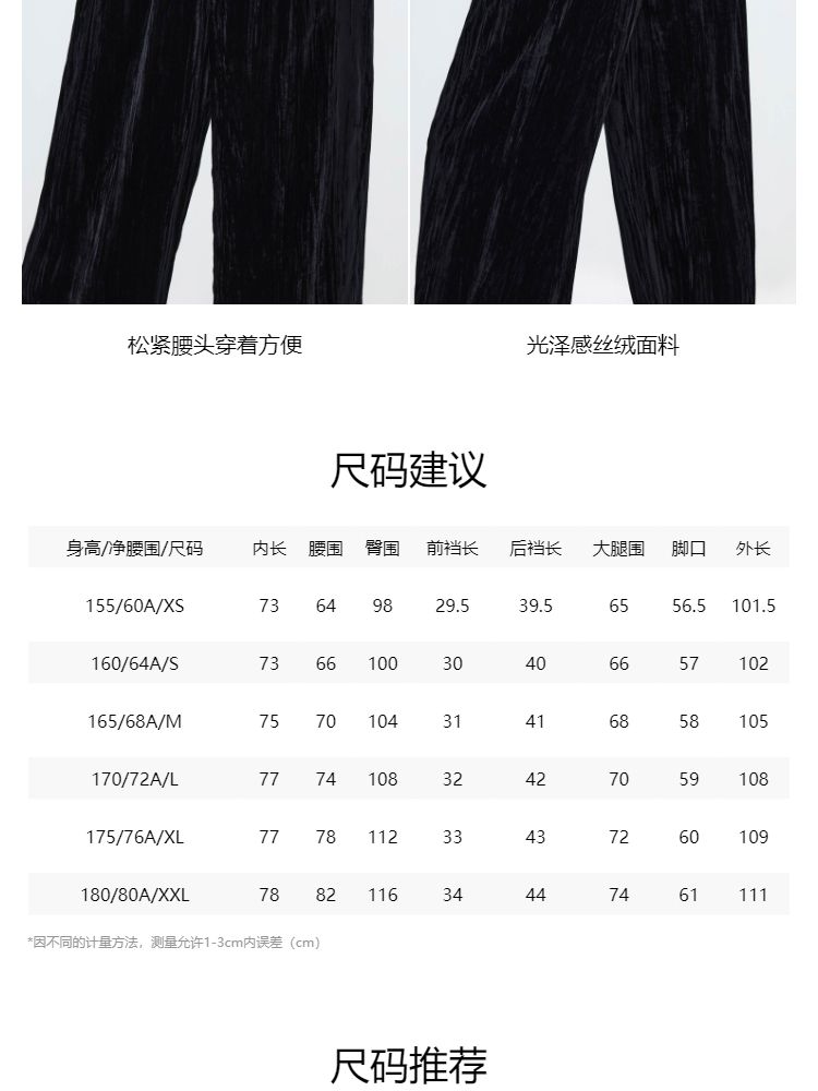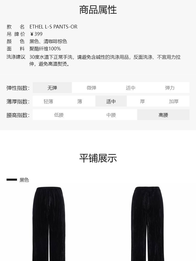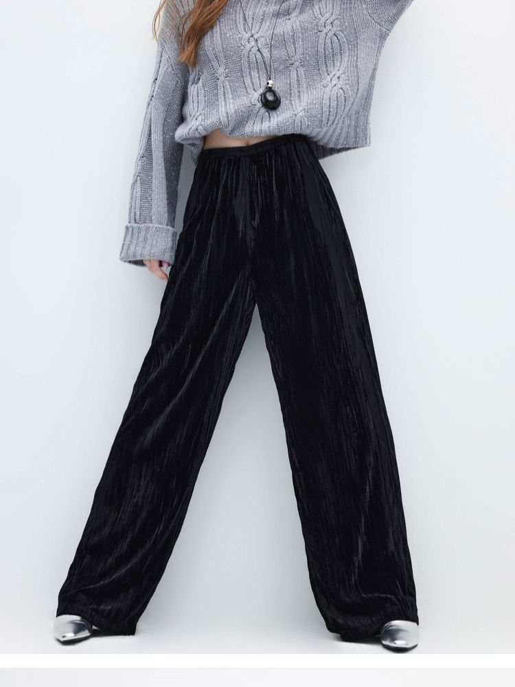 商品名称:【宽松高腰】夏季简约宽松丝绒松紧腰高腰时尚休闲裤女 327578