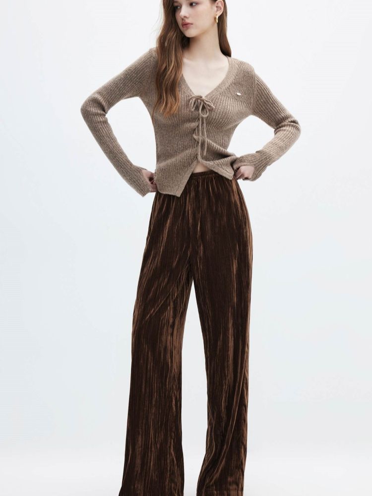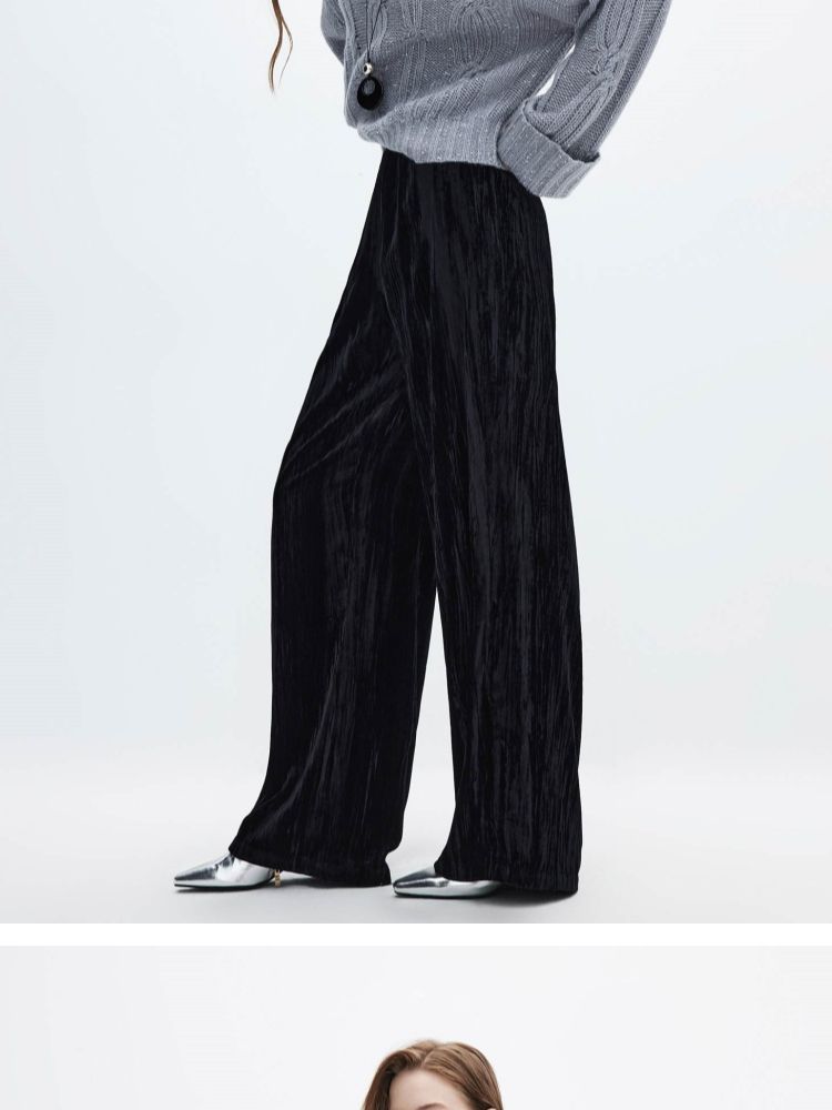 【宽松高腰】夏季简约宽松丝绒松紧腰高腰时尚休闲裤女 327578