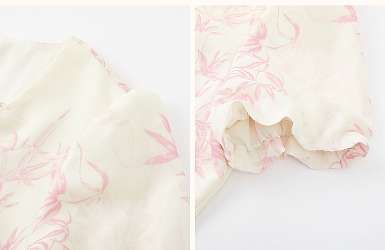 【鸢花戏梦】春秋法式淑女可脱卸珍珠链条泡泡袖印花连衣裙女 520129
