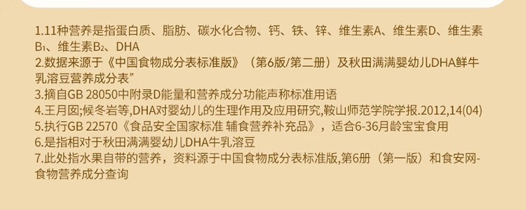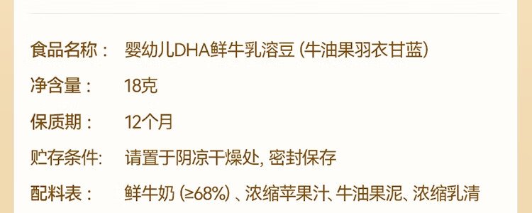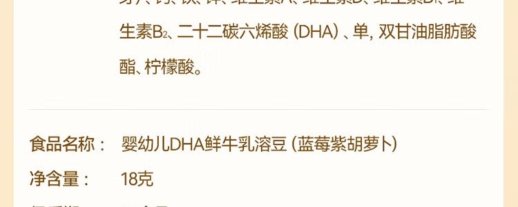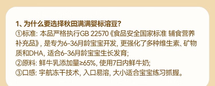 商品名称:秋田满满 婴幼儿DHA牛乳溶豆(浓醇奶香)18g