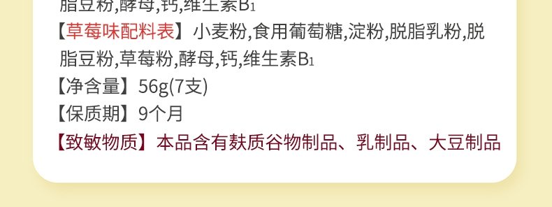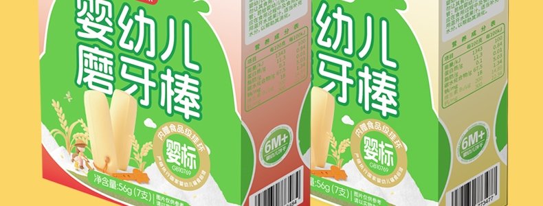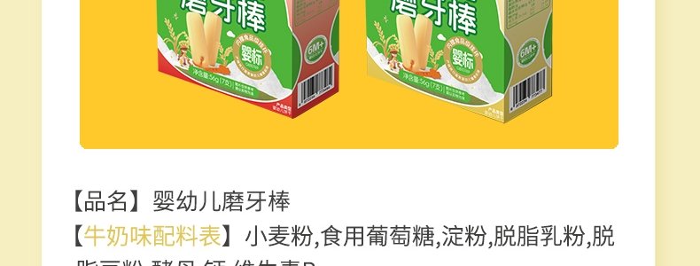 商品名称:朗小贝 婴幼儿磨牙棒 56g*2盒(牛奶味+草莓味)