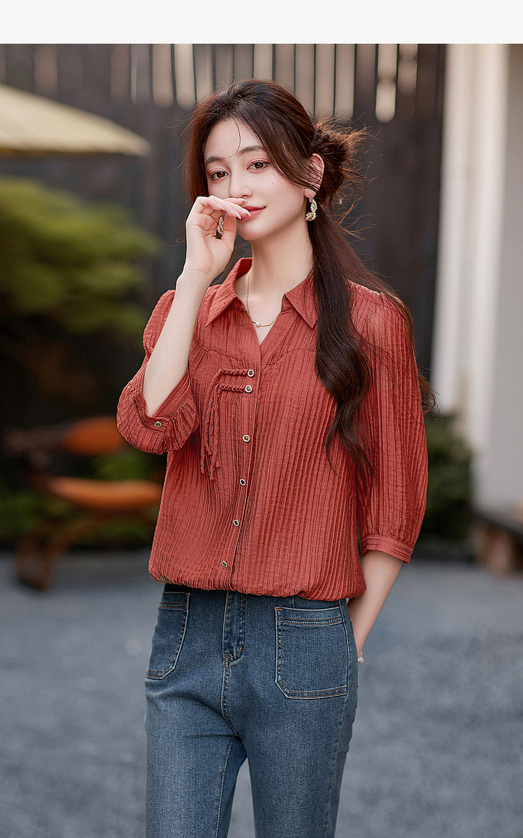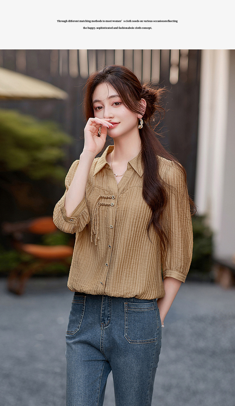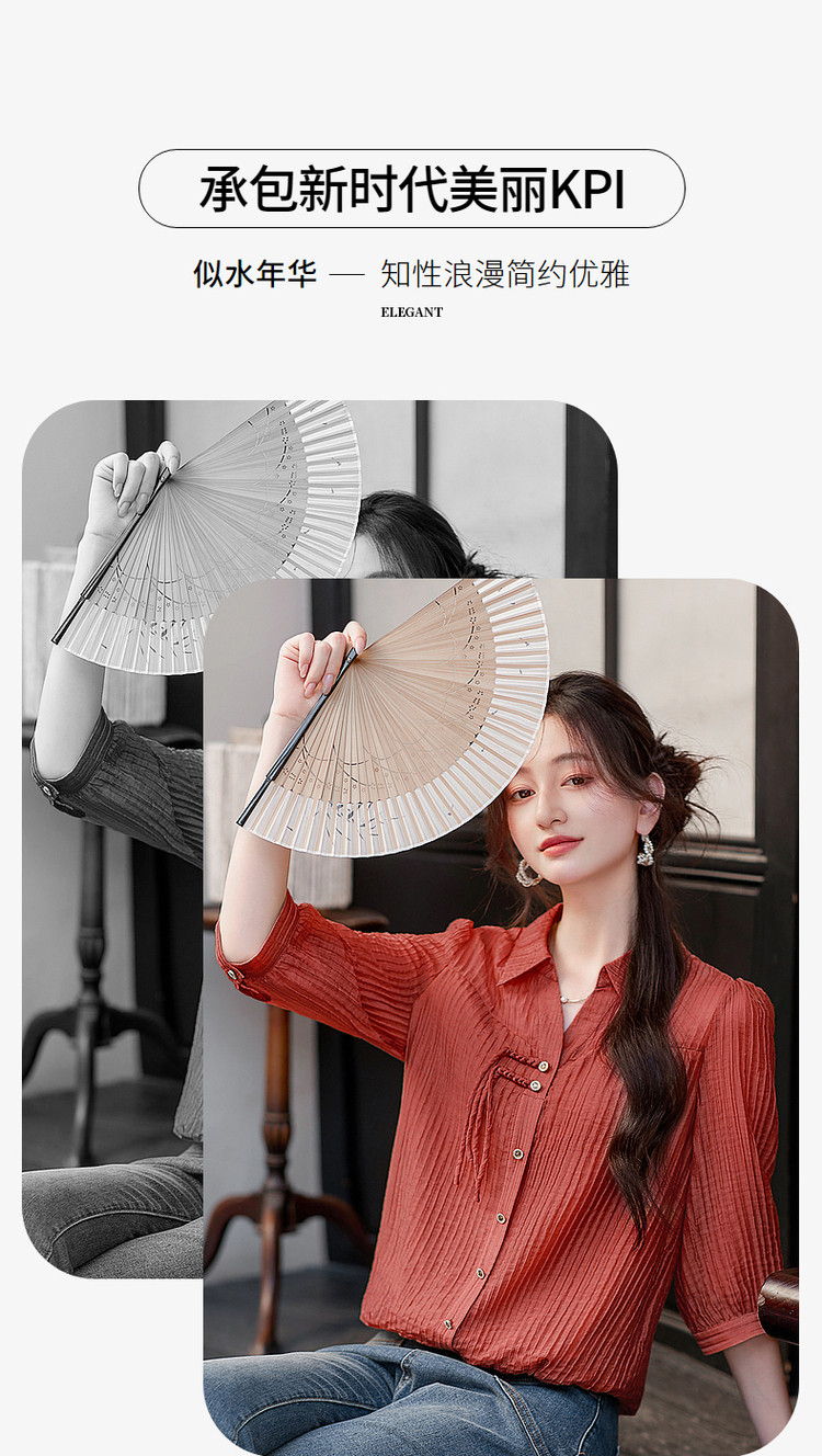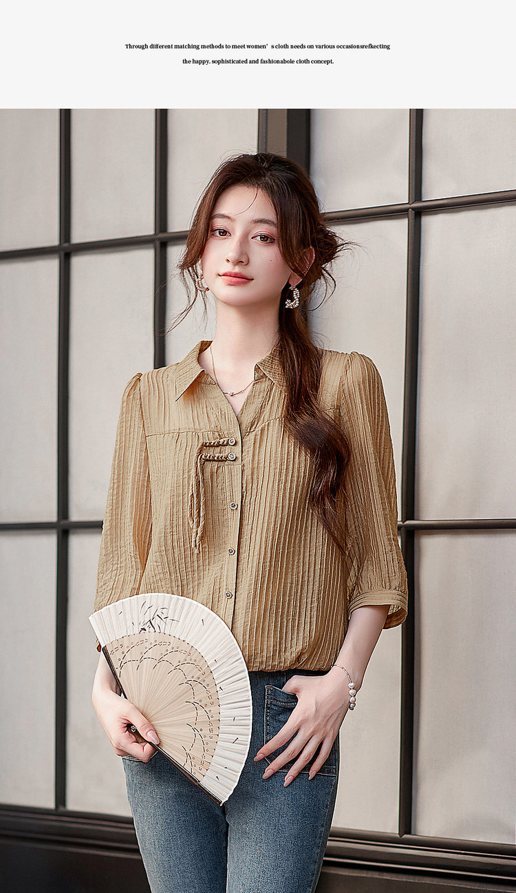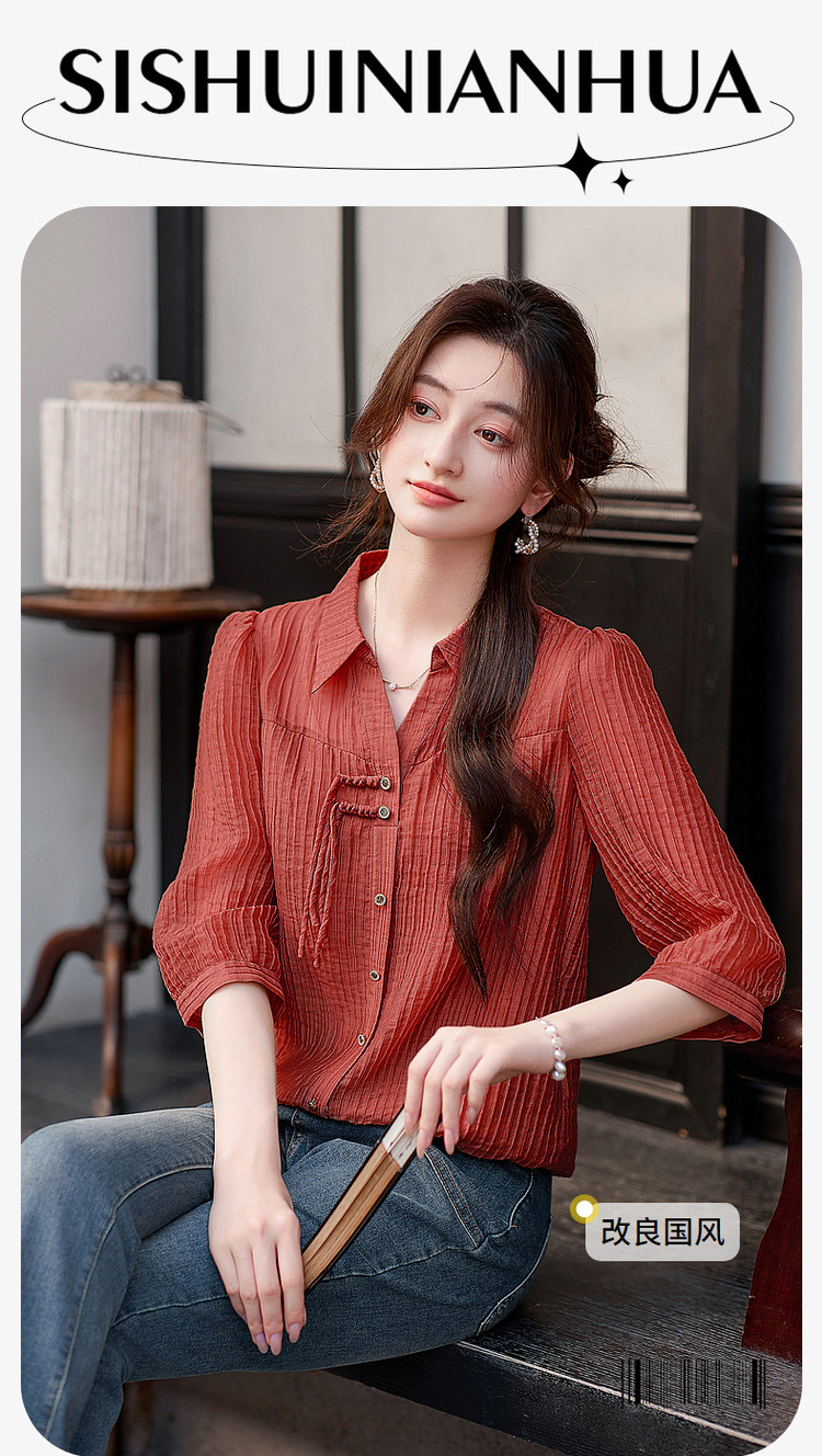 商品名称:春衬衫新中式国风上衣七分袖小衫女 075992