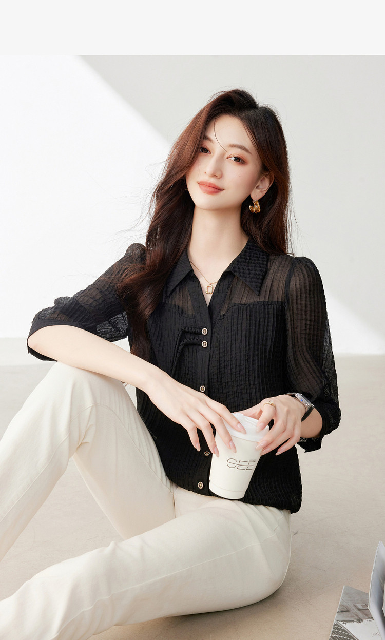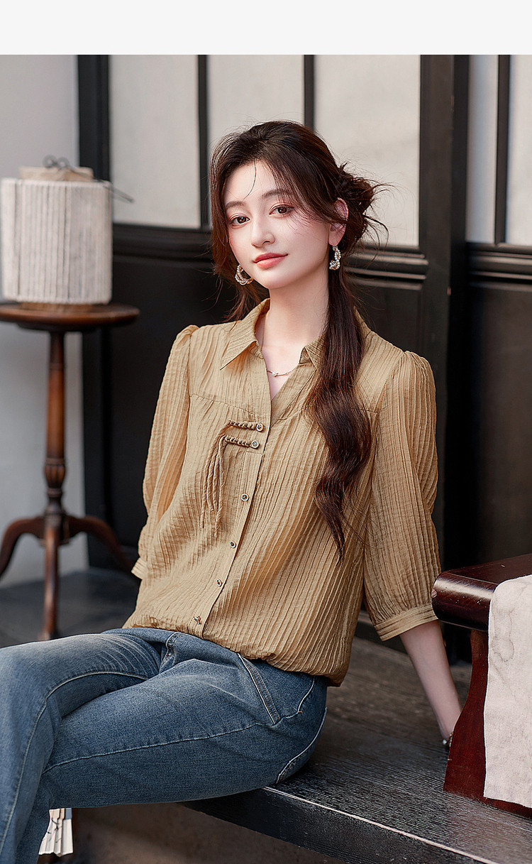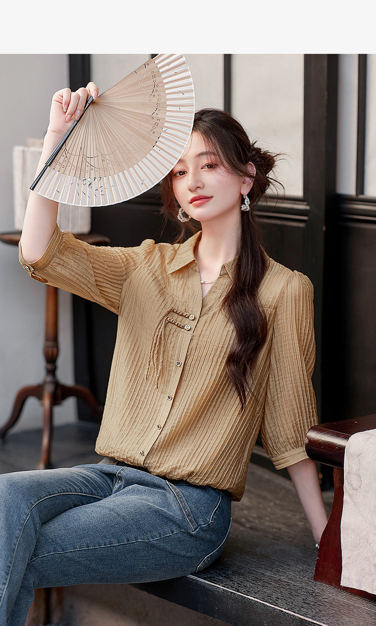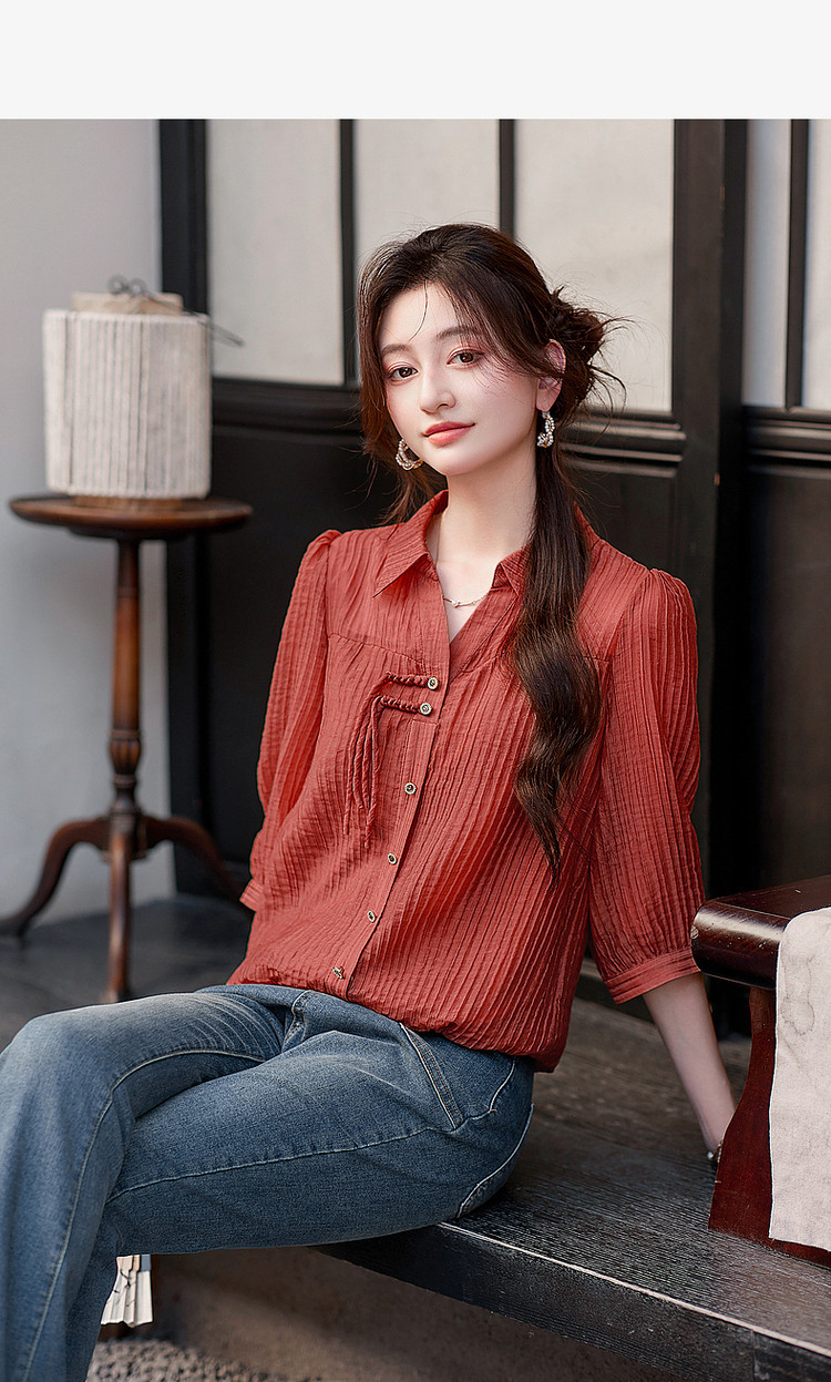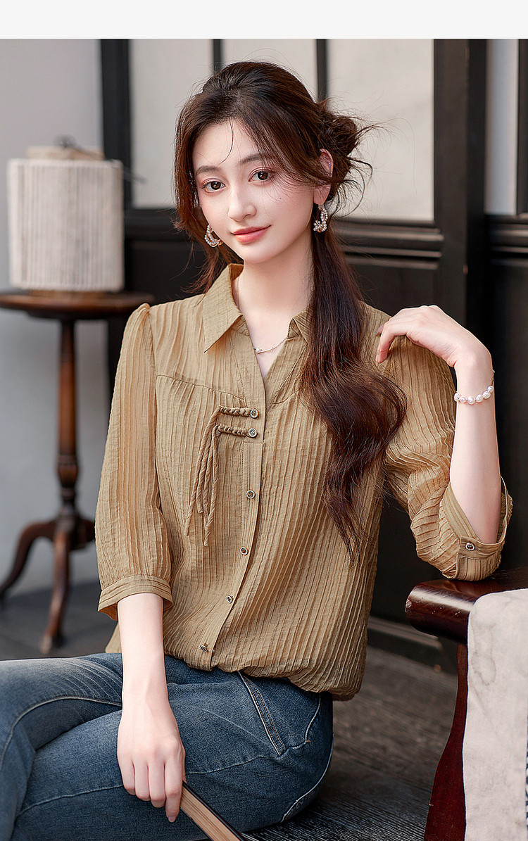 商品名称:春衬衫新中式国风上衣七分袖小衫女 075992