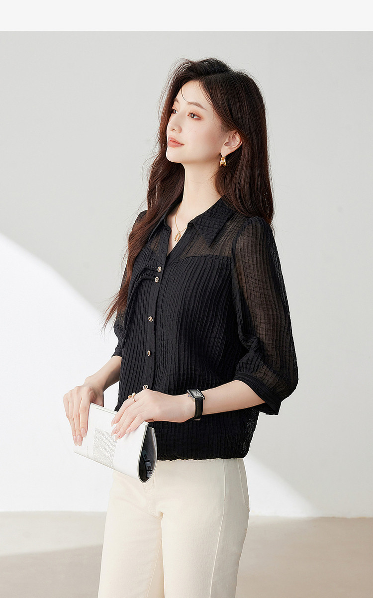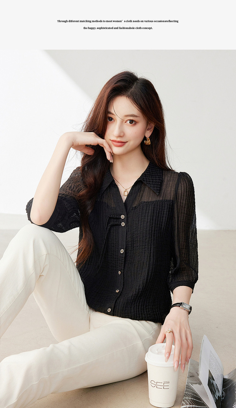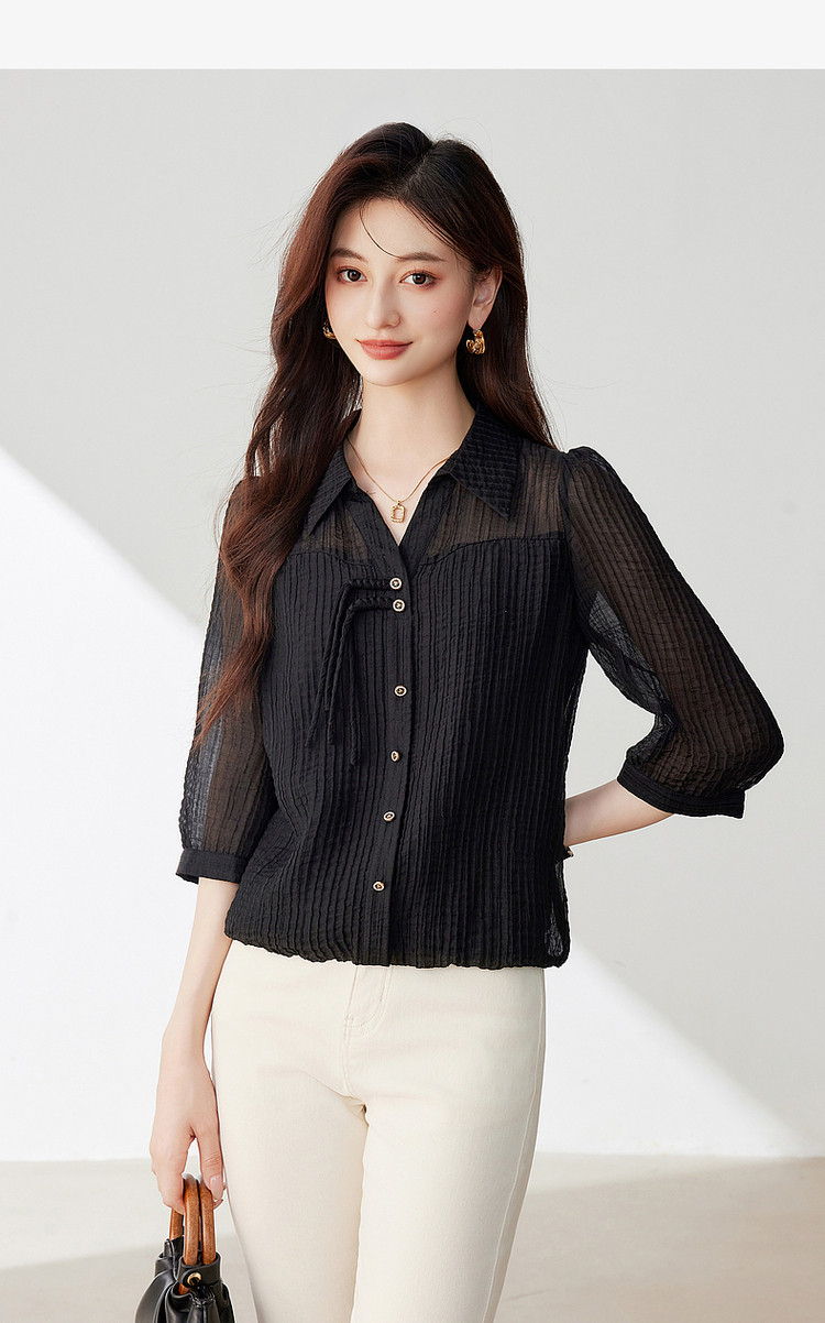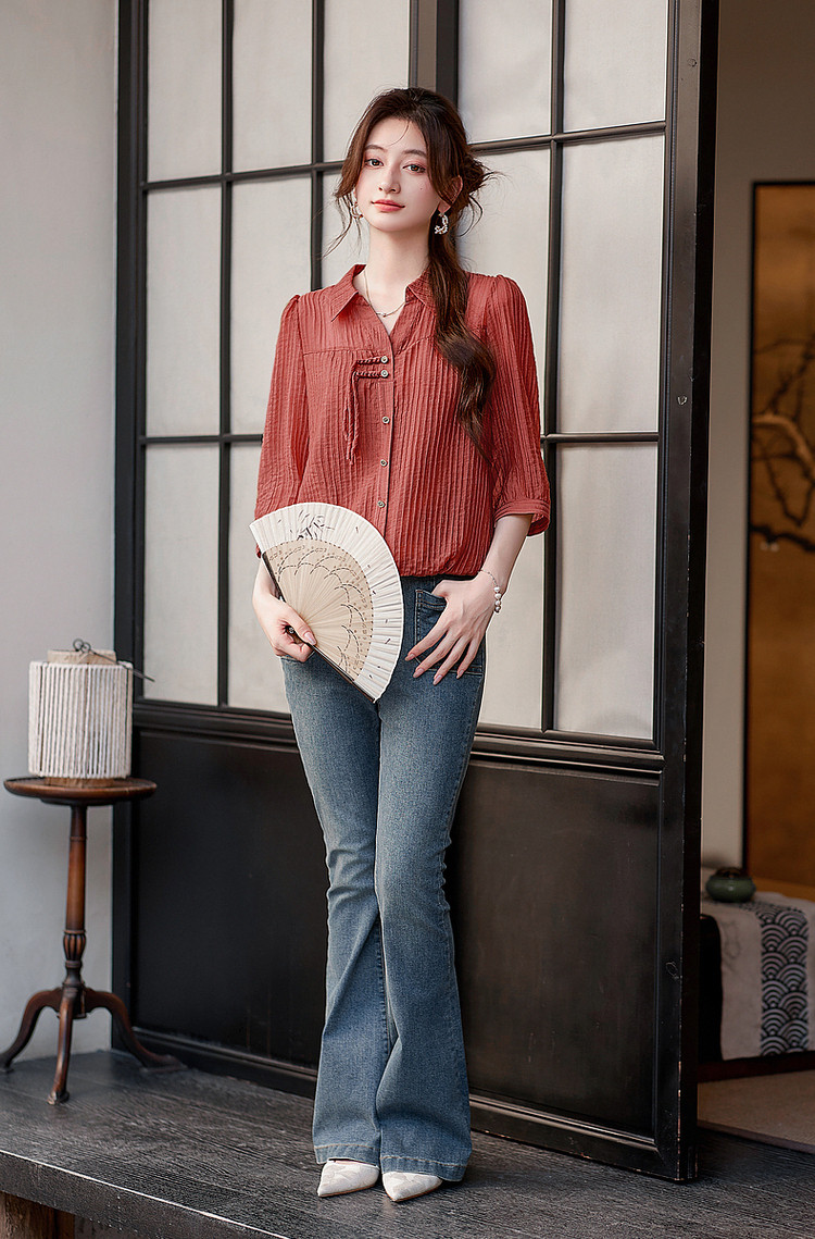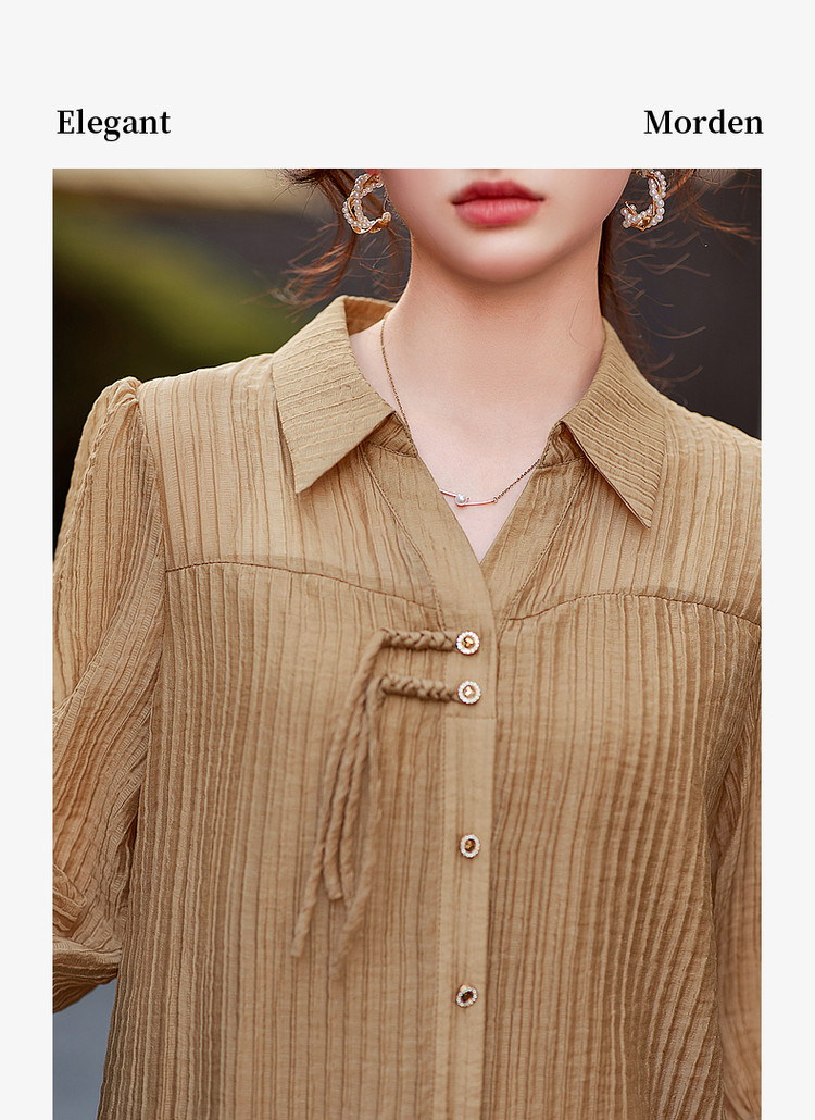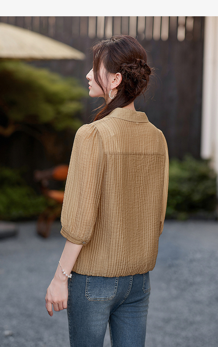商品名称:春衬衫新中式国风上衣七分袖小衫女 075992