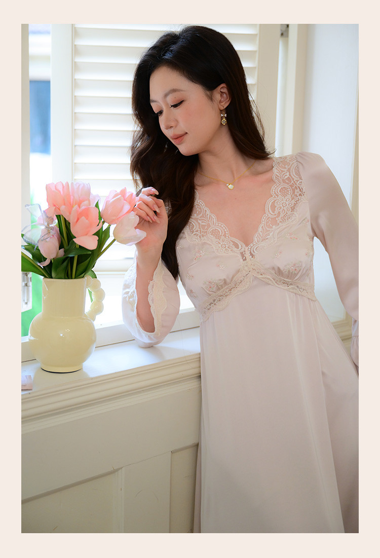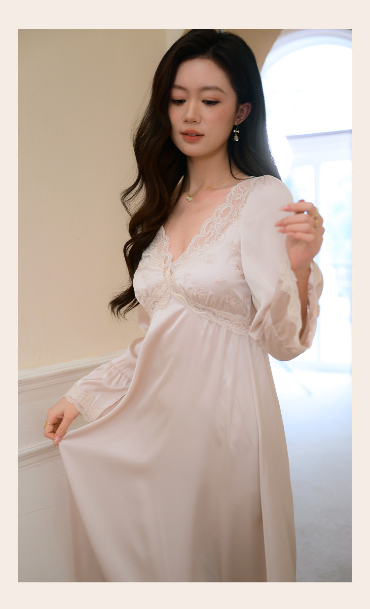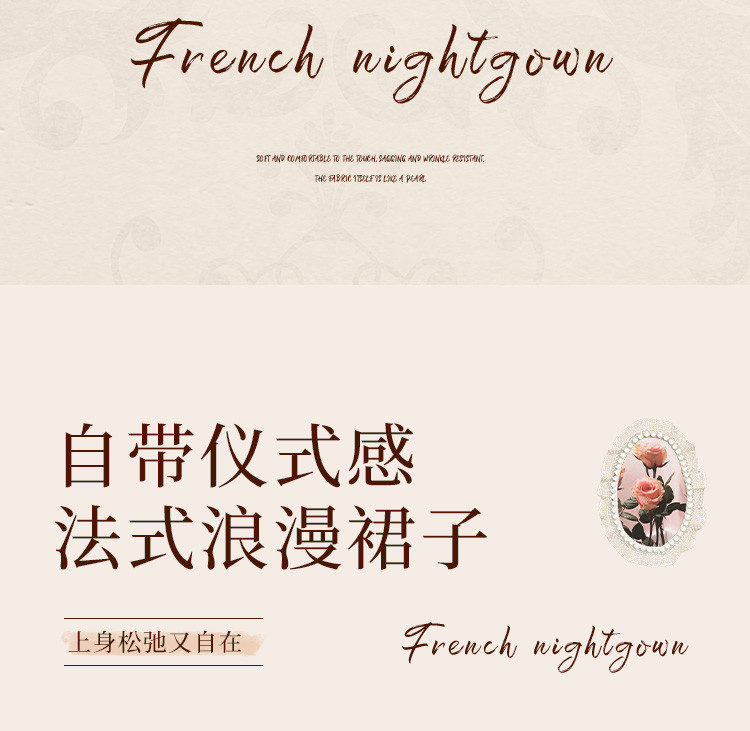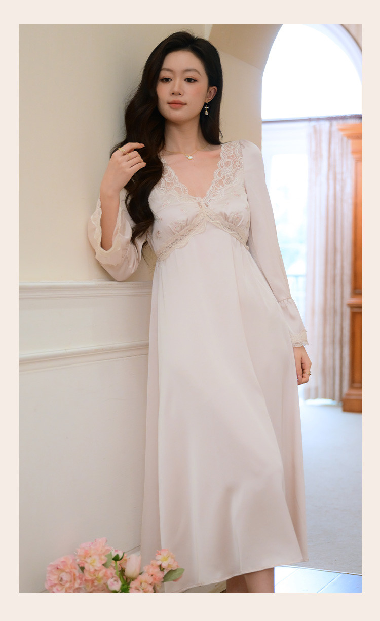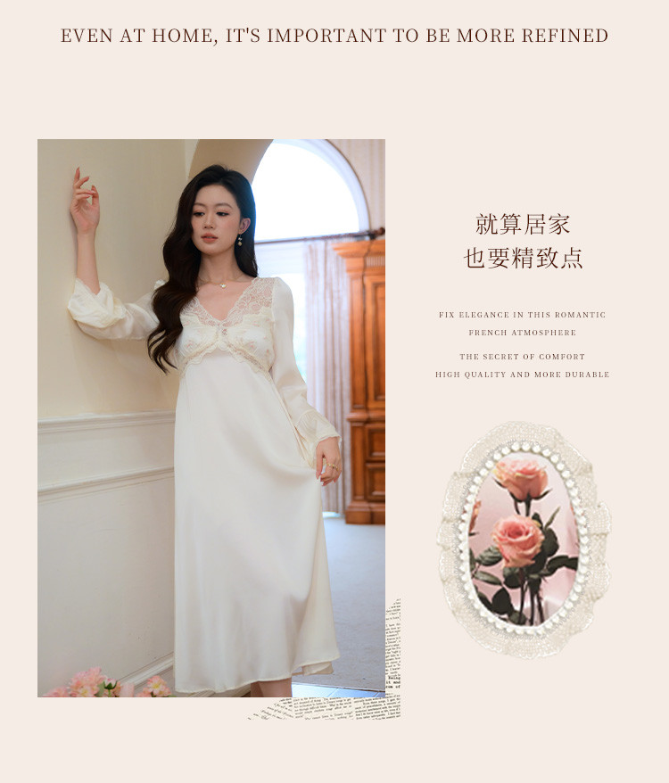 商品名称:【法式纯欲】带胸垫冰丝睡裙女士春夏性感蕾丝V领缎感家居服睡衣 955467