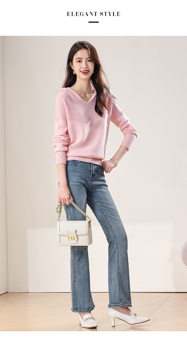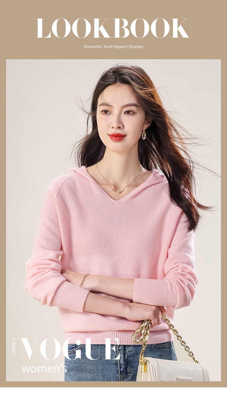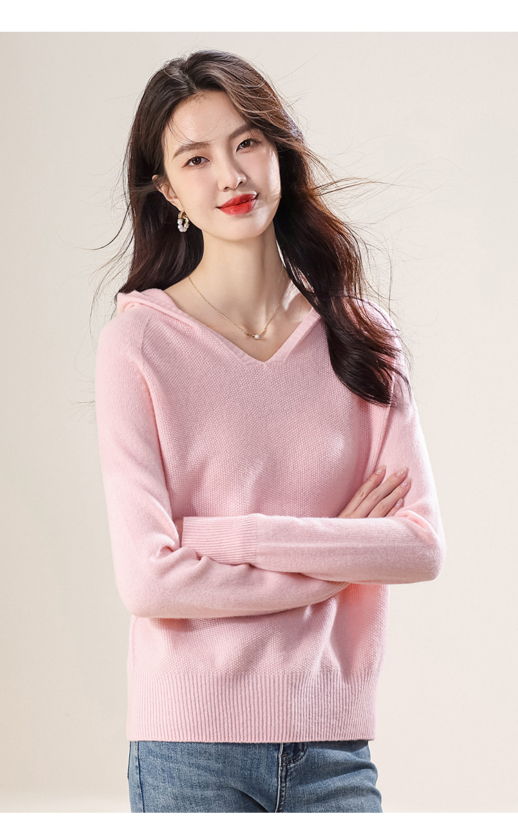 【100%羊毛】无缝纯羊毛连帽针织衫毛衣卫衣羊毛衫女 498003