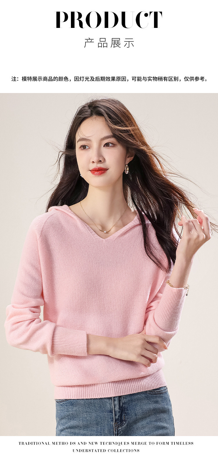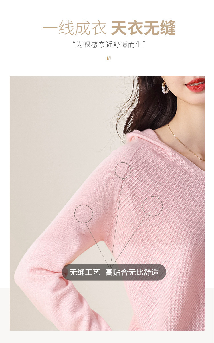 商品名称:【100%羊毛】无缝纯羊毛连帽针织衫毛衣卫衣羊毛衫女 498003