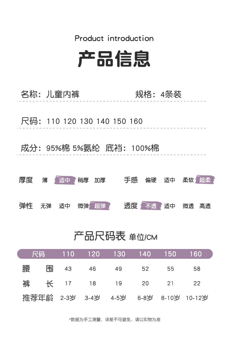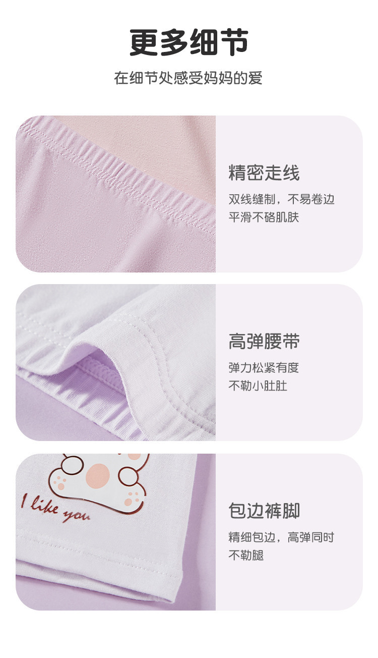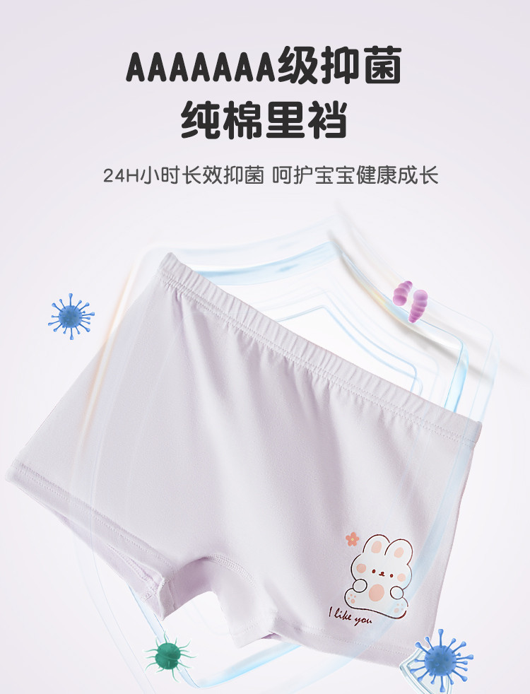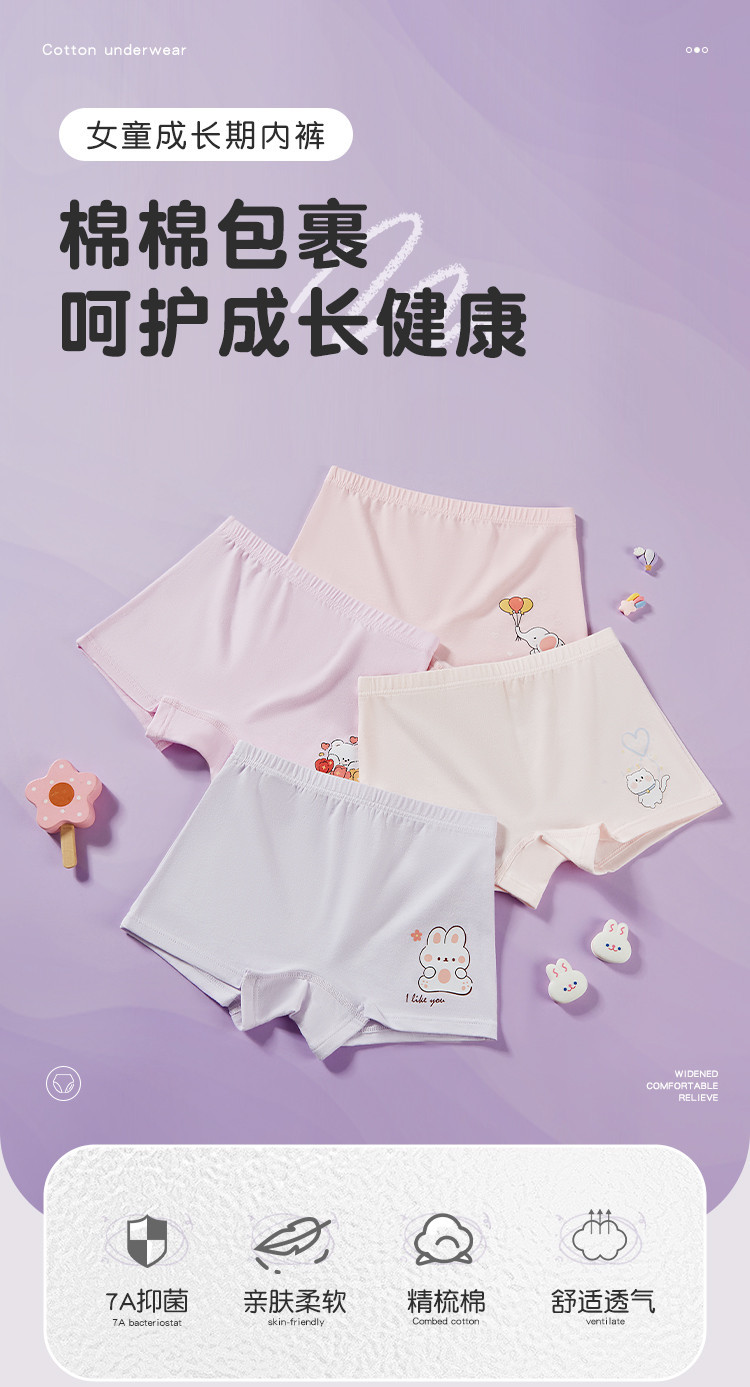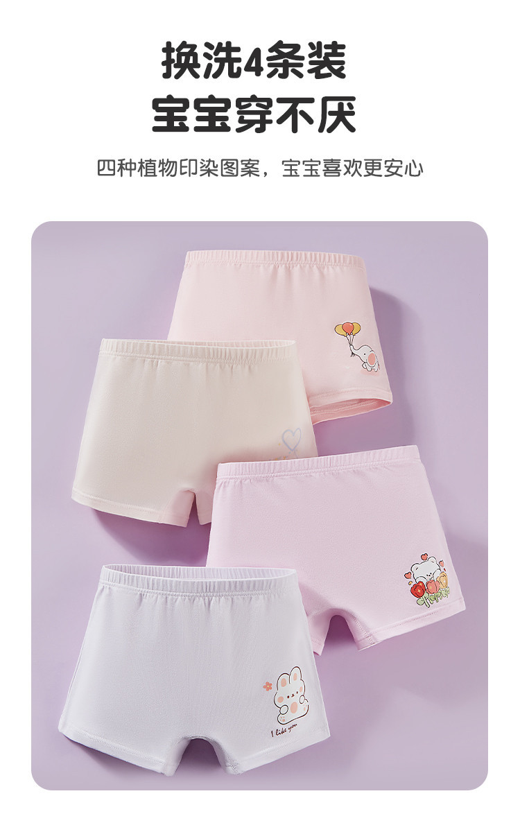 商品名称:【纯棉底裆7A抑菌】女童内裤4条装发育期A类儿童内裤中大童 955083