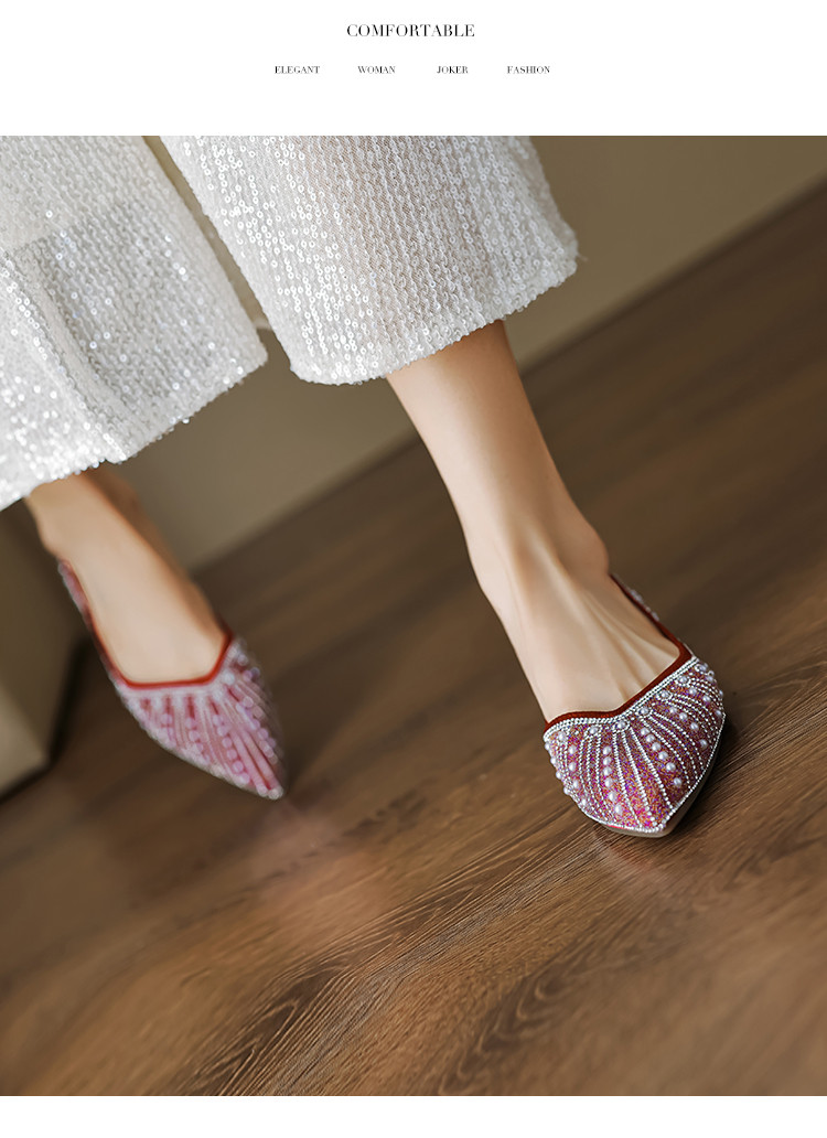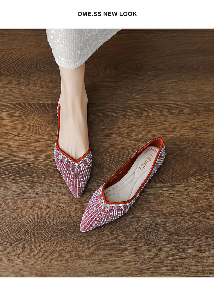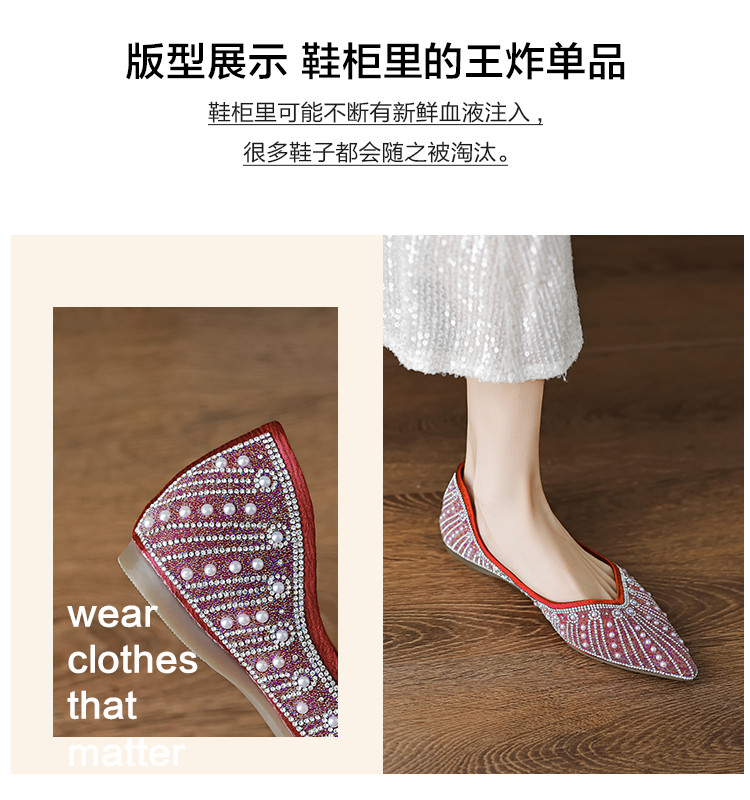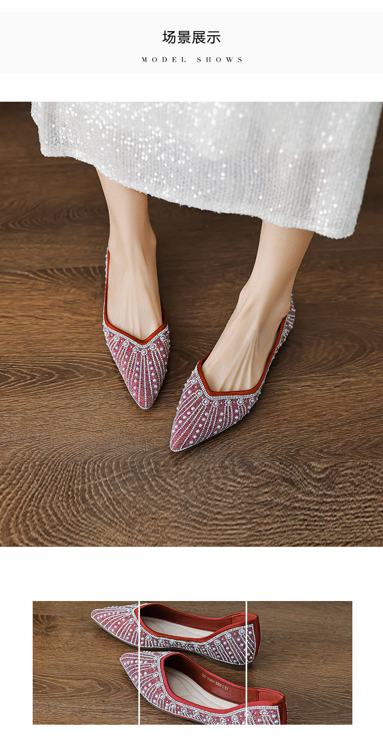 商品名称:2024秋季简约高级感闪耀水钻温柔珍珠舒适平底婚鞋伴娘鞋礼服鞋 399041