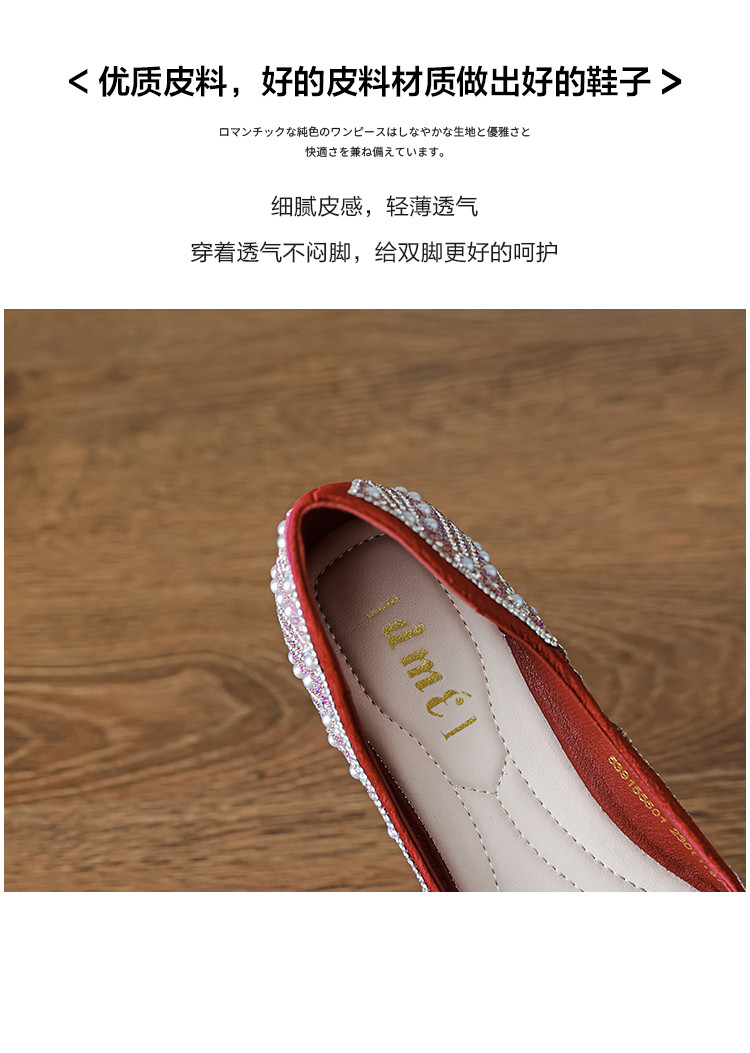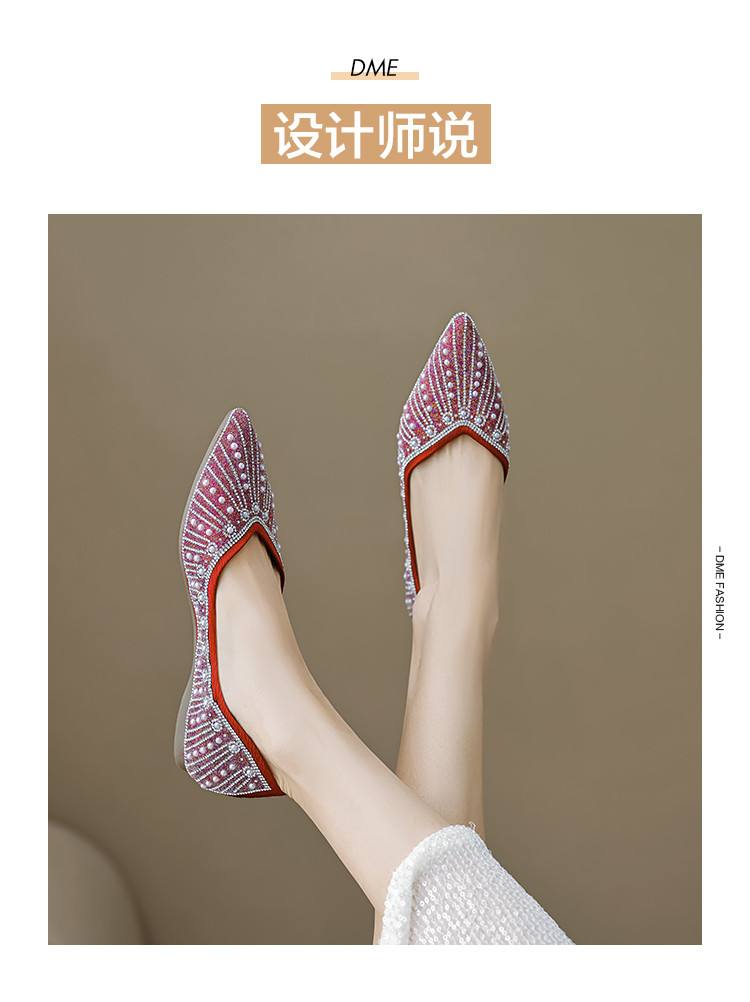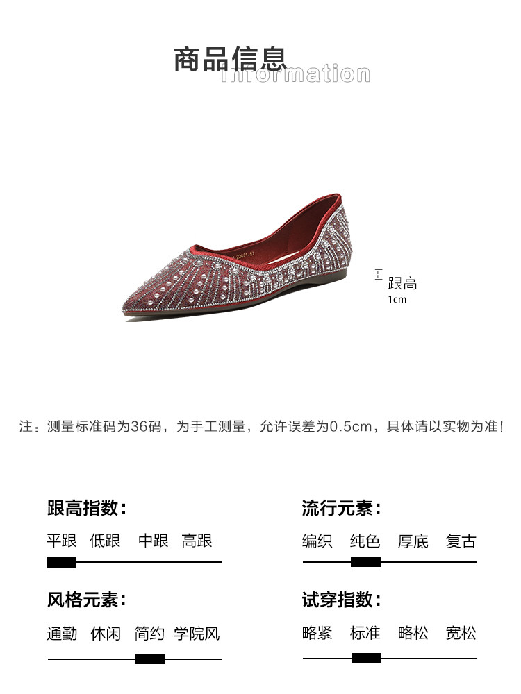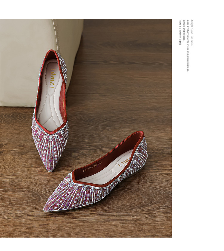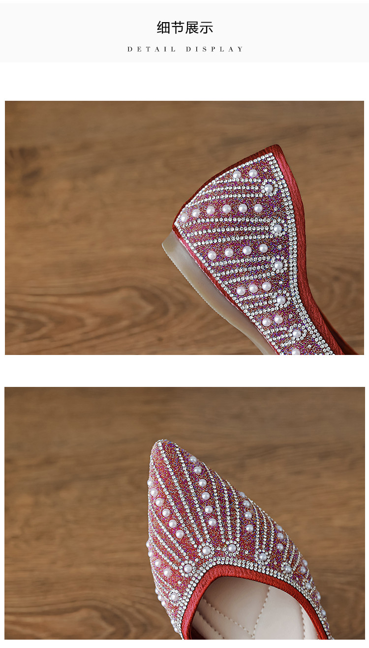 商品名称:2024秋季简约高级感闪耀水钻温柔珍珠舒适平底婚鞋伴娘鞋礼服鞋 399041