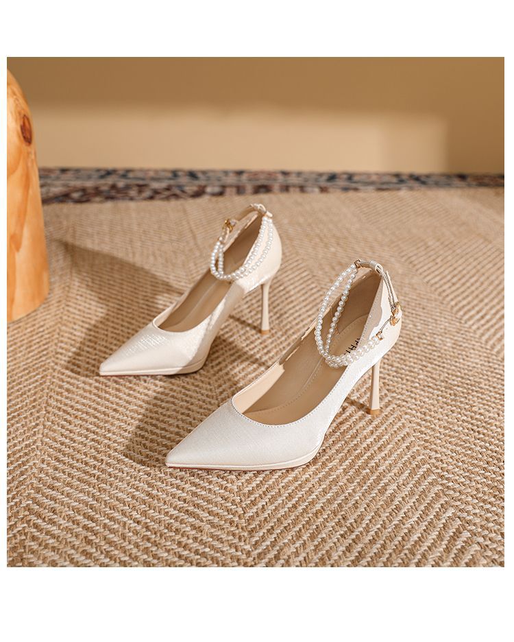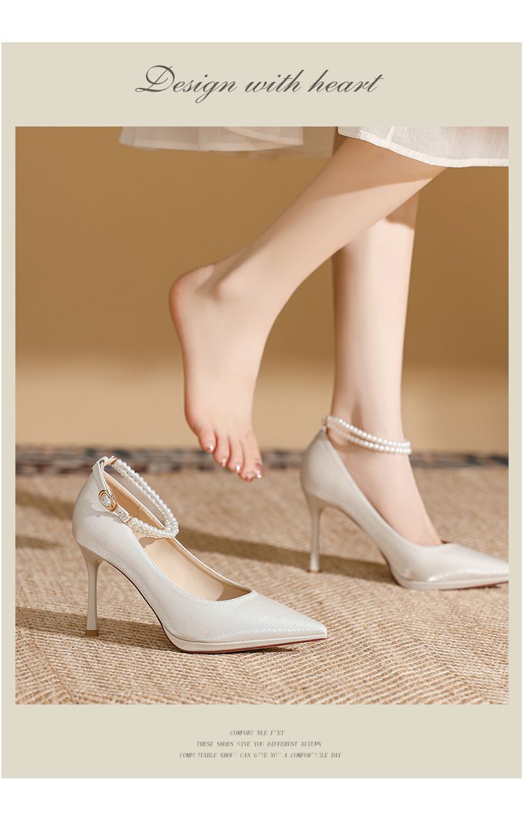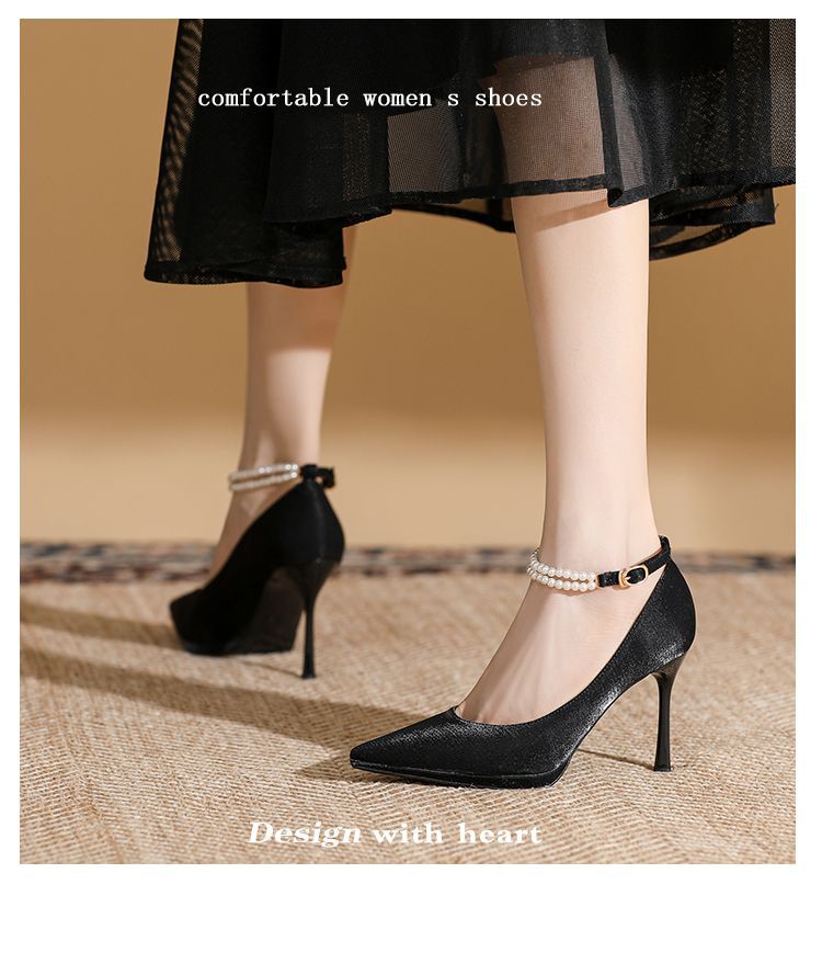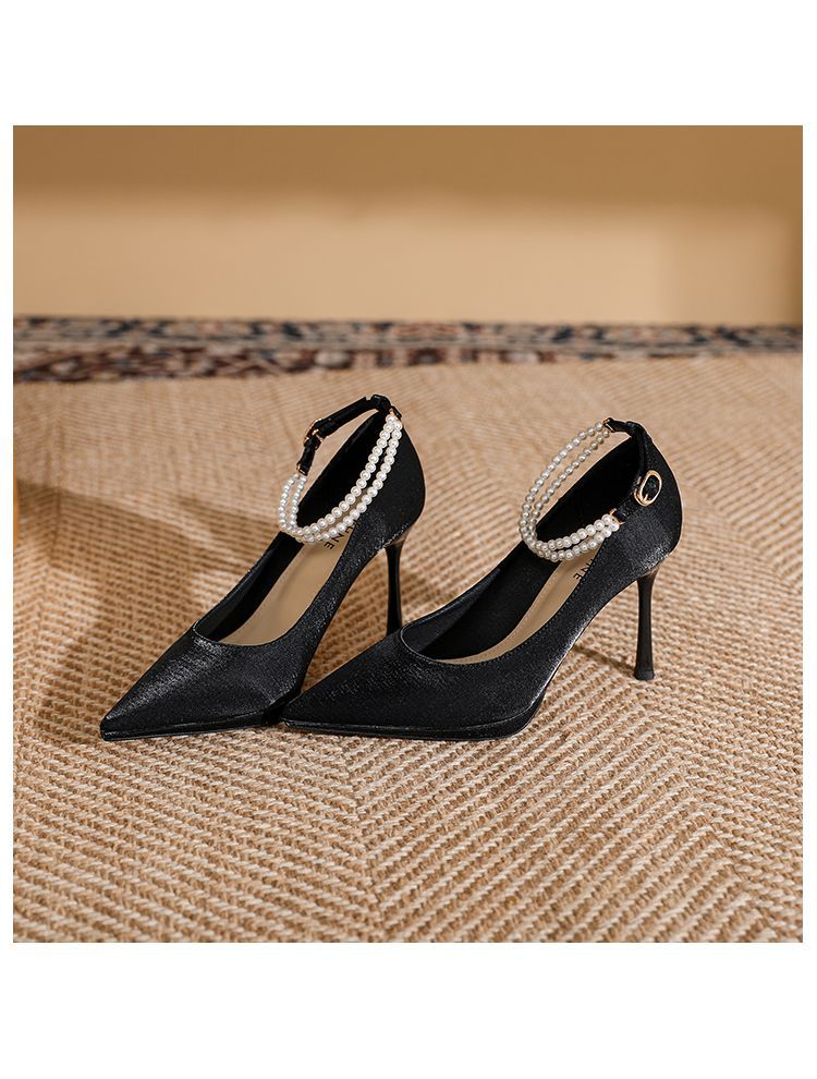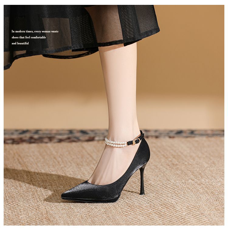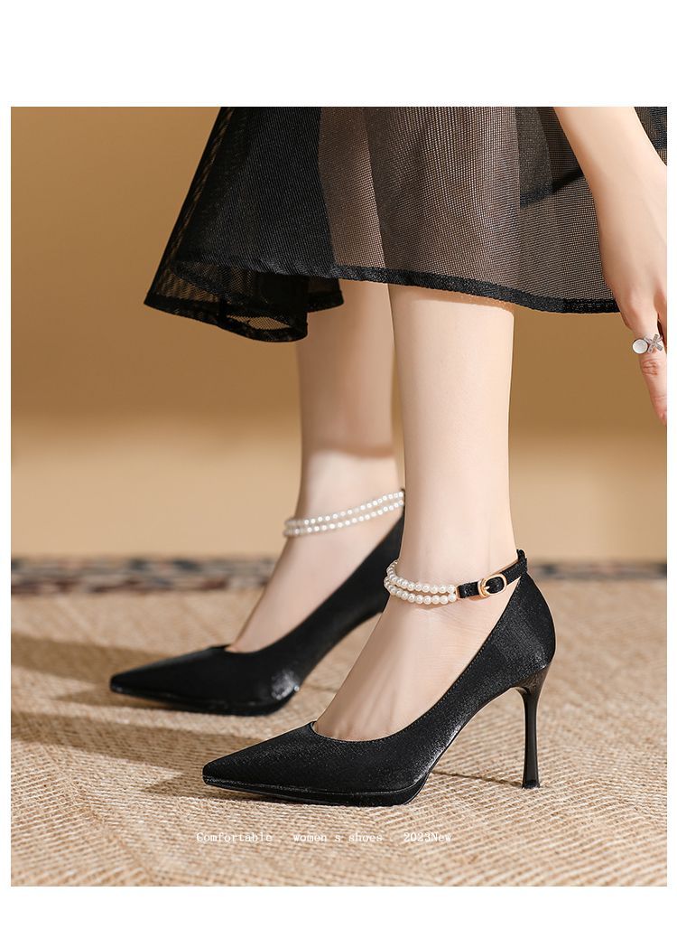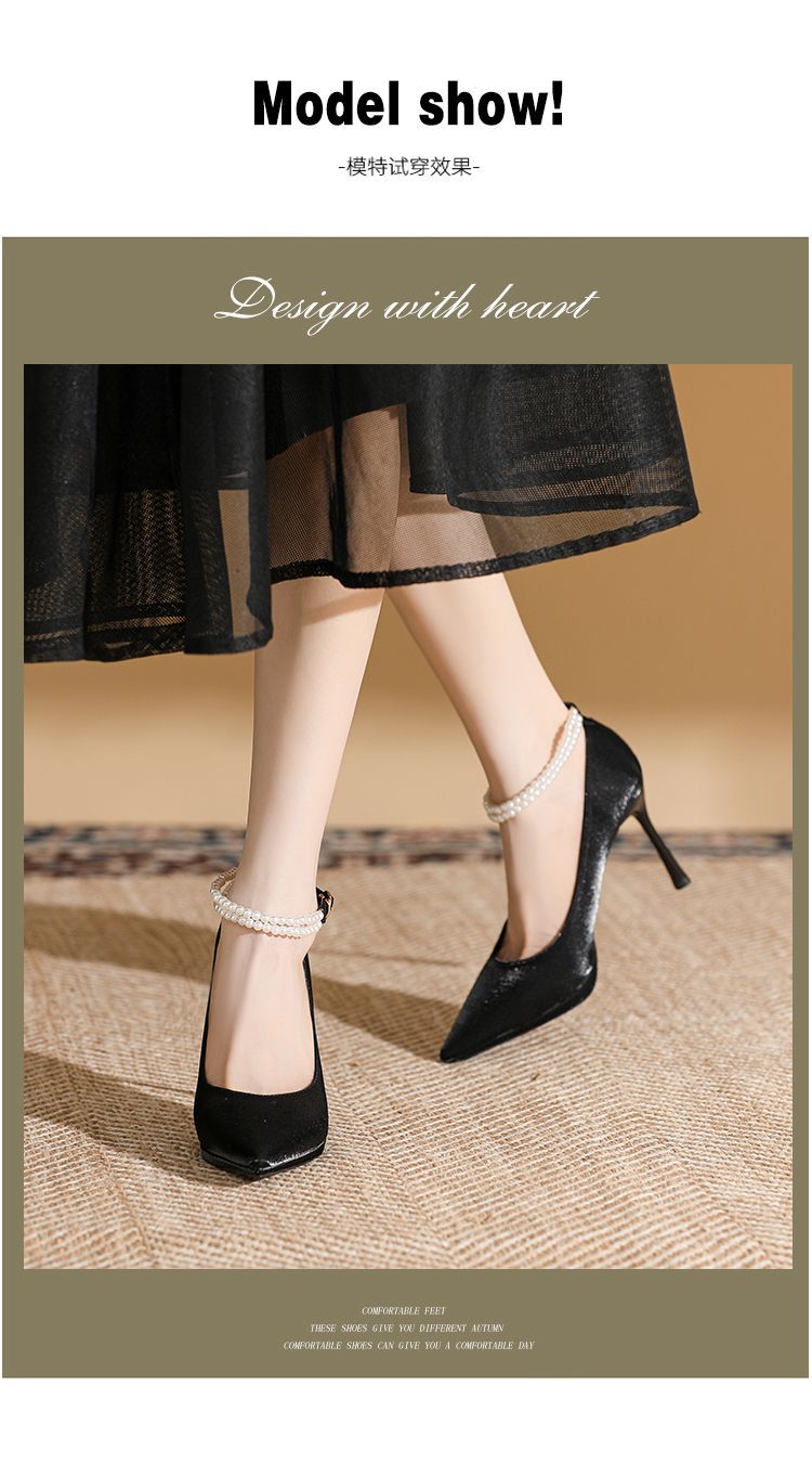 商品名称:高跟鞋女时尚春夏气质时装鞋女单鞋简约大气一脚蹬细跟商务通勤鞋 694167