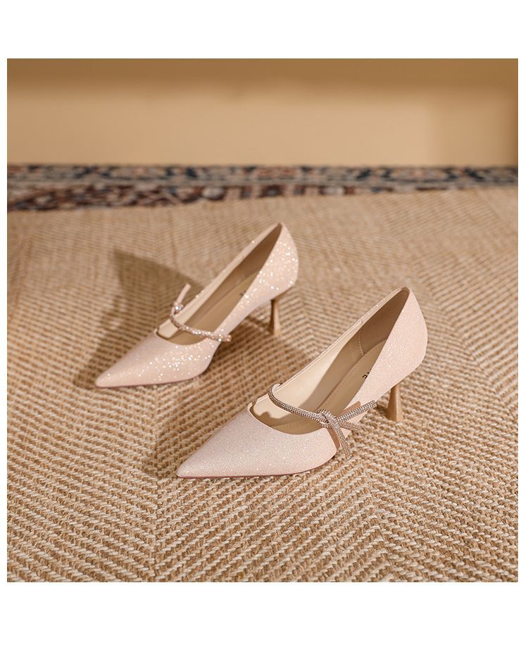 商品名称:高跟鞋女春夏时尚气质时装鞋女单鞋一脚蹬情色细跟商务通勤鞋 800663