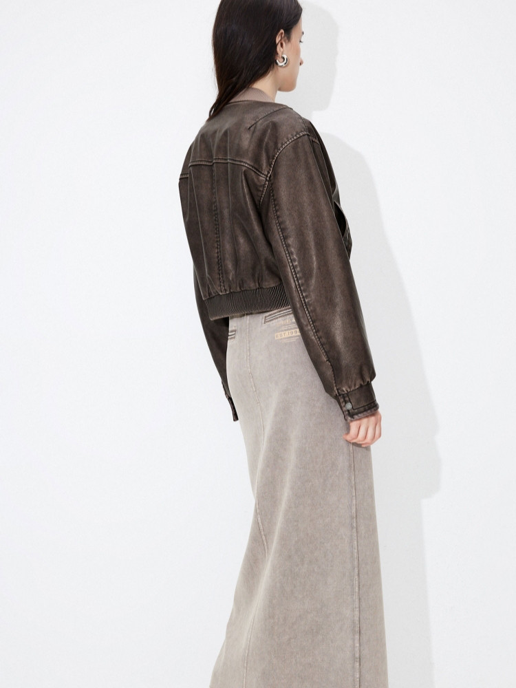 【PU】春季设计感显瘦宽松短款落肩夹克外套女 417370