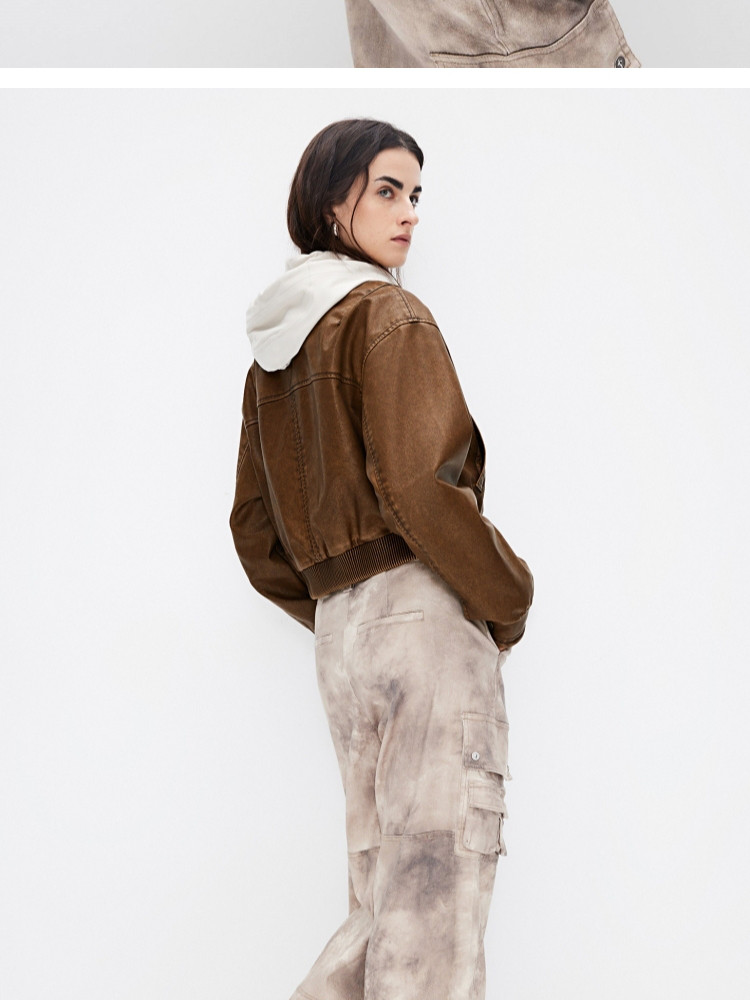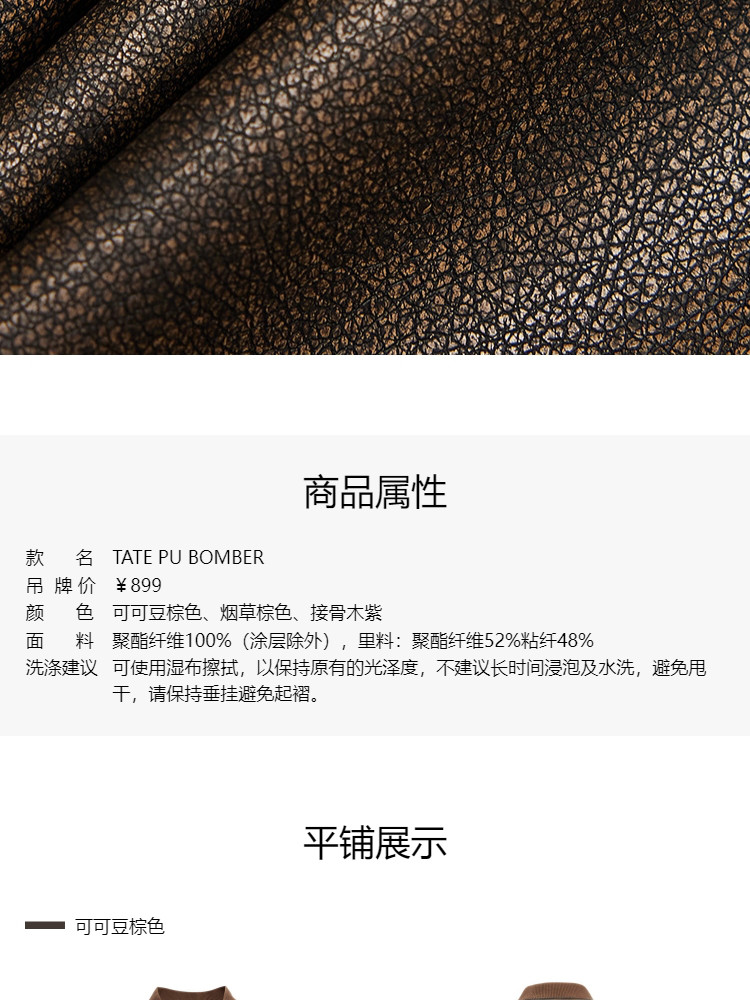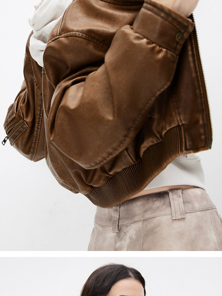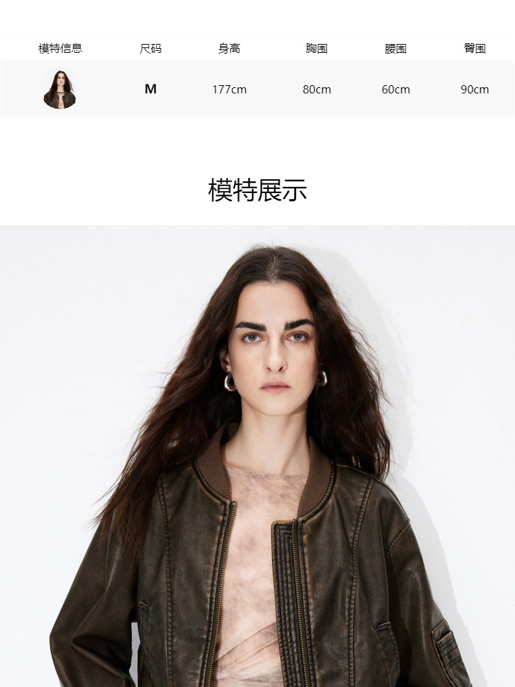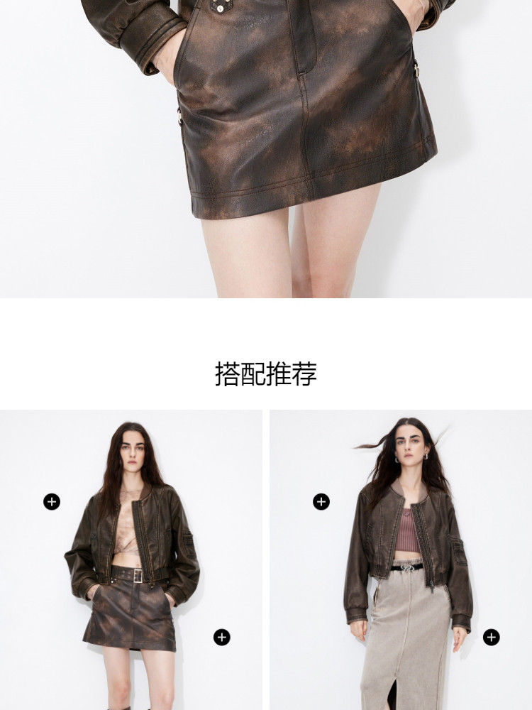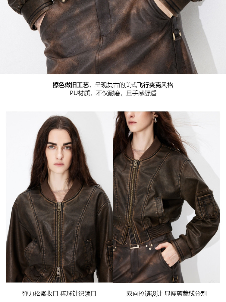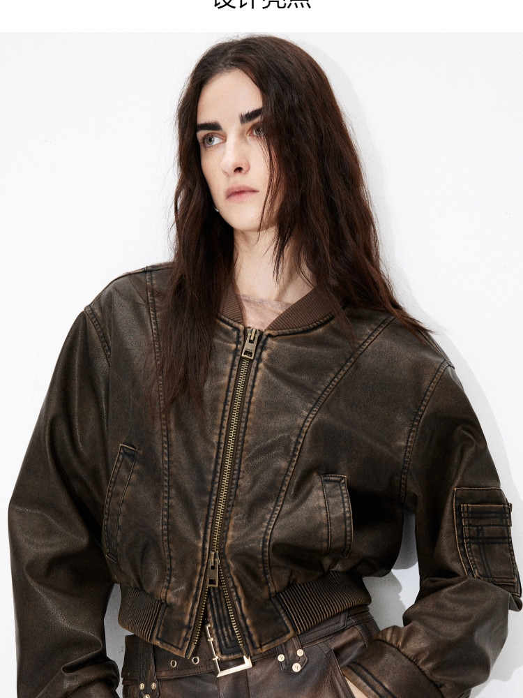 商品名称:【PU】春季设计感显瘦宽松短款落肩夹克外套女 417370