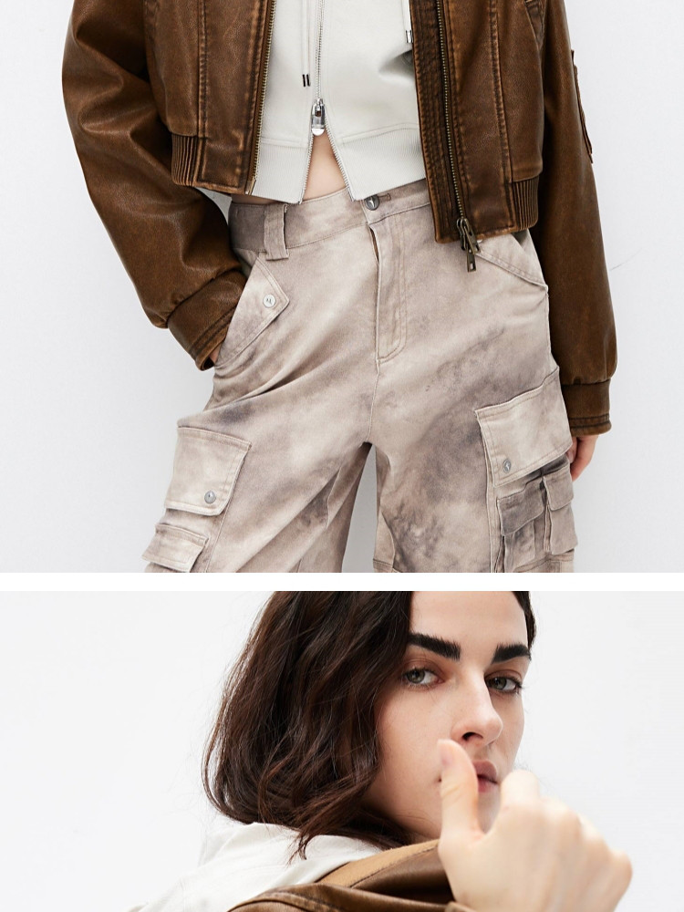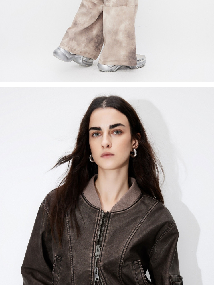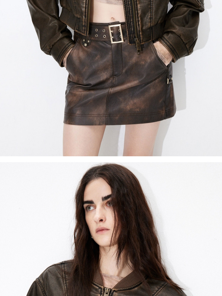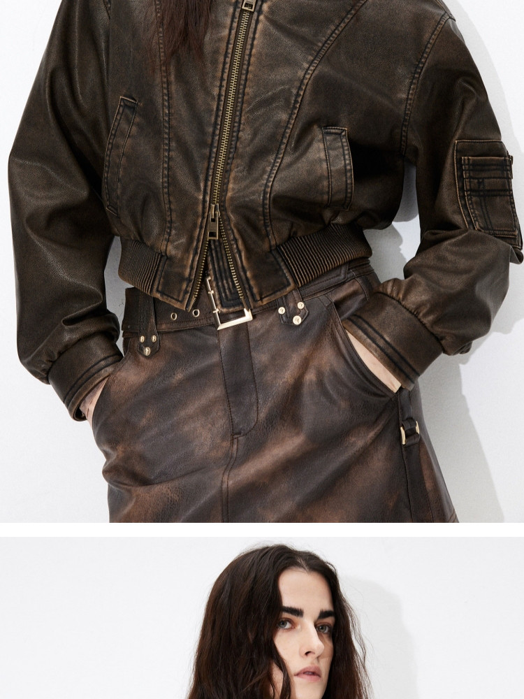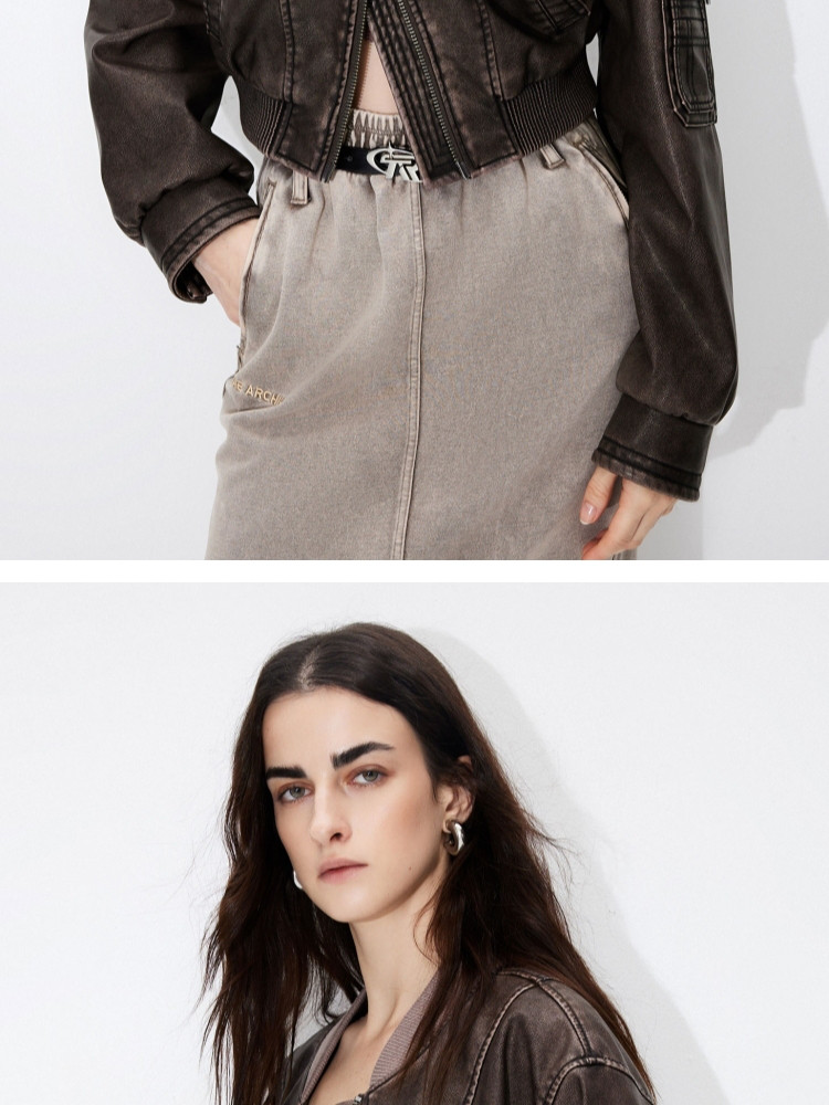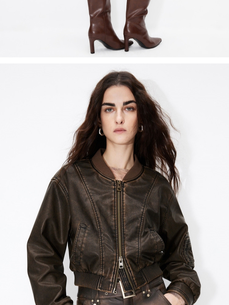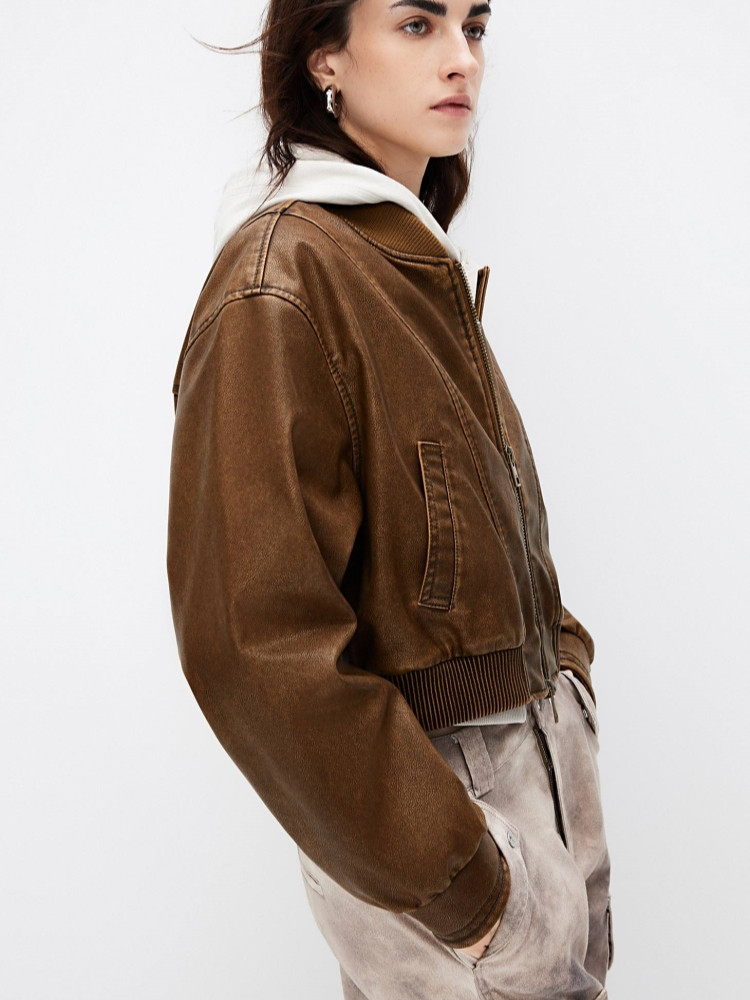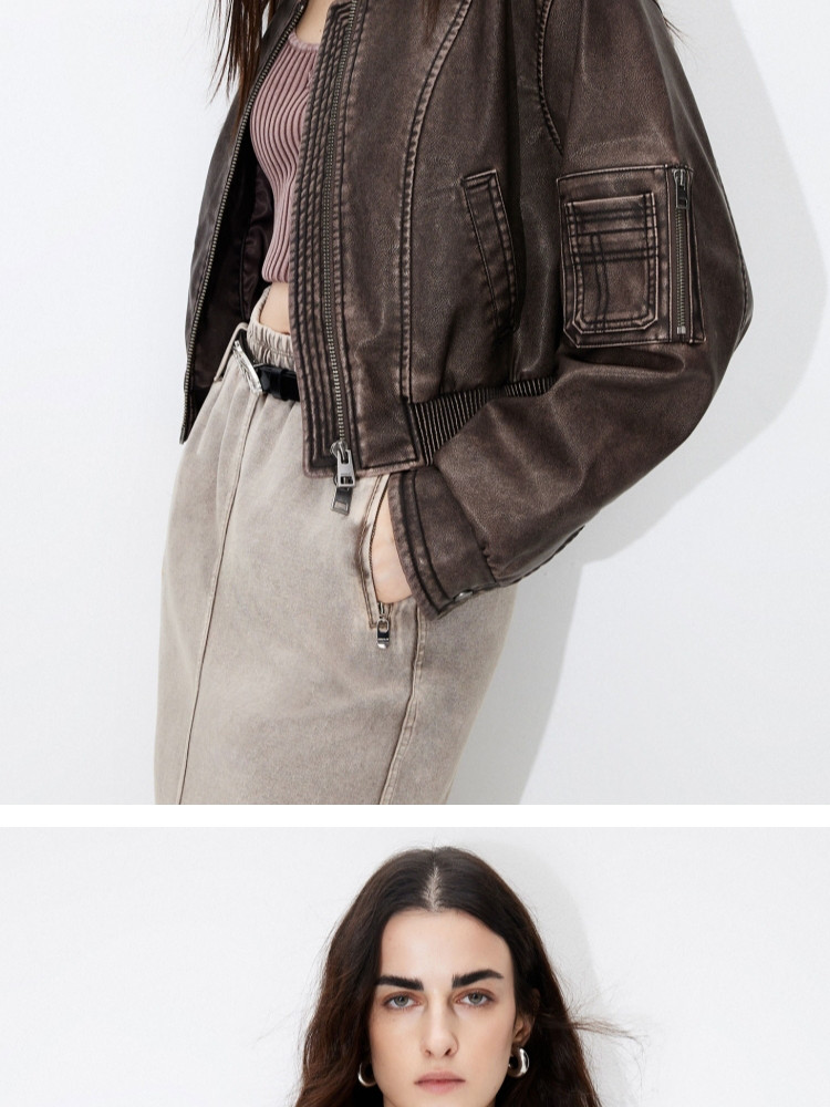 商品名称:【PU】春季设计感显瘦宽松短款落肩夹克外套女 417370