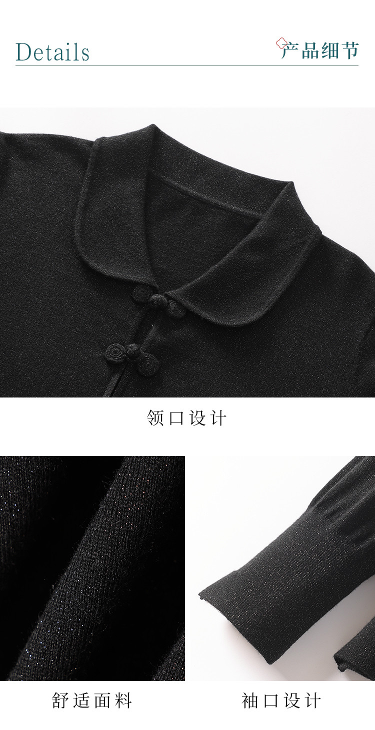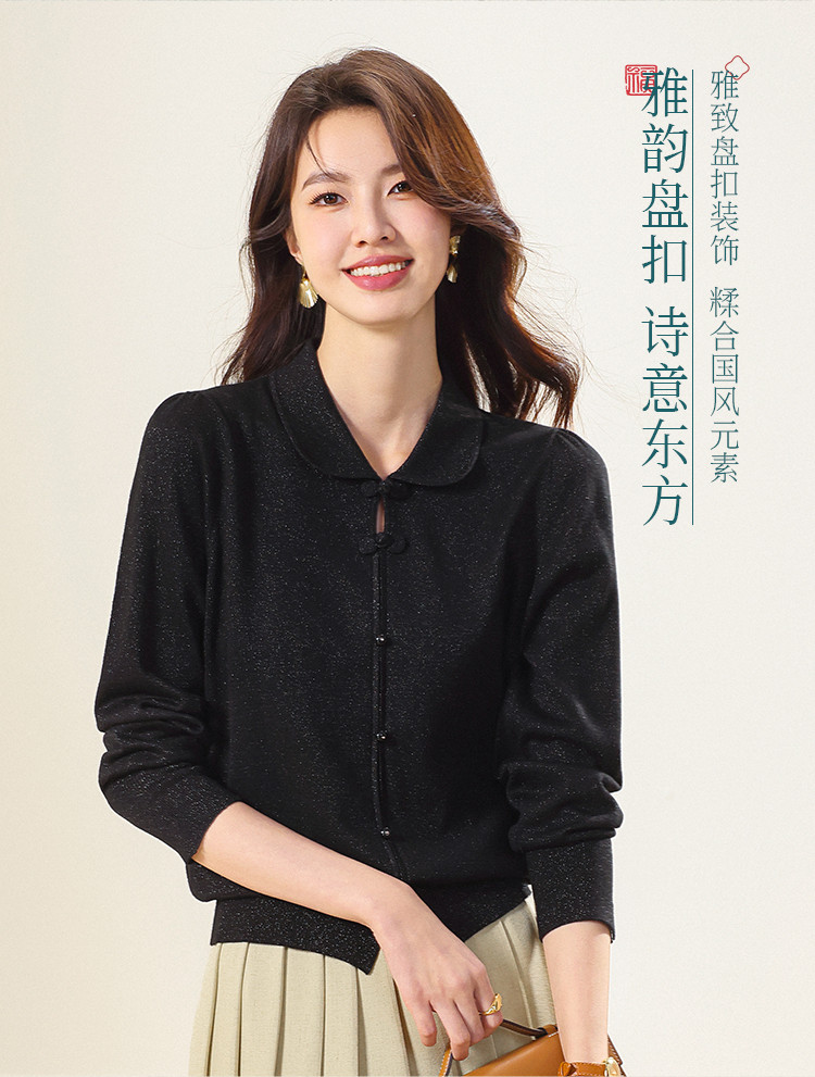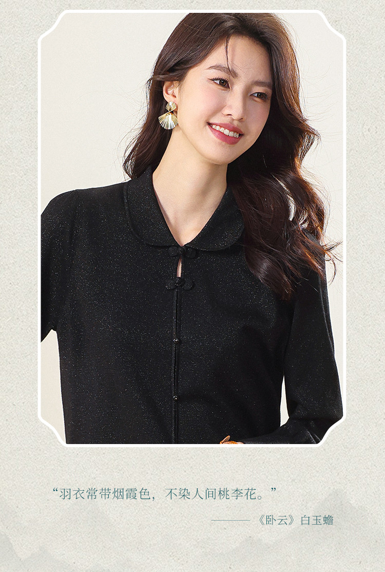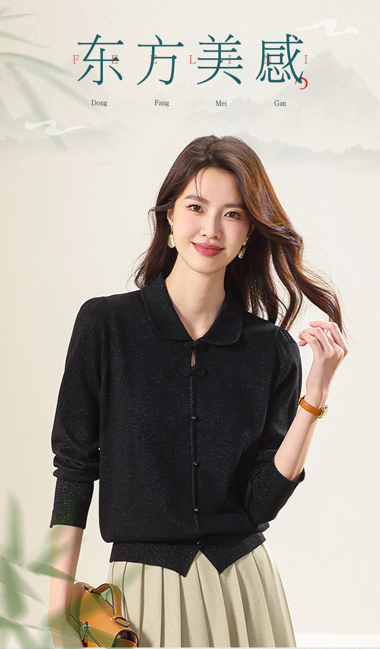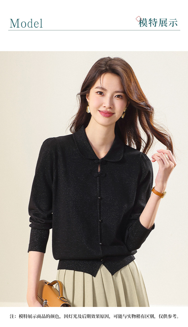 商品名称:【国风】新中式翻领含桑蚕丝针织打底衫毛衣套衫薄款假开衫 836883