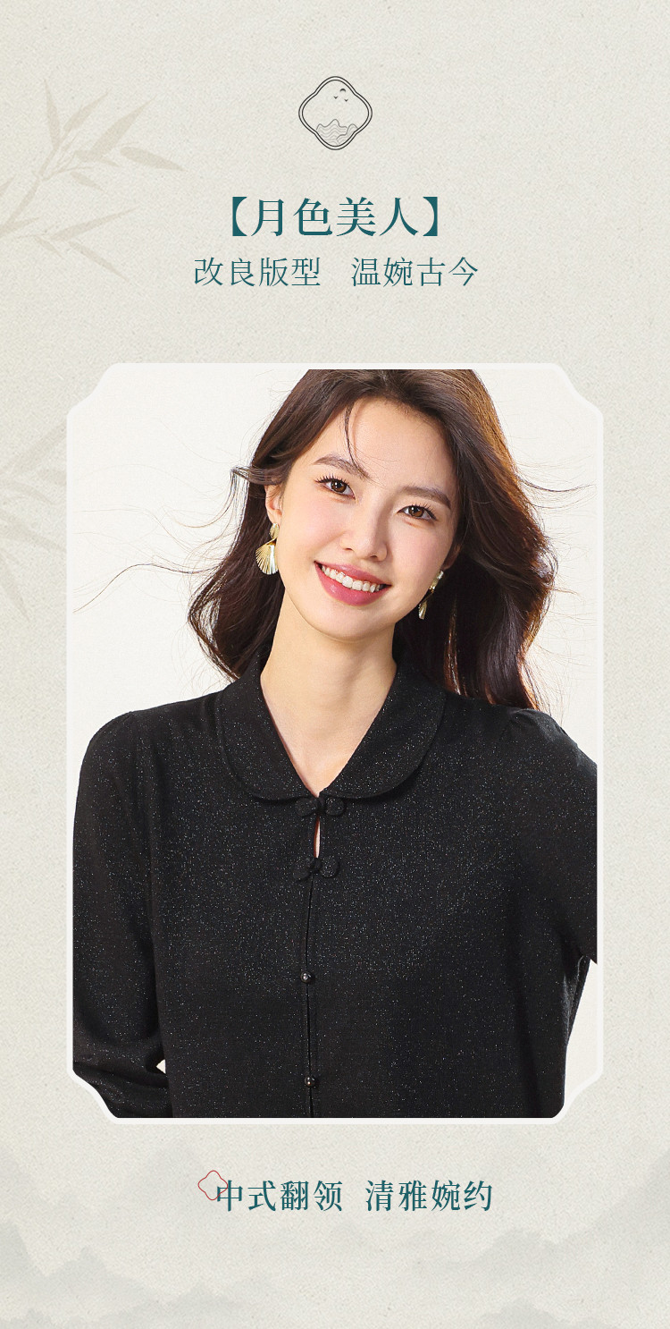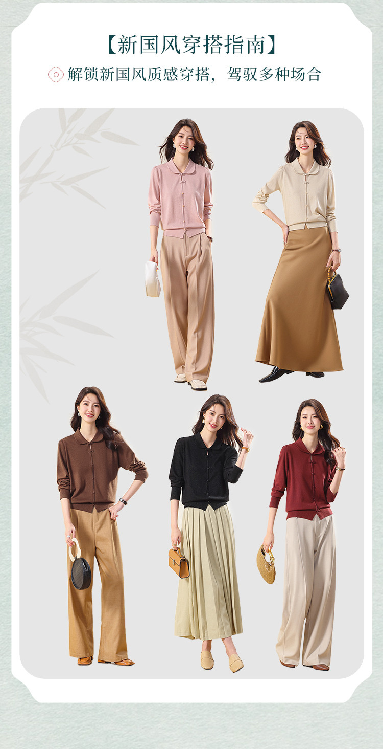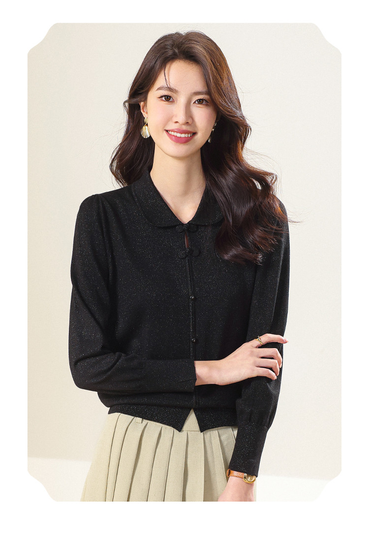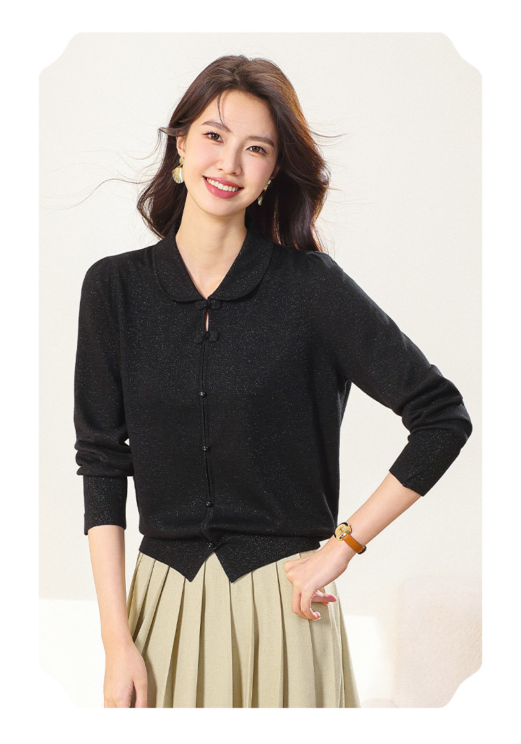 商品名称:【国风】新中式翻领含桑蚕丝针织打底衫毛衣套衫薄款假开衫 836883
