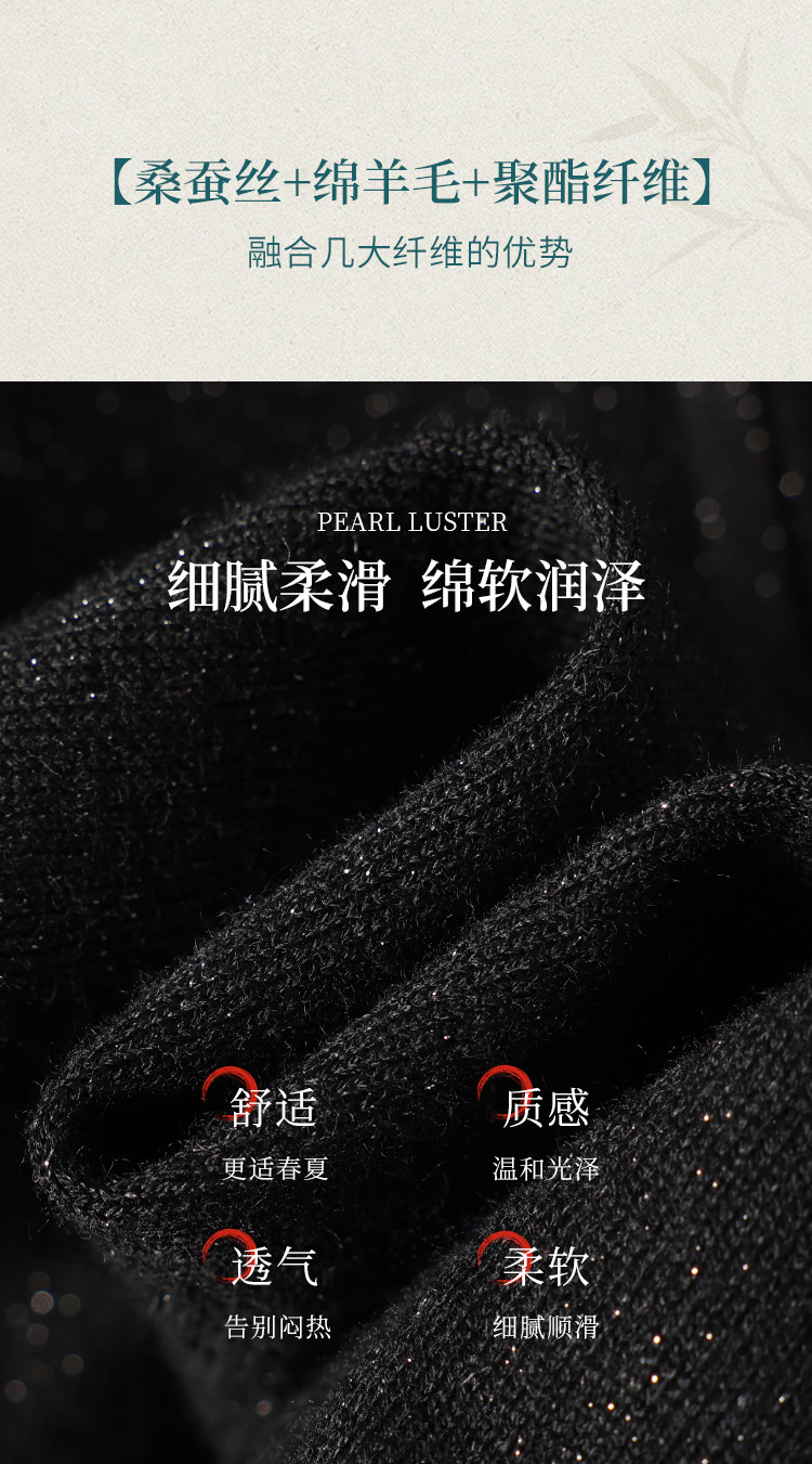 【国风】新中式翻领含桑蚕丝针织打底衫毛衣套衫薄款假开衫 836883